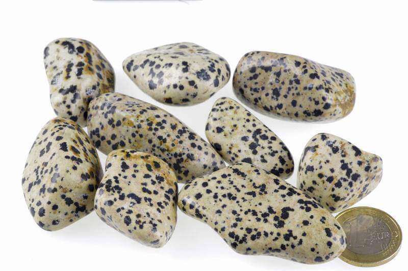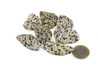 Открийте уникалния Далматински яспис L джобен кристал, който се отличава с изключителна естествена красота и енергия. Този камък, с уникалния си петнист модел, напомня на изразителния вид на далматинските кучета – светъл фон се съчетава с ярки контрастни петна, придаващи на минерала жизненост и характер. Всяко парче е уникално, разкриващо автентичността на природата и финеса на произведение на изкуството.