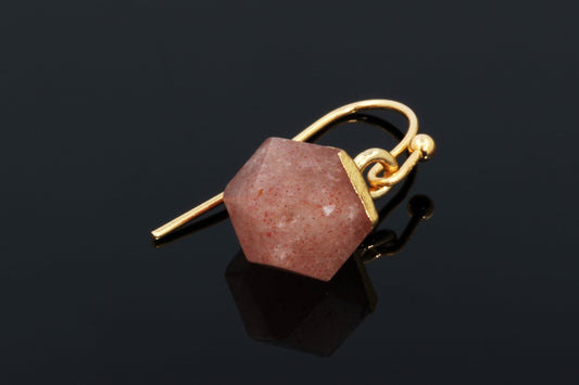 Braškinis kvarcas auskarai - Daugiakampis kubelis