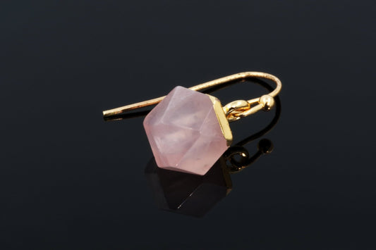 Rožinio kvarco auskarai - Daugiakampis kubelis