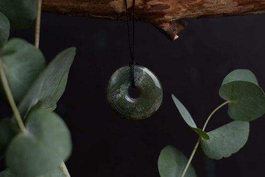 IšparduotaSamanų agatas pakabukas – Diskas 30mm