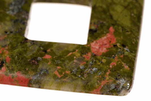 - Geometrisk snit: Det valgte mineral eller metal skæres ud i rombens kontur.
