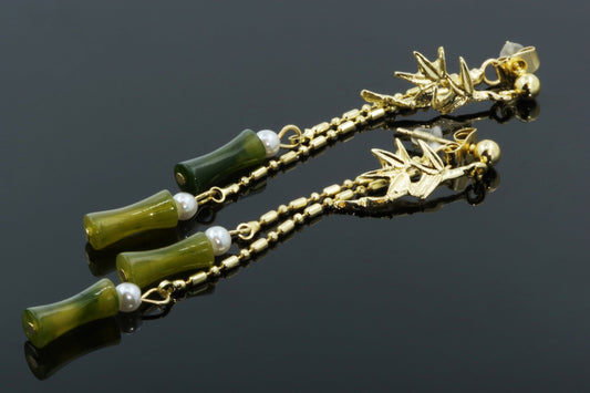 Hotan žadeitas - kvast etniske bambus stil øreringe