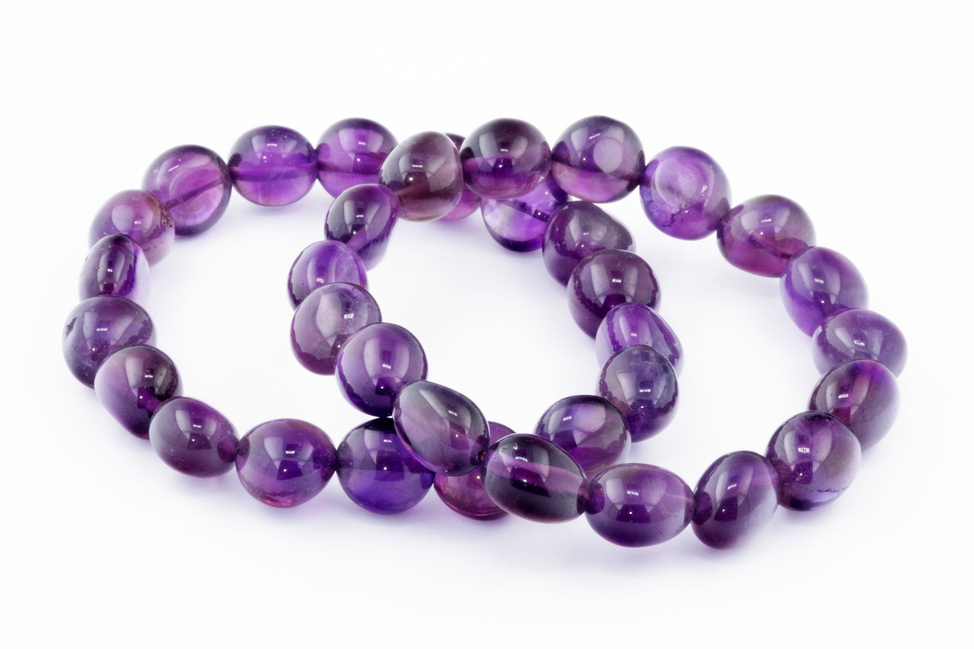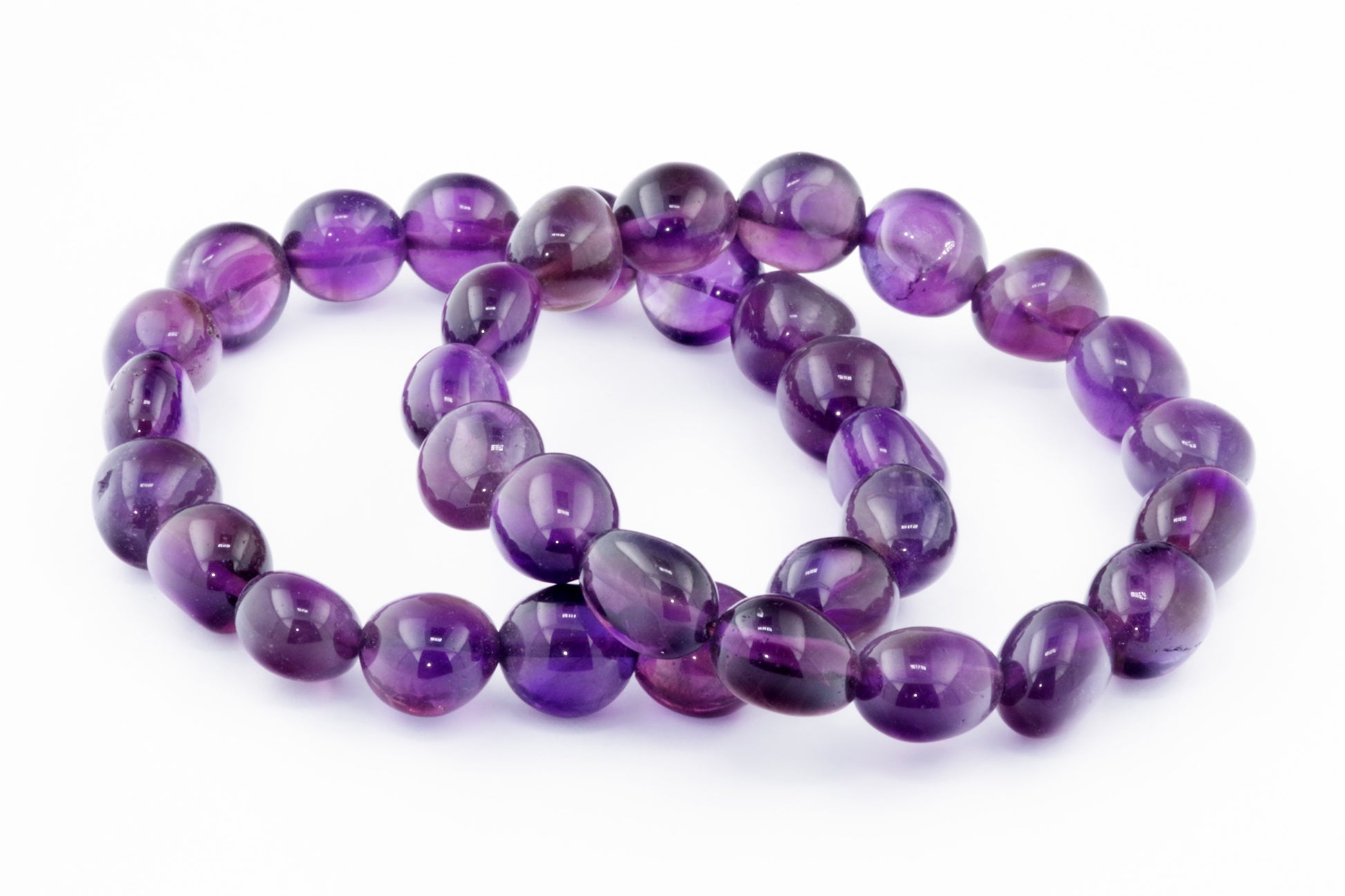 Naturlige Ametyststen: Armbåndet består af naturlige ametyststen i forskellige nuancer af lilla, med unikke naturlige mønstre og endda fine sprække-teksturer.