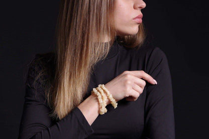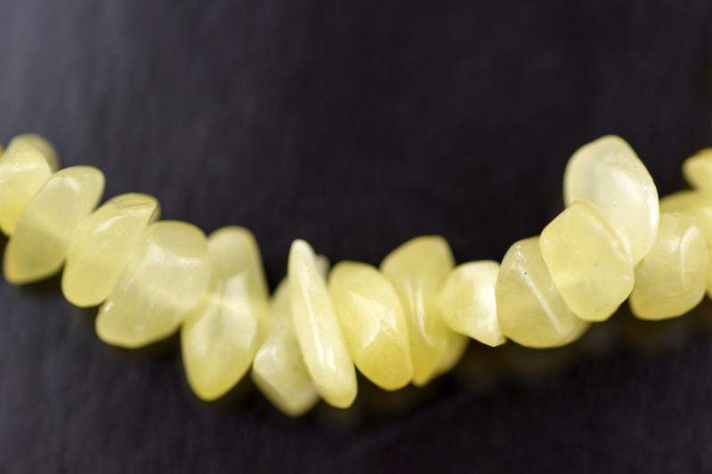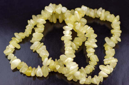 Ujævne formede sten: Hver kalkit chip har sin egen individuelle størrelse og form, hvilket giver armbåndet en tilfældig skønhed og legesyghed, der fremhæver stenens naturlige unikhed.
