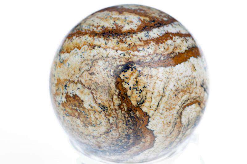 Denne jaspissten værdsættes for sin evne til at fremme kreativ udtryksevne, hjælpe med at finde indre ro og bevare følelsesmæssig balance. Sfærens form symboliserer helhed og fuldkommenhed, hvilket giver en ekstra symbolsk betydning og inspirerer til personlig vækst.
