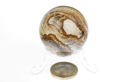 Opdag et unikt element fra naturen – malet jaspis formet til en 40 mm diameter sfære. Denne sten er ikke kun æstetisk tiltalende, men også energimæssigt interessant, da dens karakteristiske mønster minder om naturlige landskaber eller abstrakte kunstværker, hvilket giver sfæren en enestående charme.