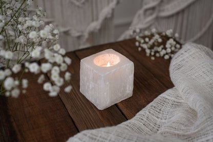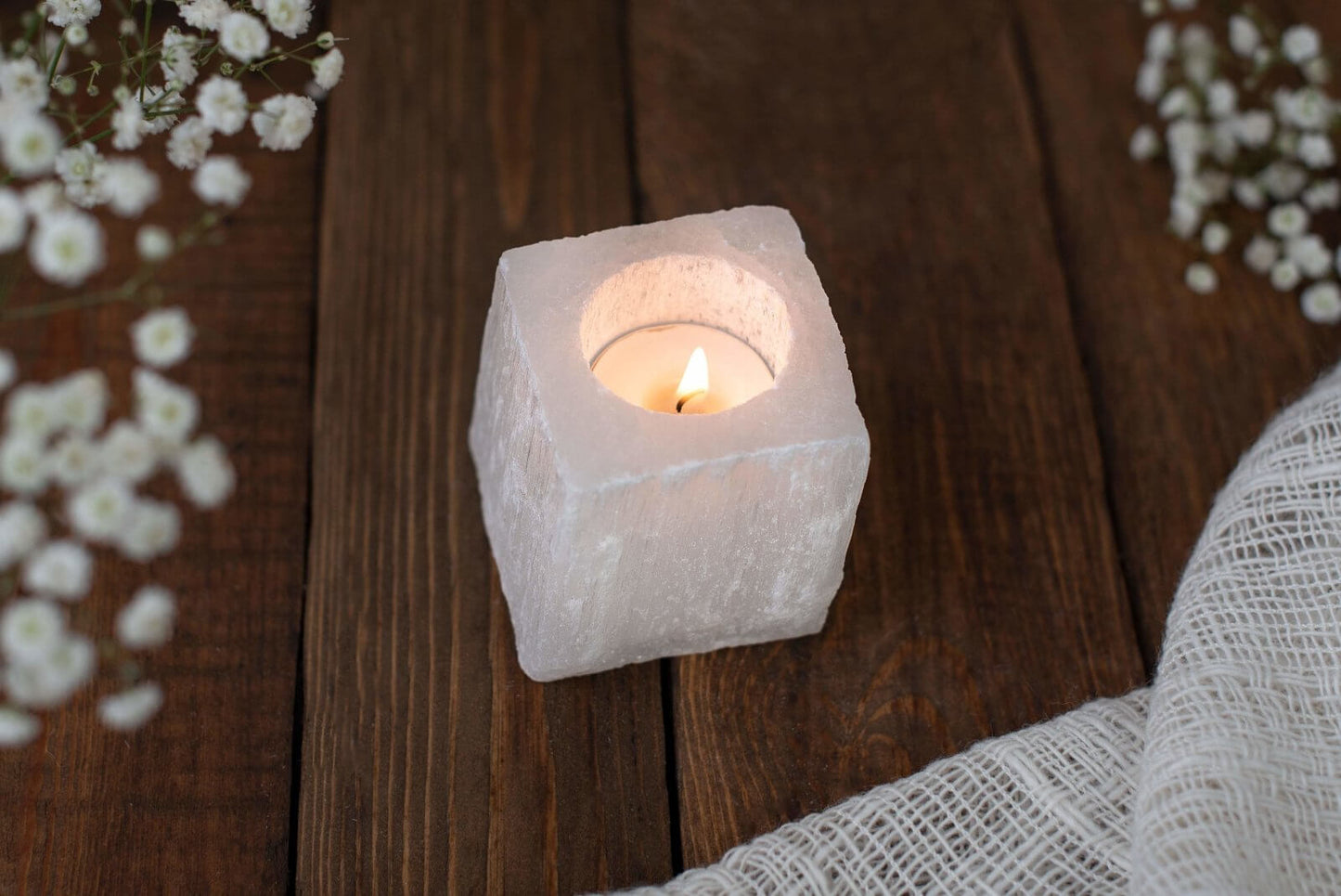 Fremme af Ro og Lys: Selenit forbedrer energibalancen, hjælper med at reducere stress og skaber et hyggeligt lysglimt, når et lys sættes i.