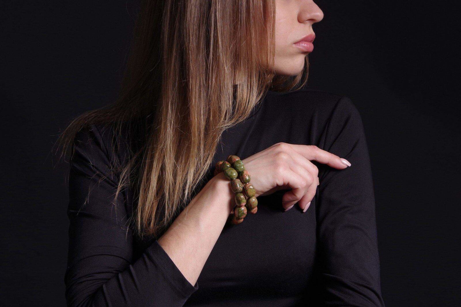 Unakit-armbåndet "Grynuolis" er et fremragende valg for dem, der søger et ikke kun æstetisk tiltalende, men også meningsfuldt tilbehør, der fremmer følelsesmæssig balance og åndelig vækst. Det passer både til daglig brug og som et subtilt og elegant indslag ved særlige lejligheder, der giver bæreren en følelse af unik skønhed, følelsesmæssig balance og åndelig vækst.