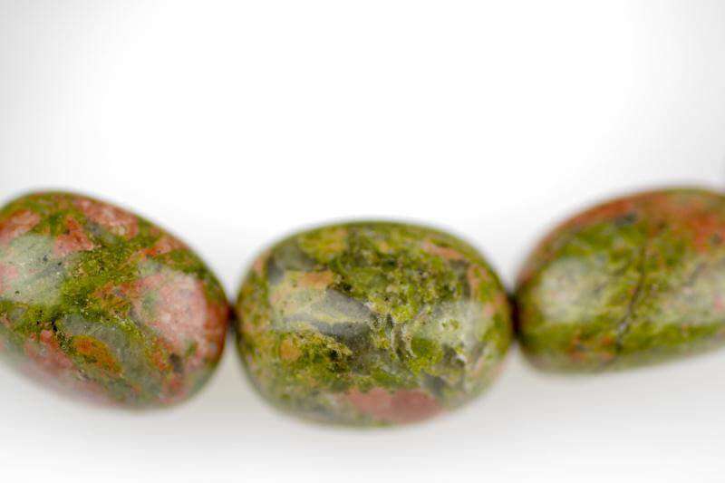 - Kombination af grønne og rosa farver: Unakit er kendt for sine grønne og rosa farver, som symboliserer hjertechakraets energi og følelsesmæssig balance.