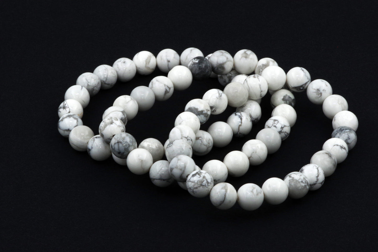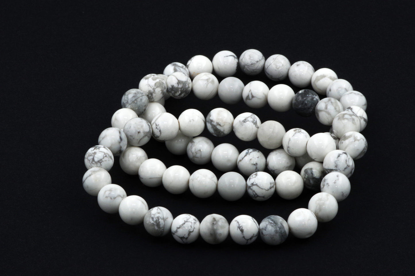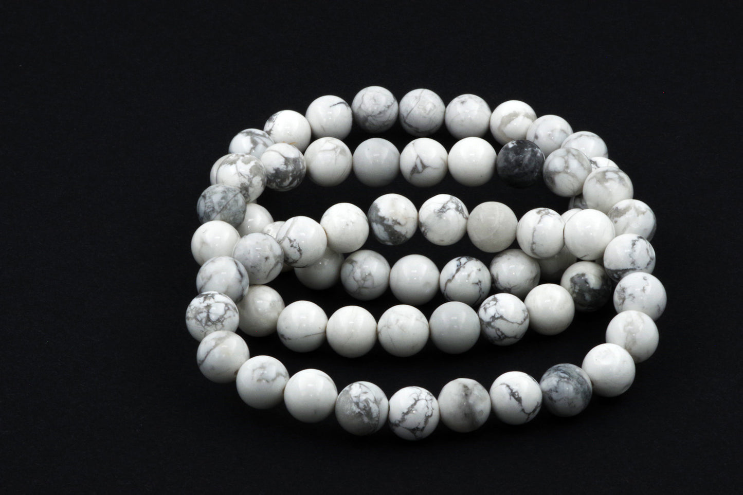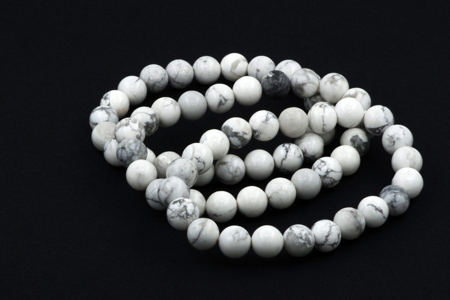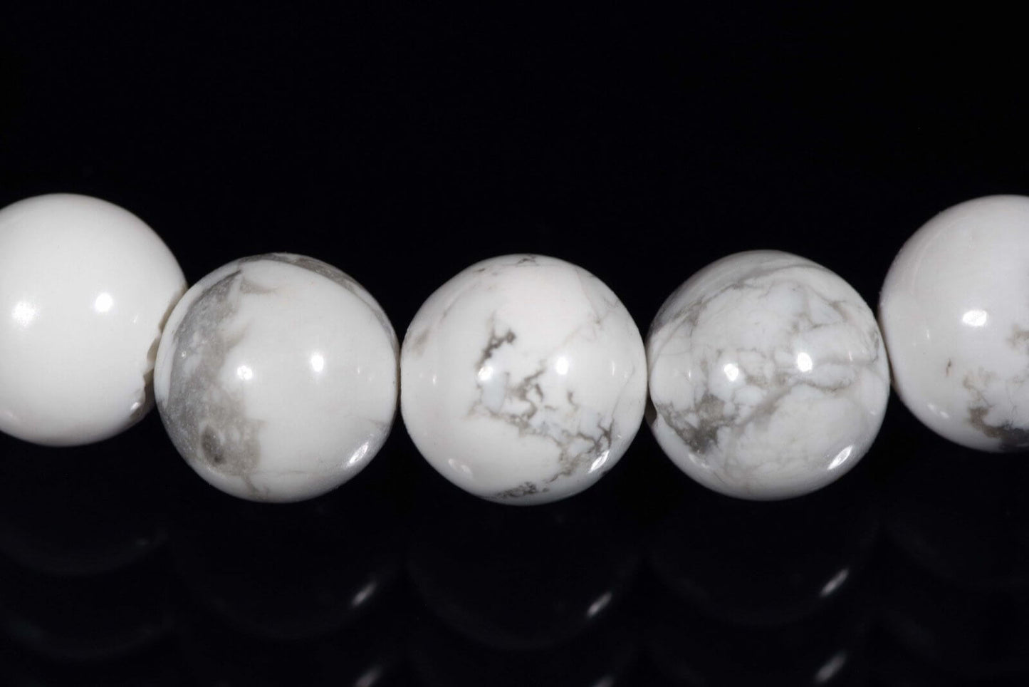 Feine Perlen: Jede 6 mm Houlit-Perle, die mit natürlicher Weißheit und geheimnisvollen grau-blauen oder schwarzen Mustern strahlt, offenbart die Geheimnisse der Natur und verleiht dem Armband ein einzigartiges, elegantes Aussehen.