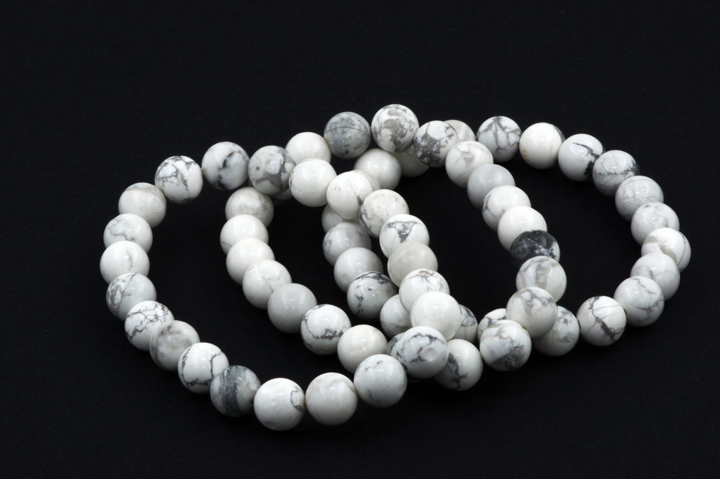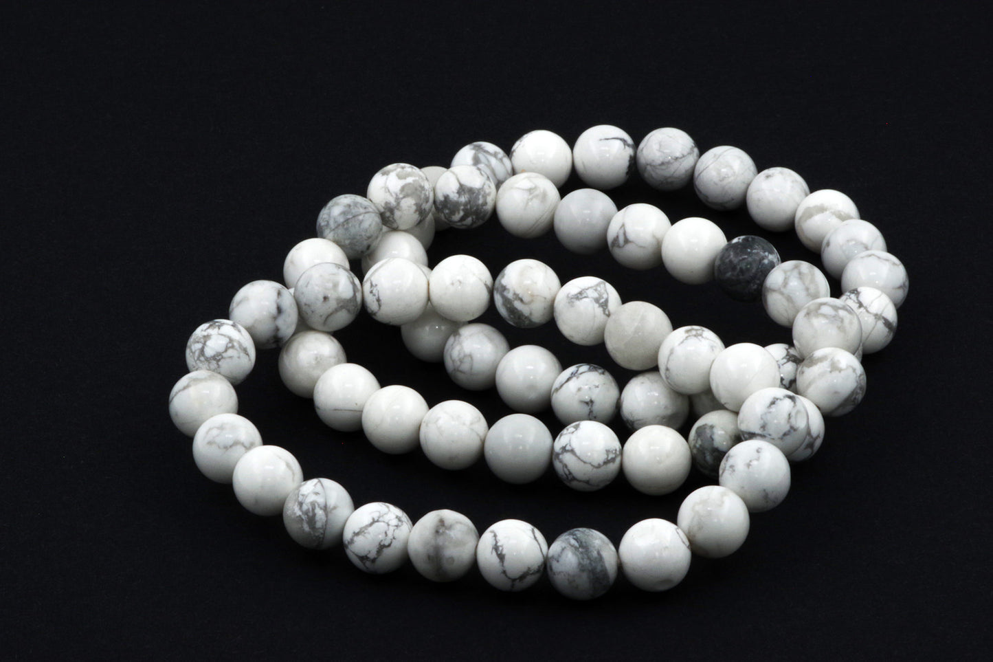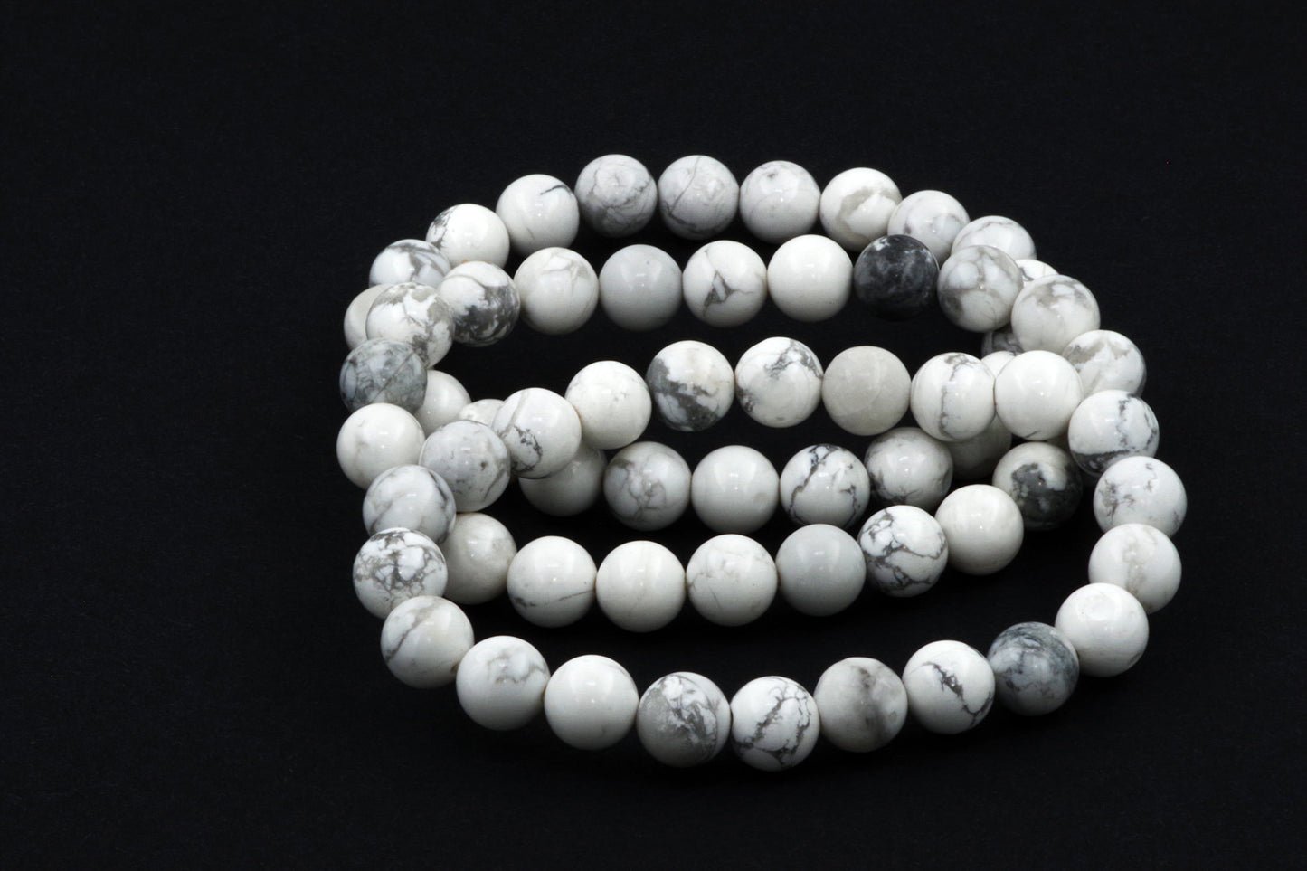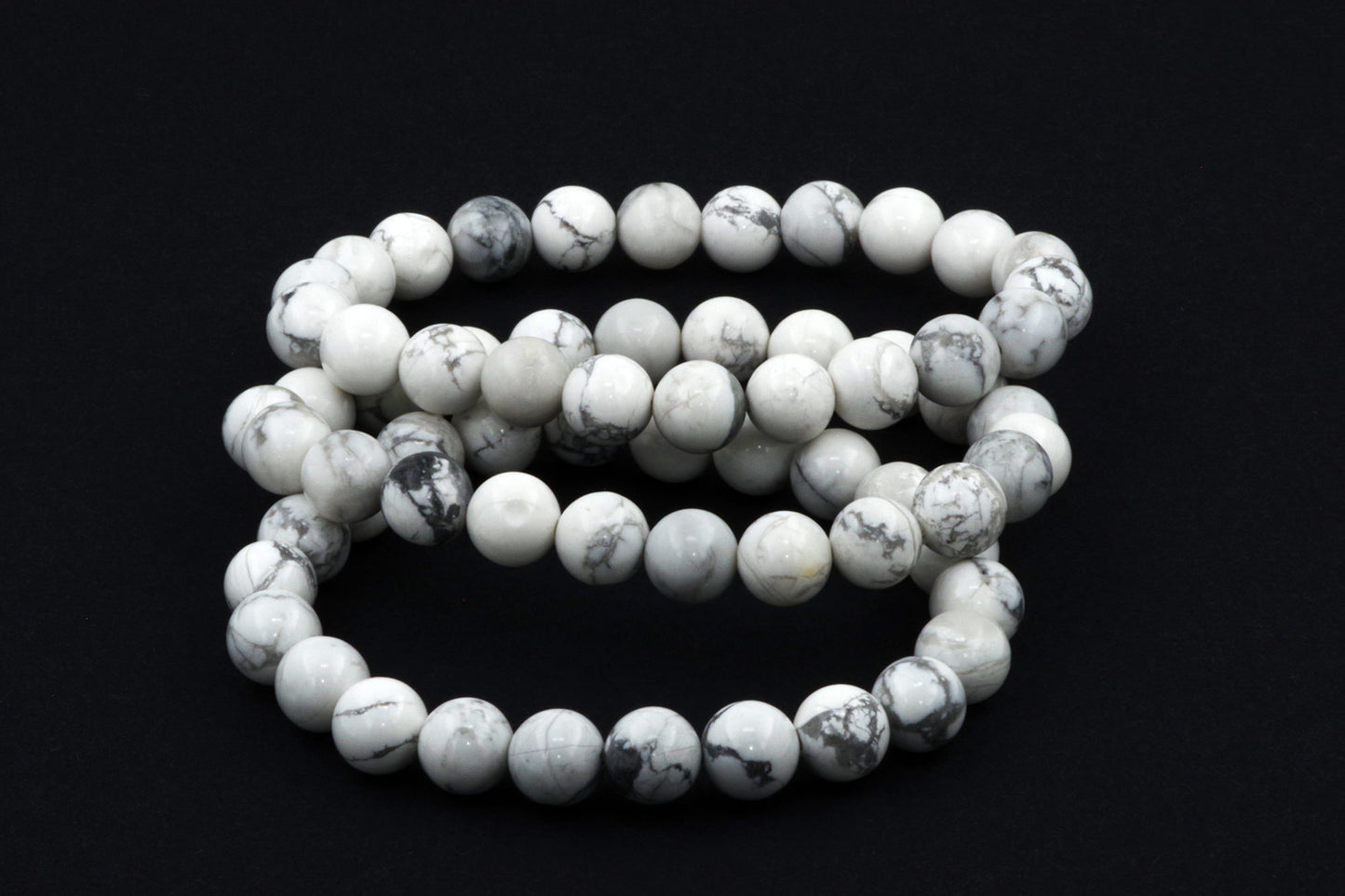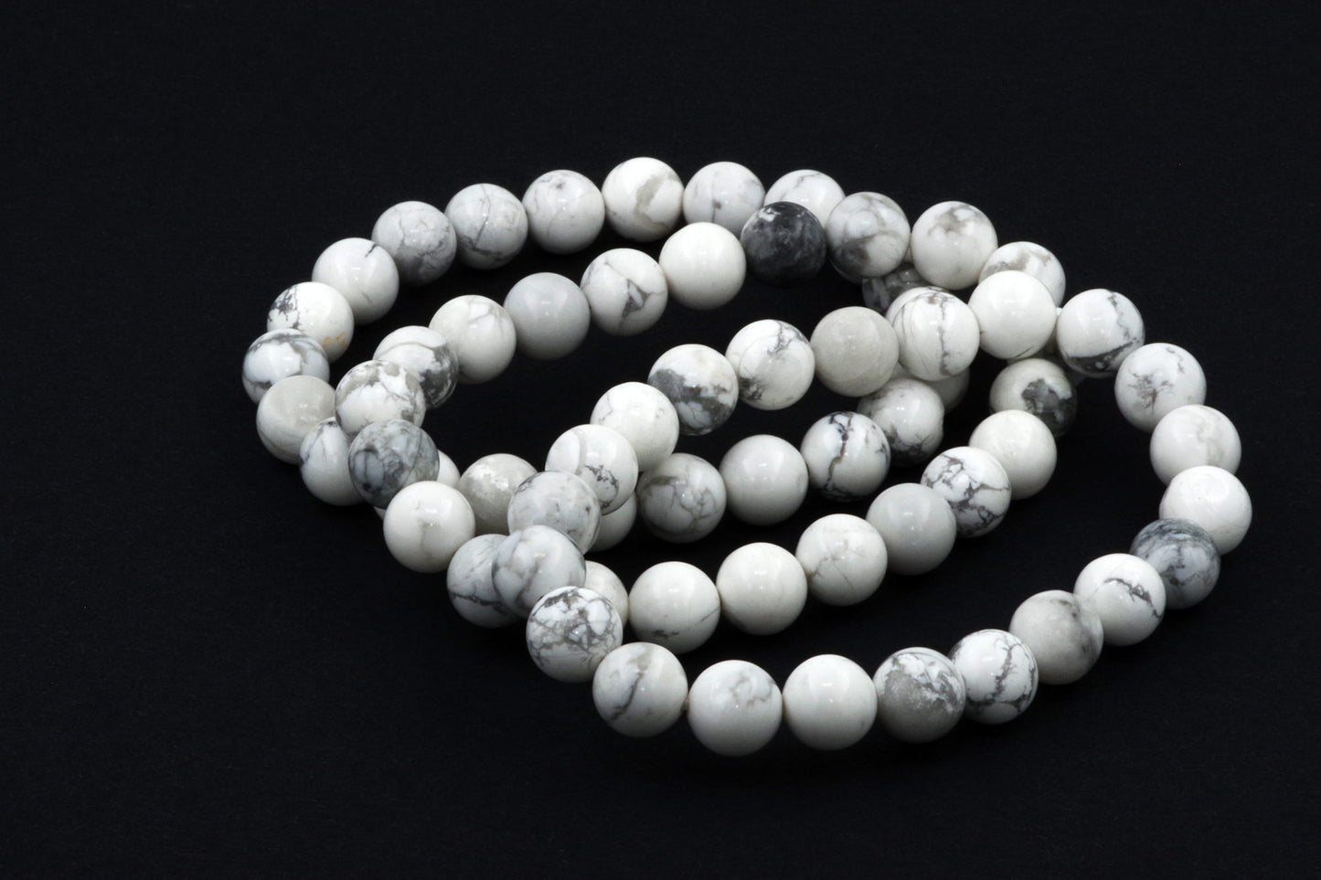 Feine Perlen: Jede 6 mm Houlit-Perle, die mit natürlicher Weißheit und geheimnisvollen grau-blauen oder schwarzen Mustern strahlt, offenbart die Geheimnisse der Natur und verleiht dem Armband ein einzigartiges, elegantes Aussehen.
