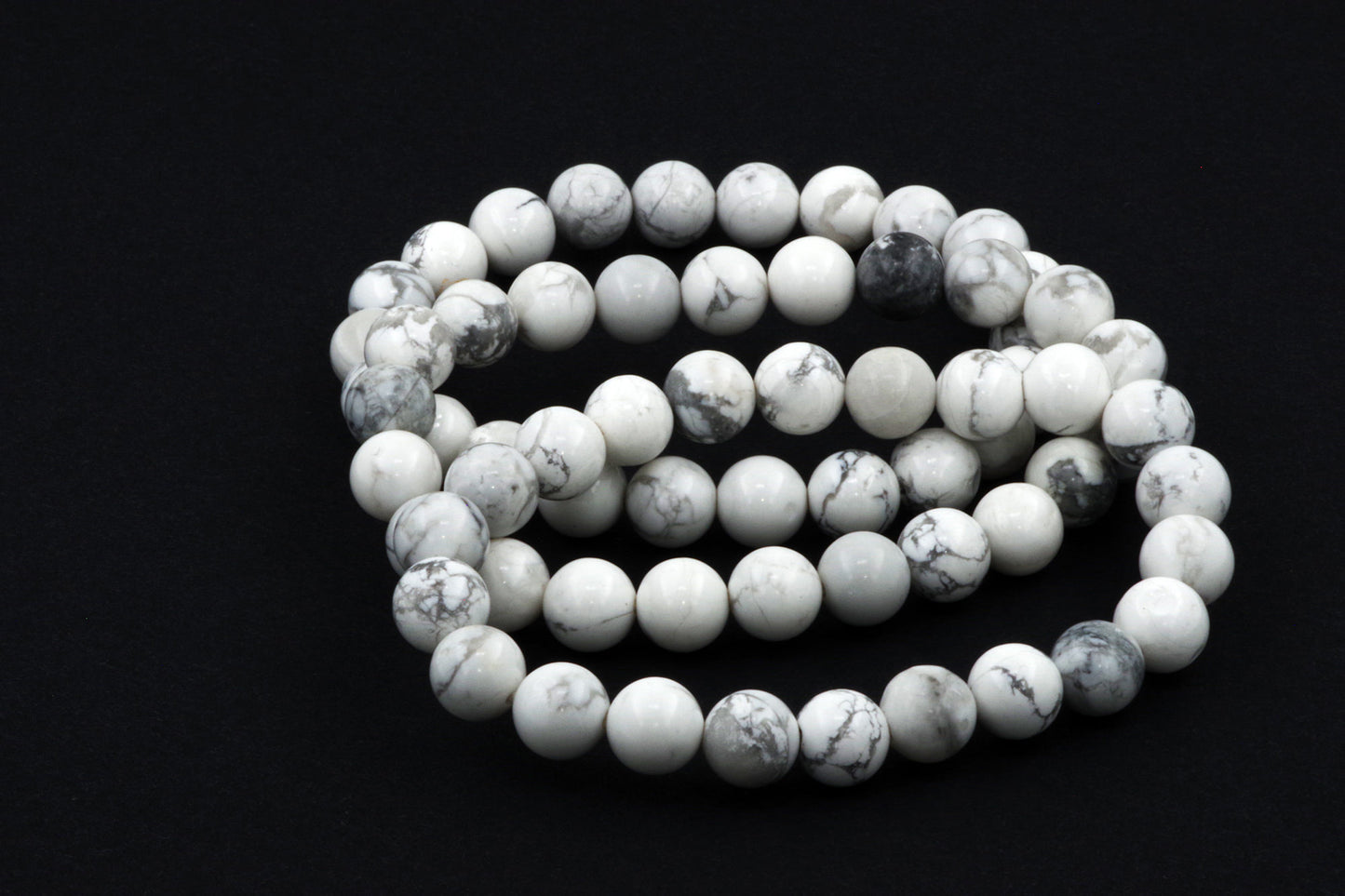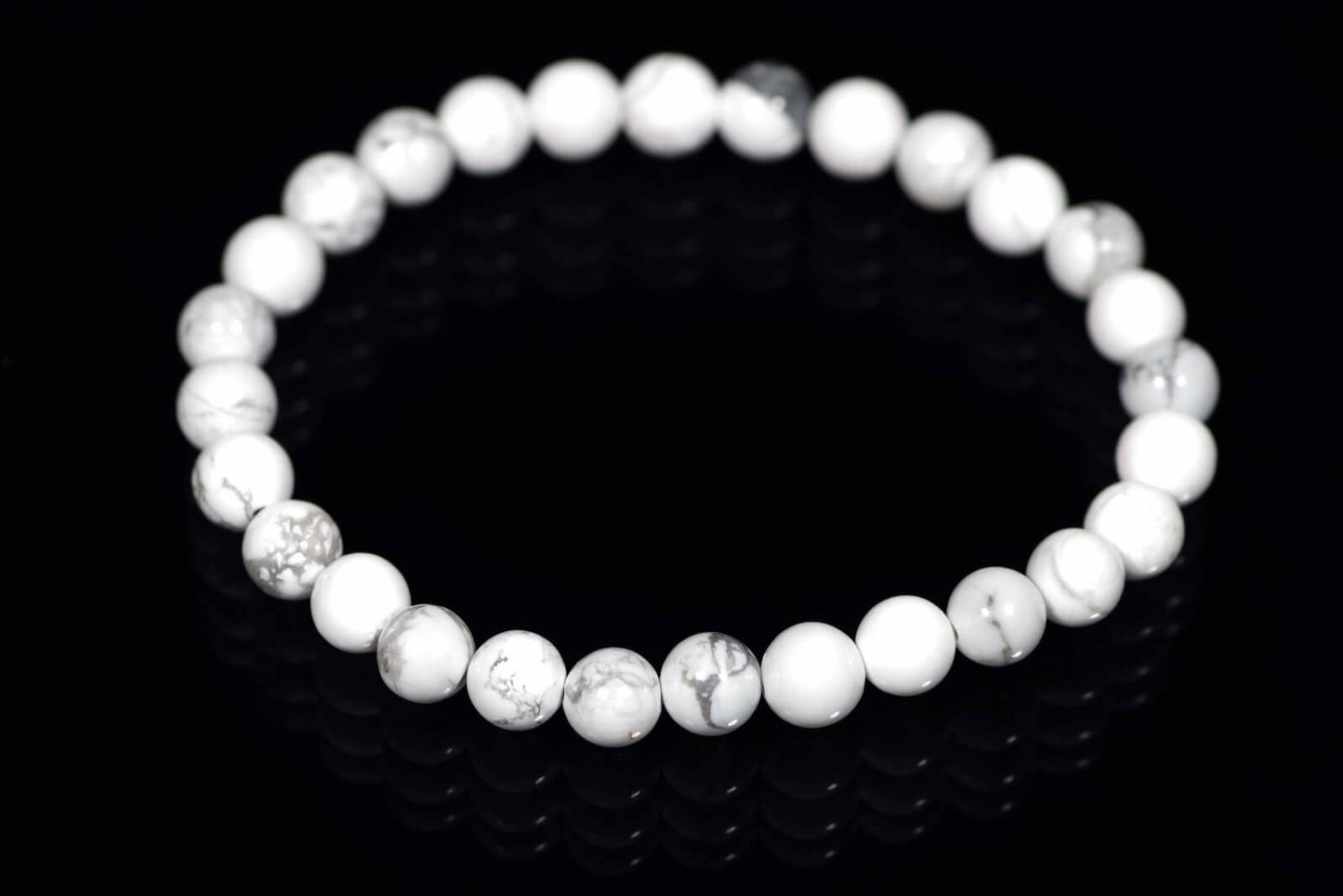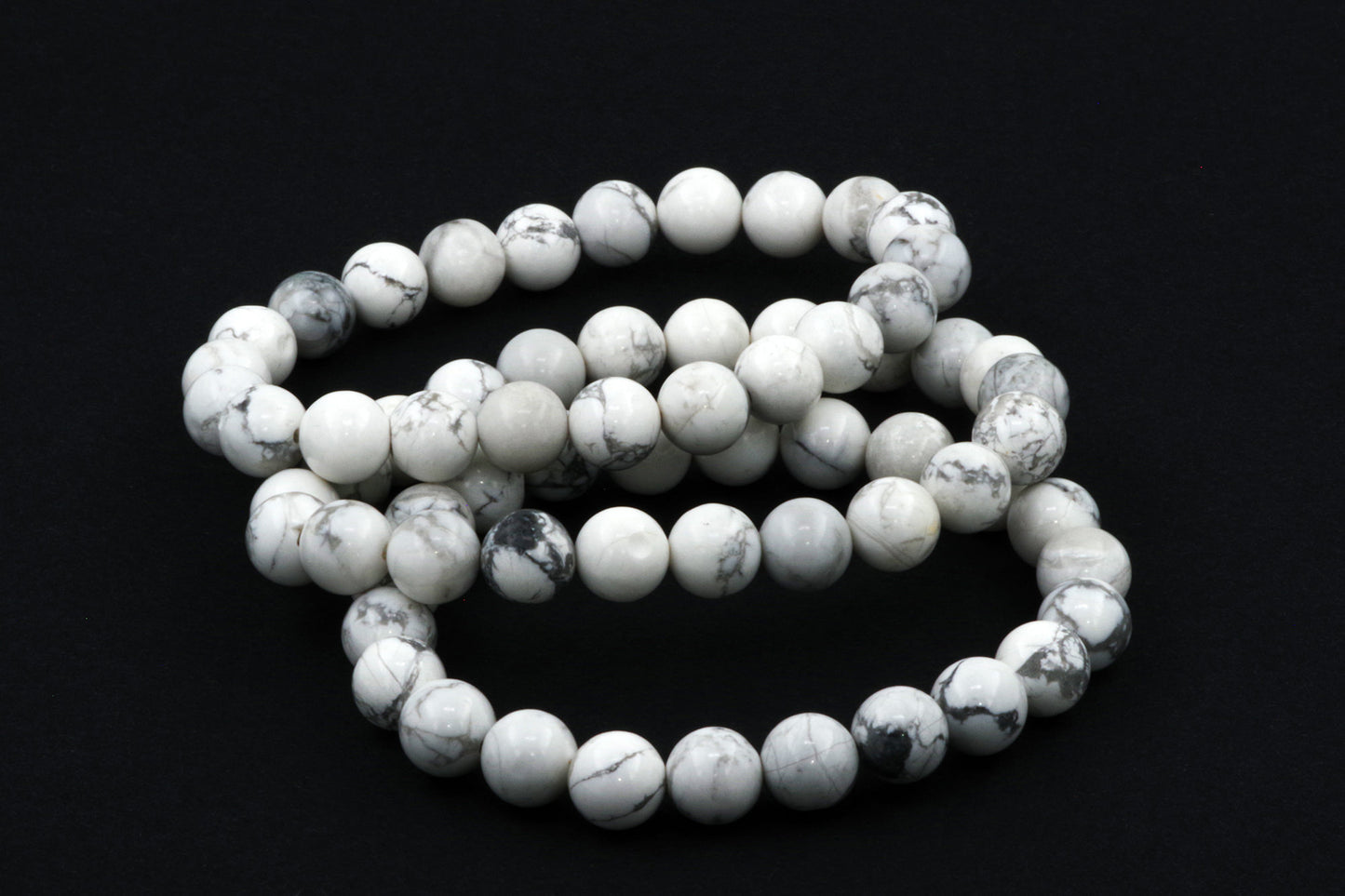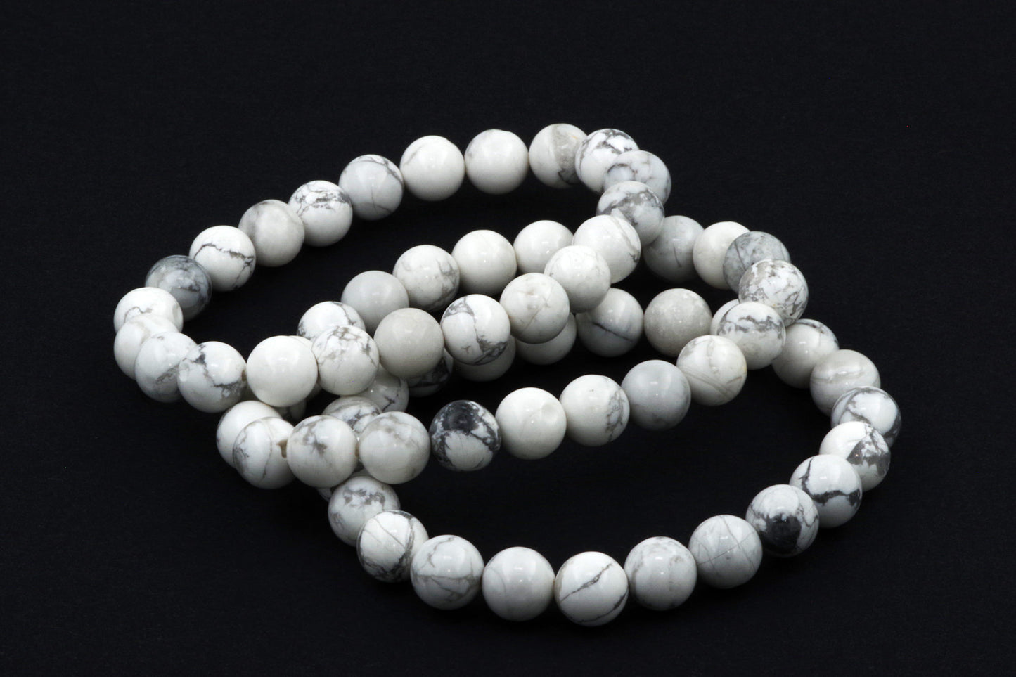 Feine Perlen: Jede 6 mm Houlit-Perle, die mit natürlicher Weißheit und geheimnisvollen grau-blauen oder schwarzen Mustern strahlt, offenbart die Geheimnisse der Natur und verleiht dem Armband ein einzigartiges, elegantes Aussehen.