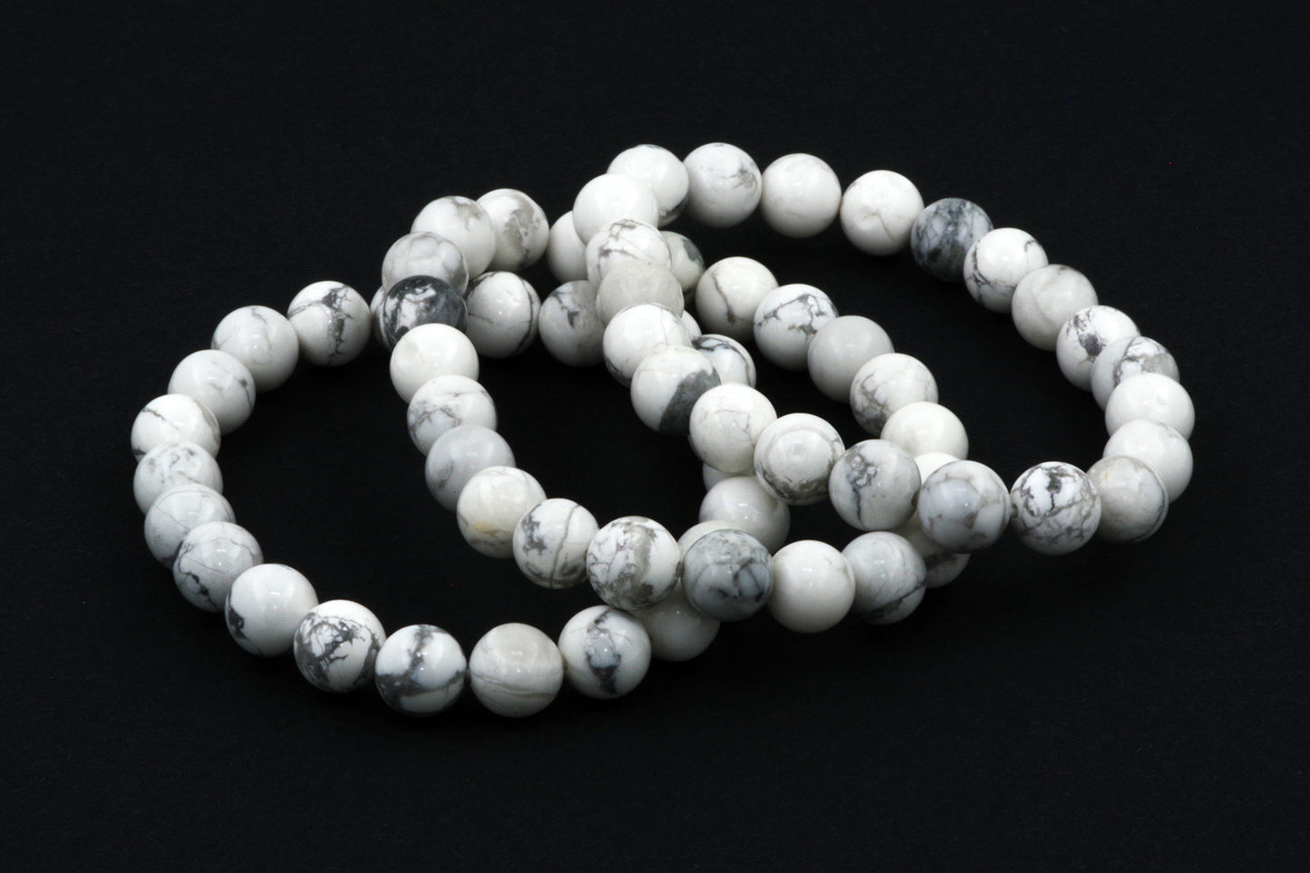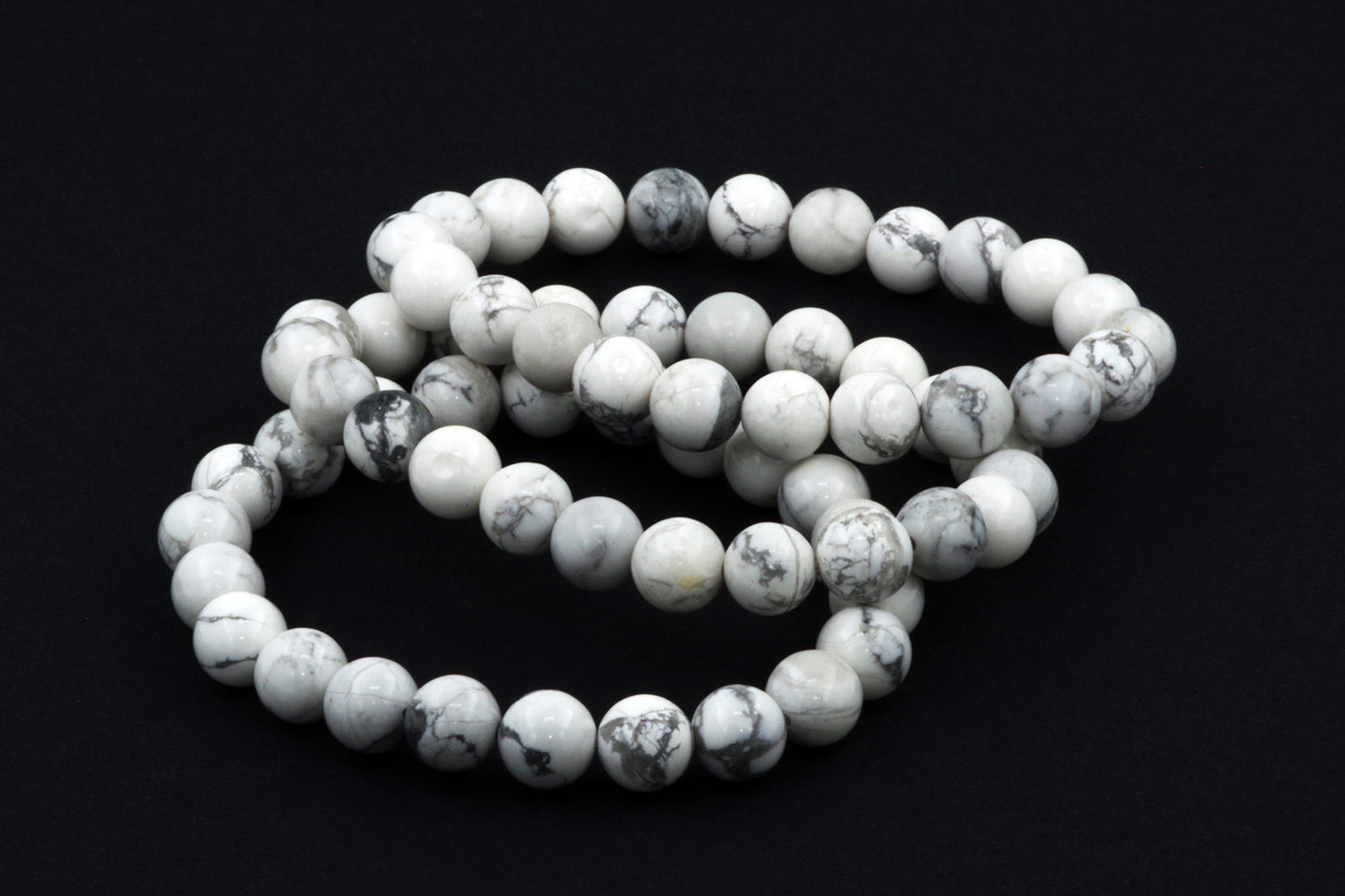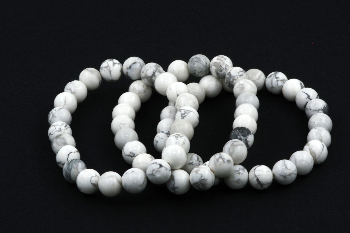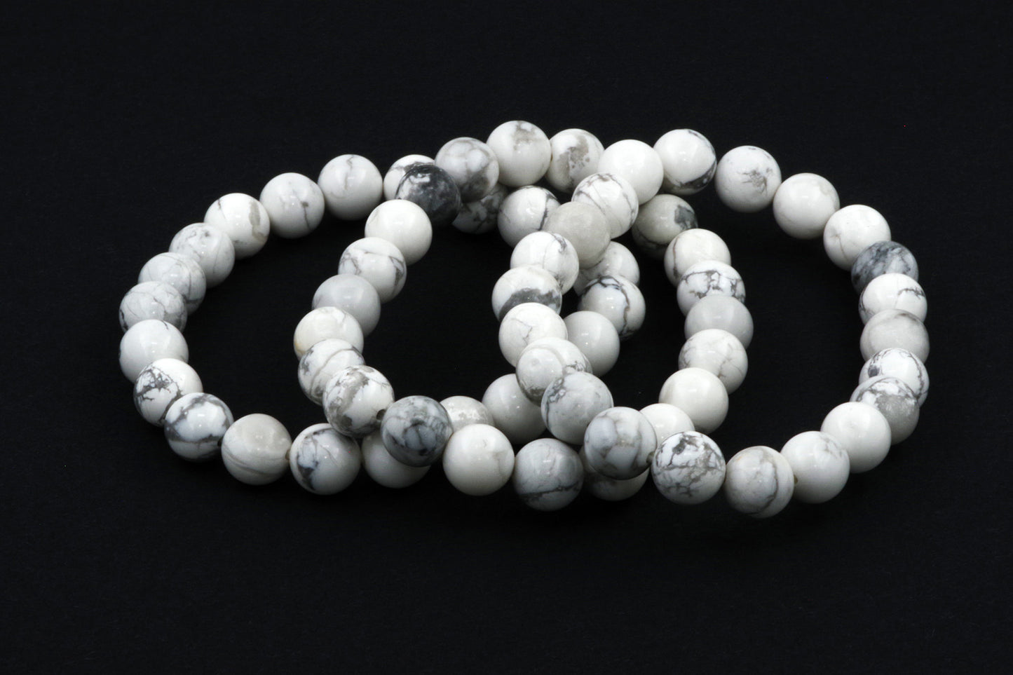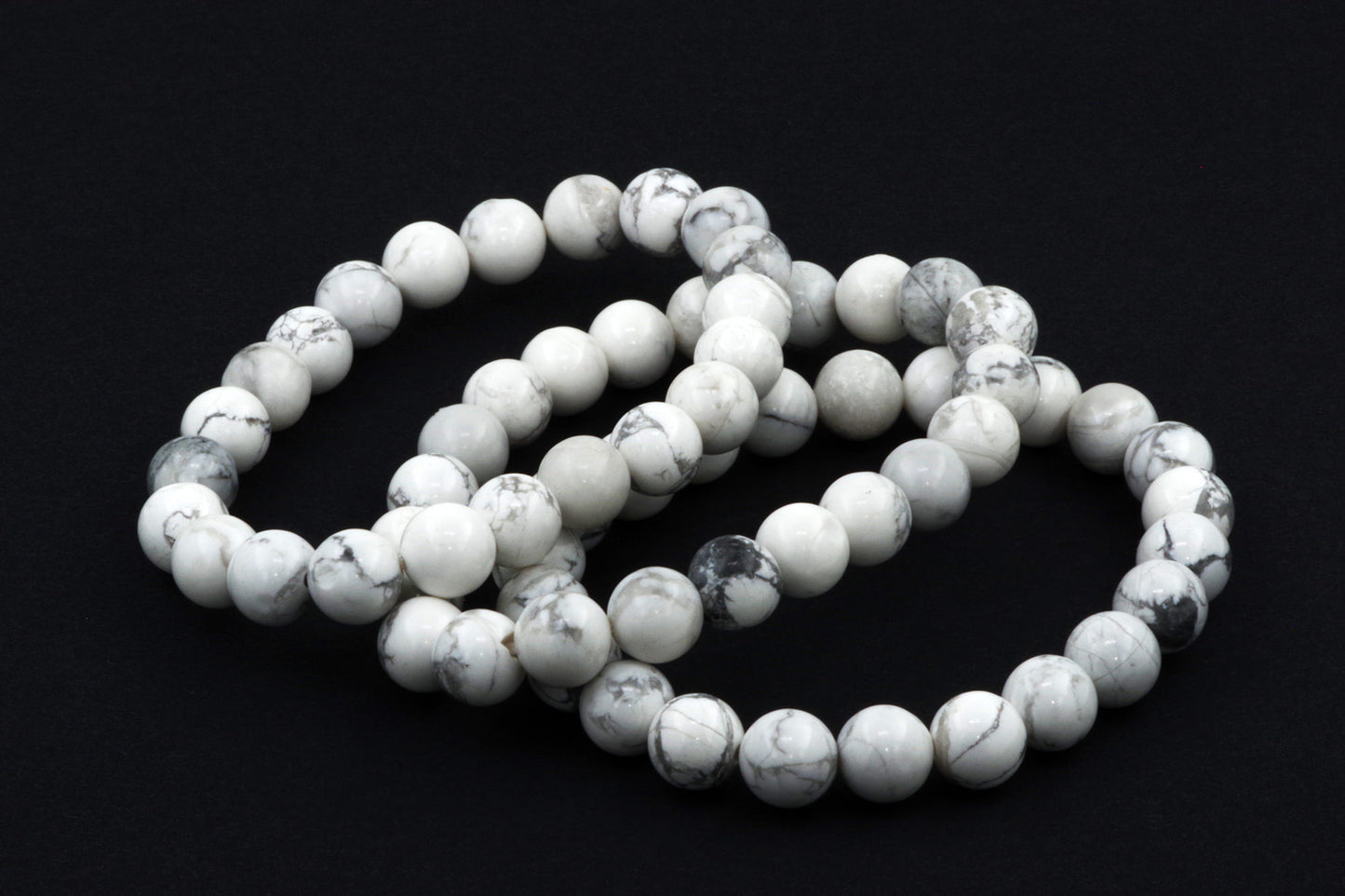 Feine Perlen: Jede 6 mm Houlit-Perle, die mit natürlicher Weißheit und geheimnisvollen grau-blauen oder schwarzen Mustern strahlt, offenbart die Geheimnisse der Natur und verleiht dem Armband ein einzigartiges, elegantes Aussehen.