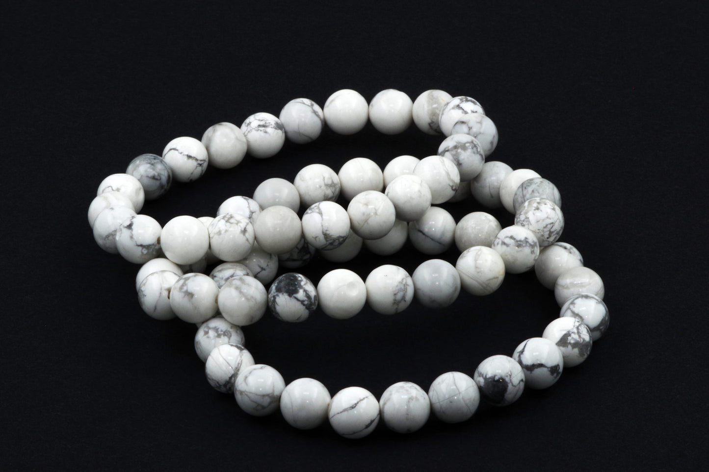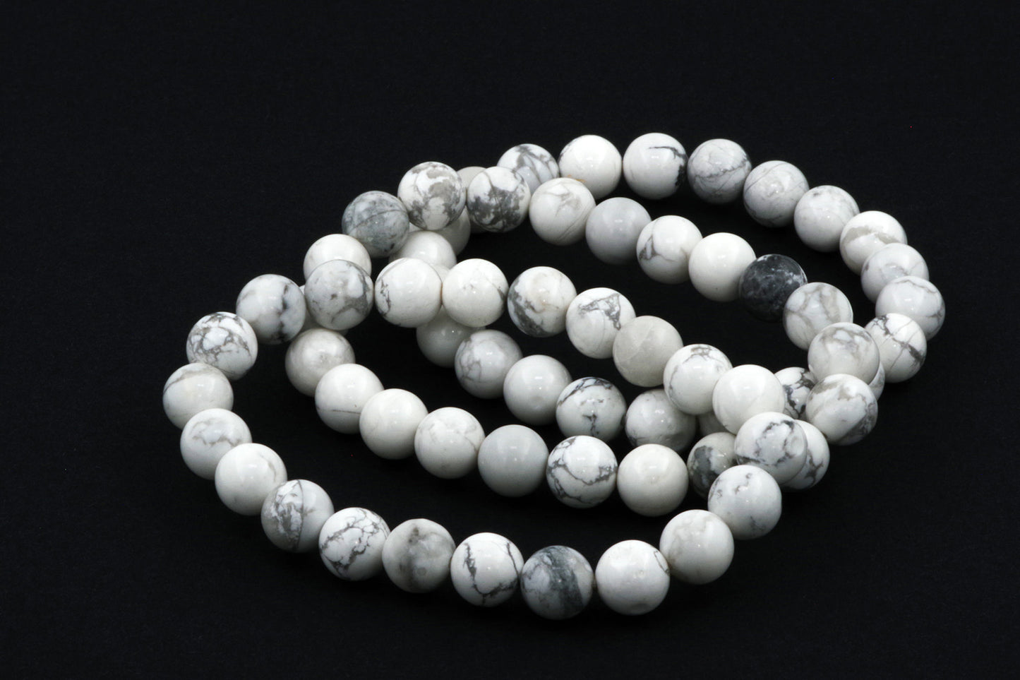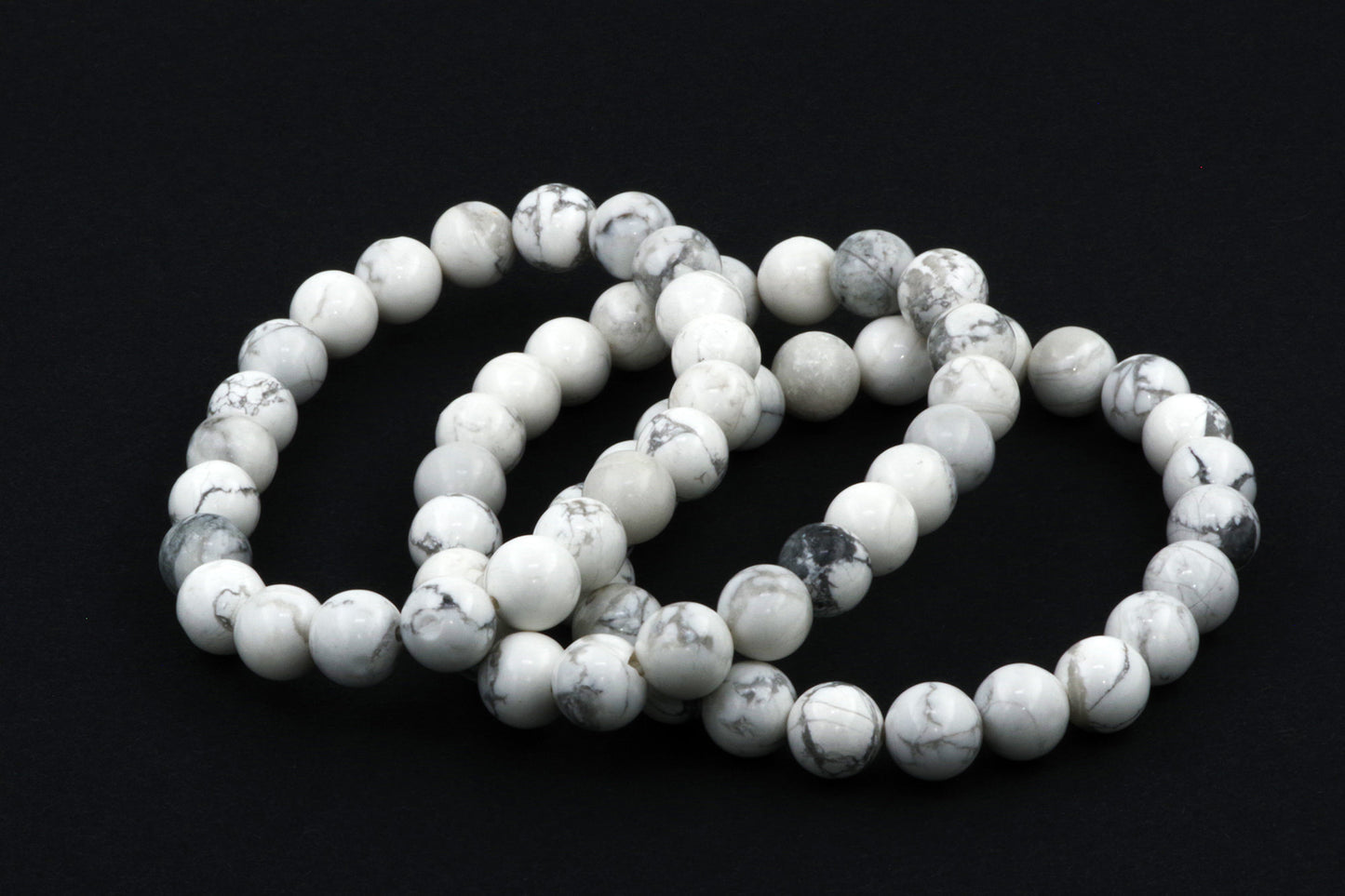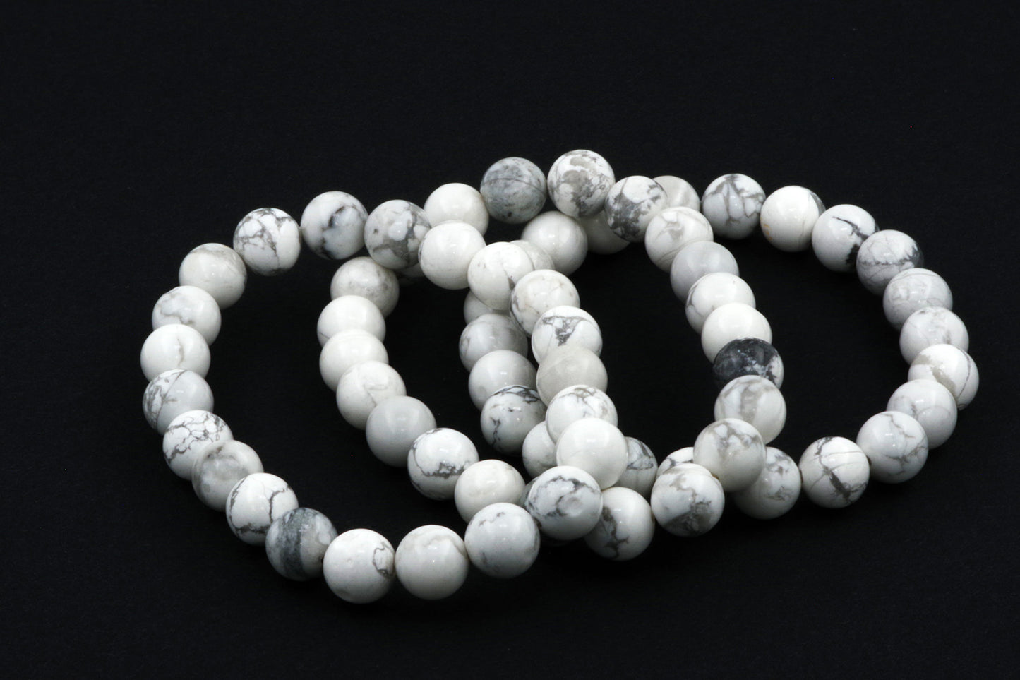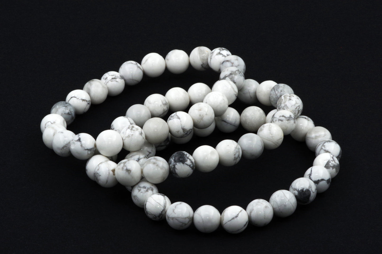 Feine Perlen: Jede 6 mm Houlit-Perle, die mit natürlicher Weißheit und geheimnisvollen grau-blauen oder schwarzen Mustern strahlt, offenbart die Geheimnisse der Natur und verleiht dem Armband ein einzigartiges, elegantes Aussehen.