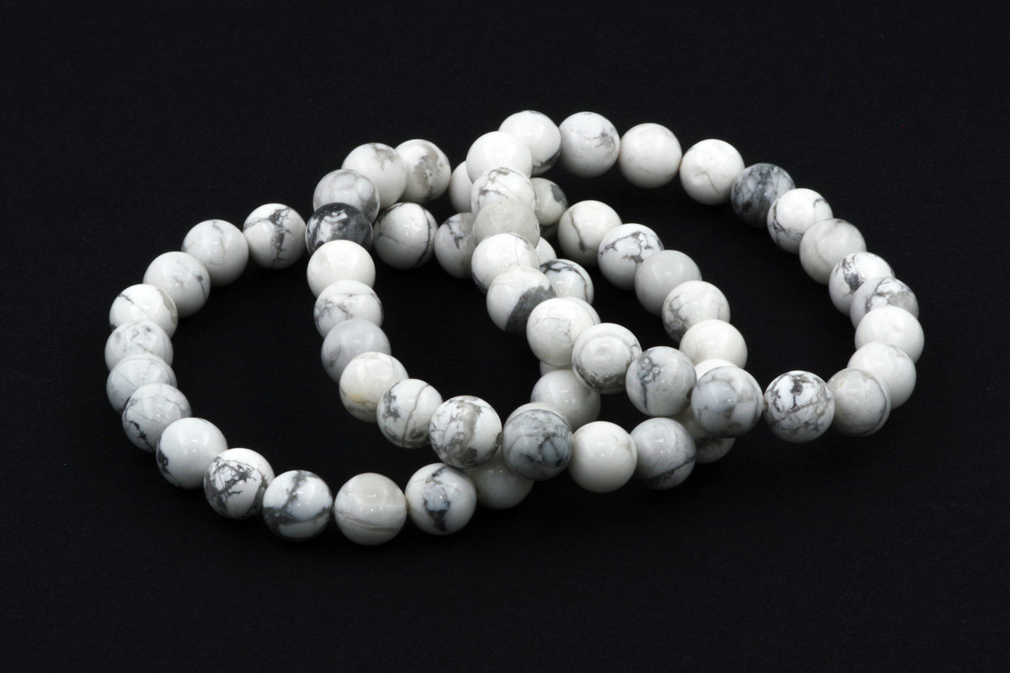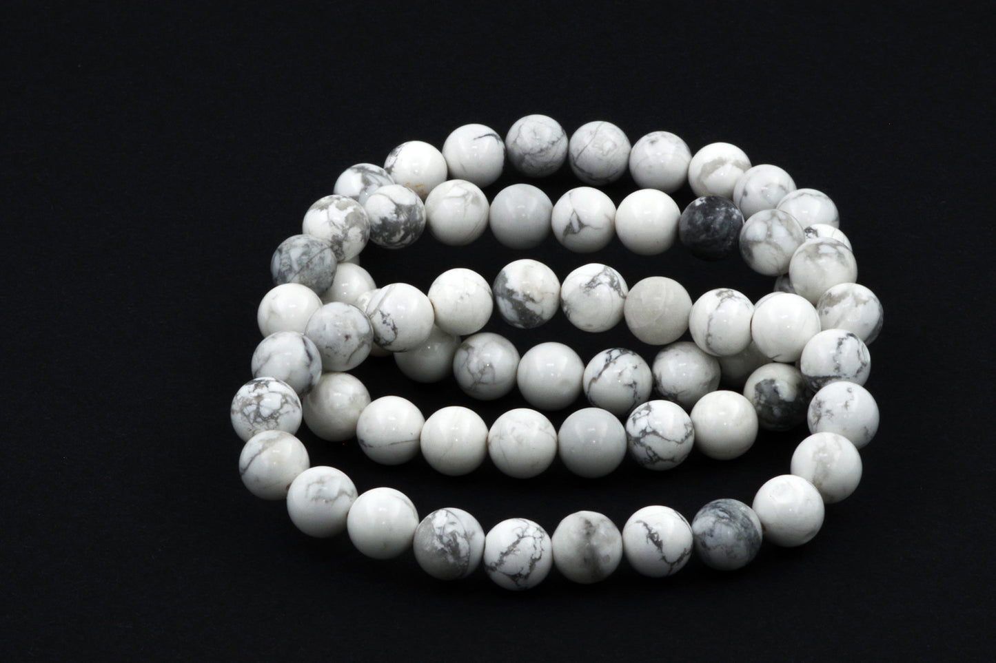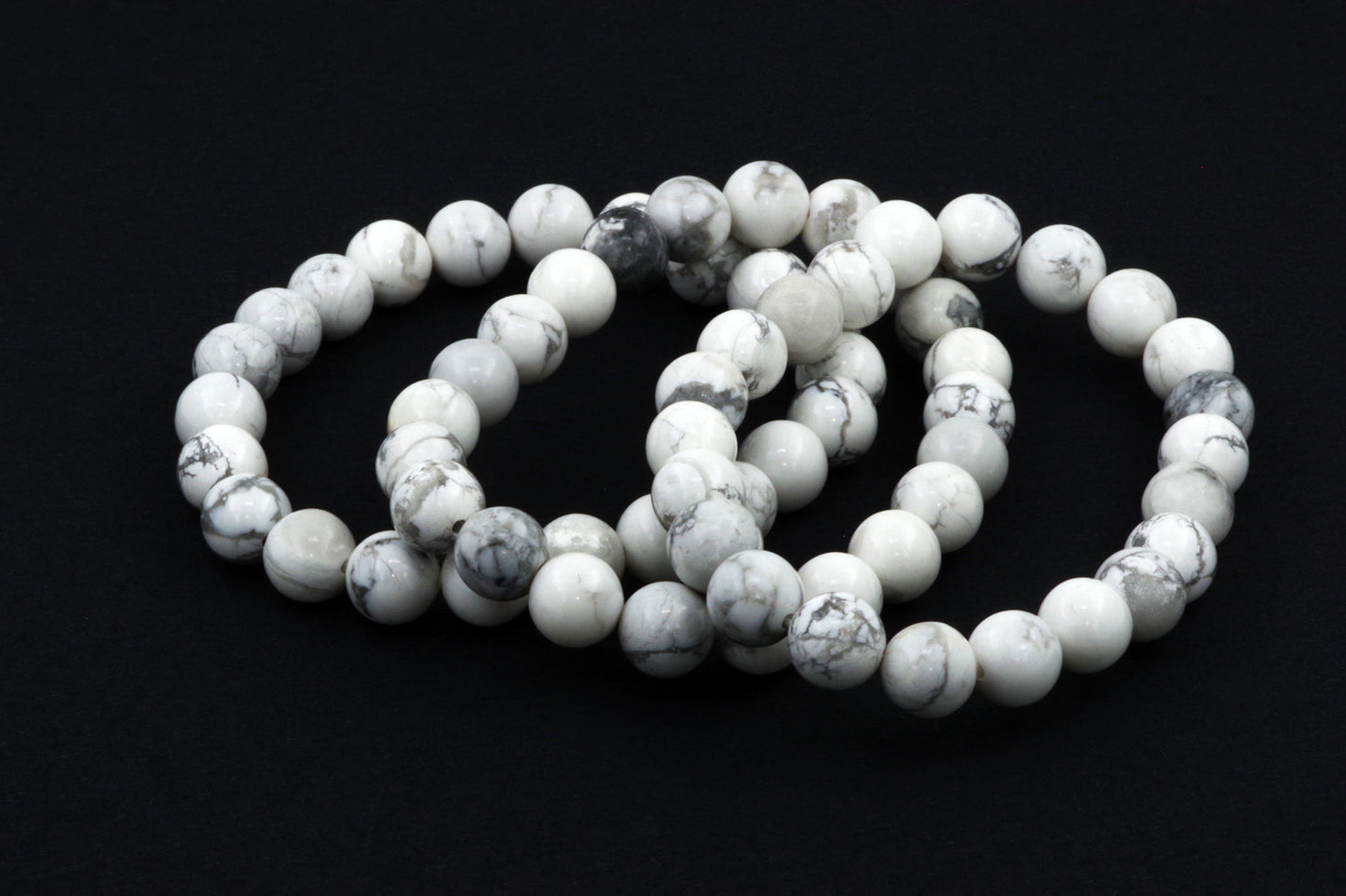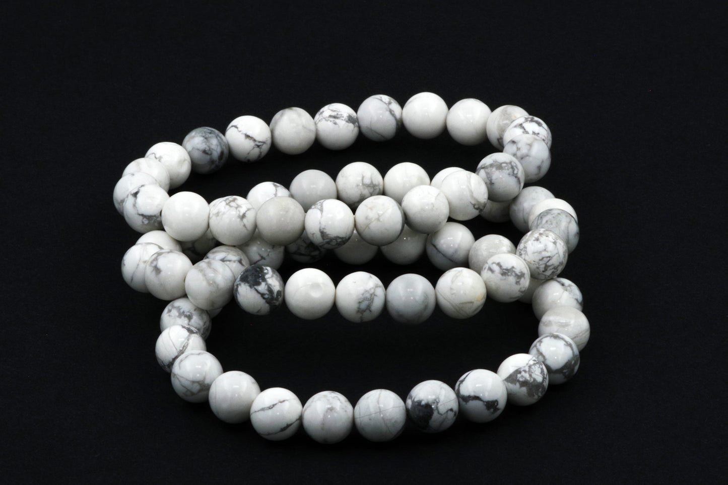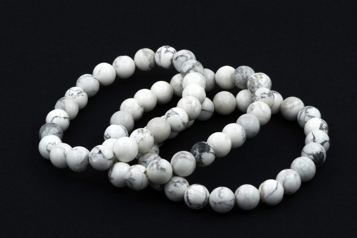 Feine Perlen: Jede 6 mm Houlit-Perle, die mit natürlicher Weißheit und geheimnisvollen grau-blauen oder schwarzen Mustern strahlt, offenbart die Geheimnisse der Natur und verleiht dem Armband ein einzigartiges, elegantes Aussehen.