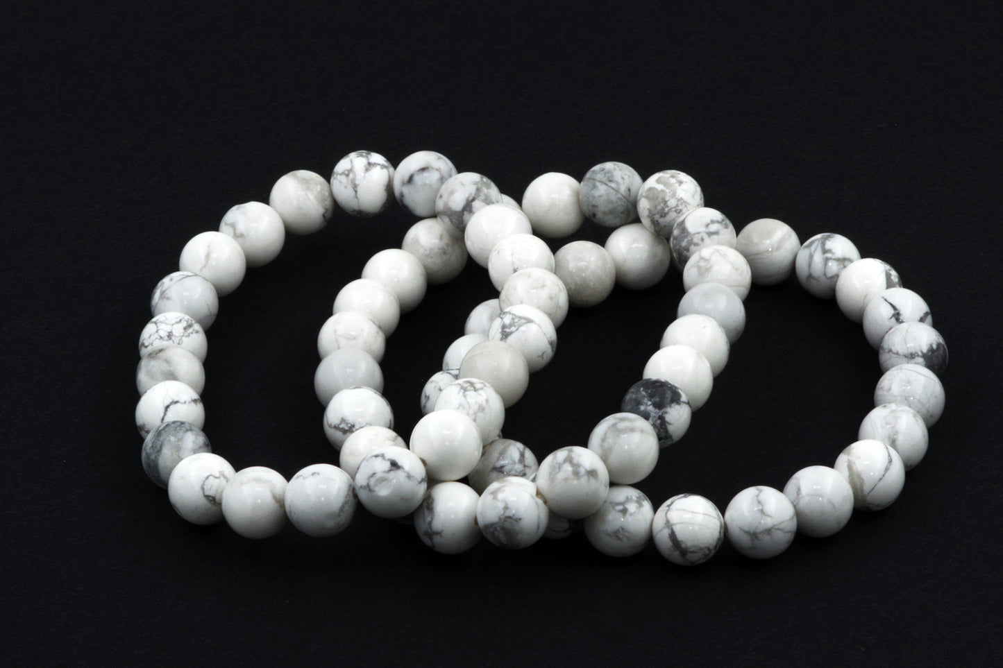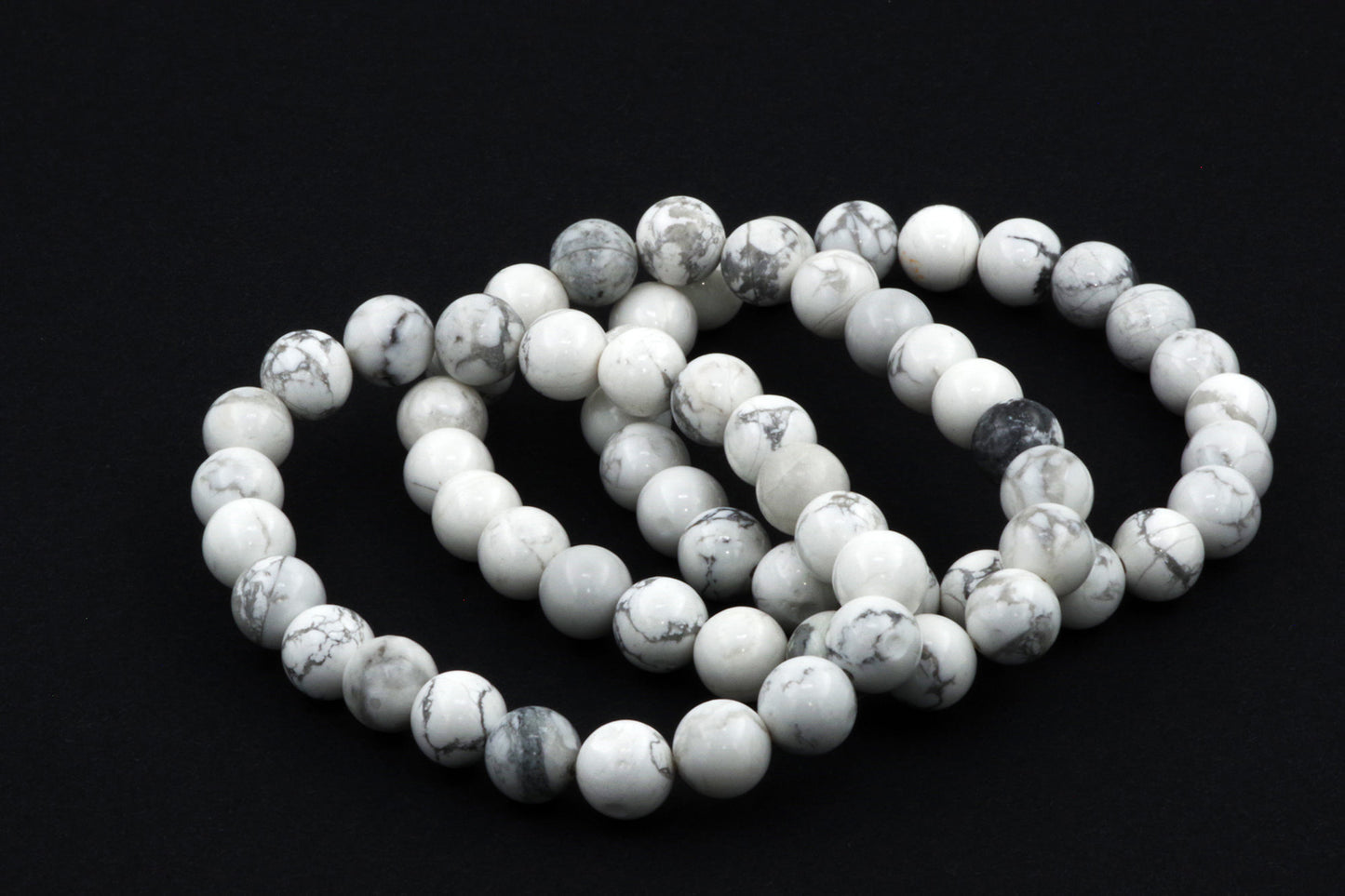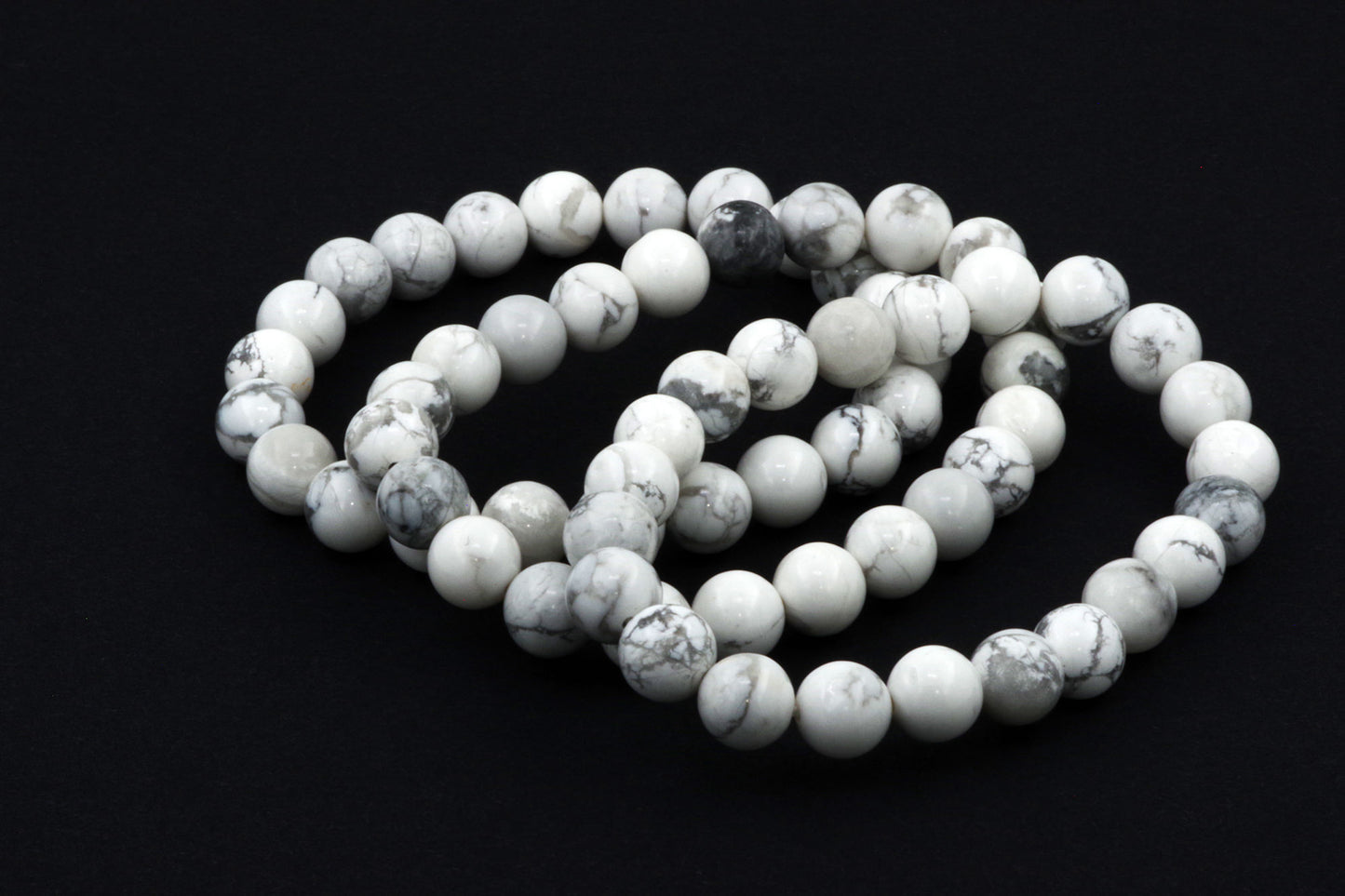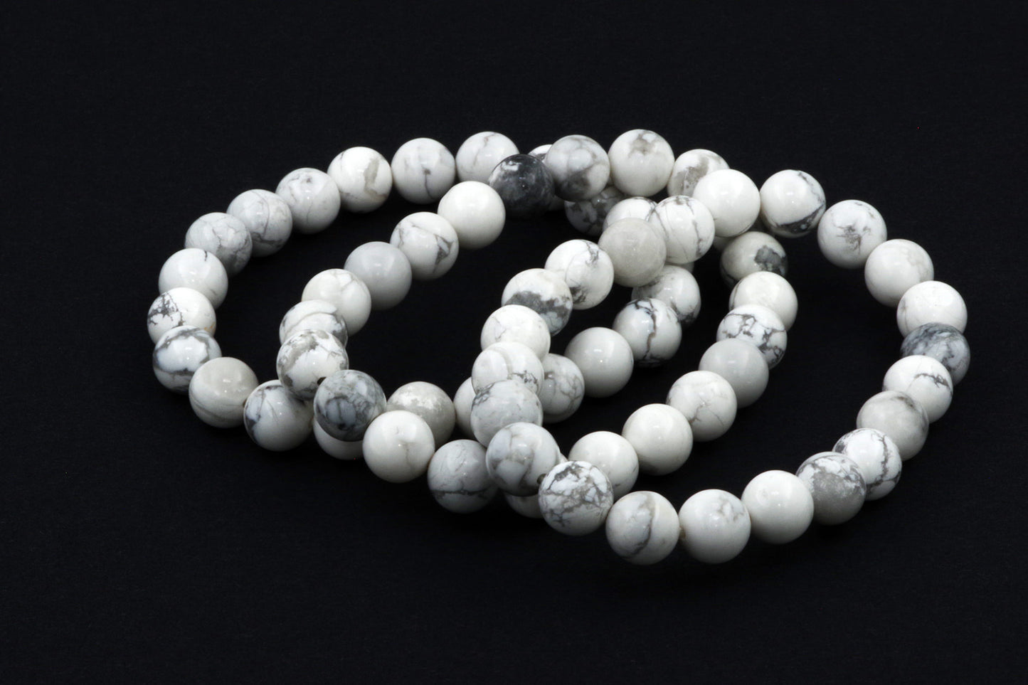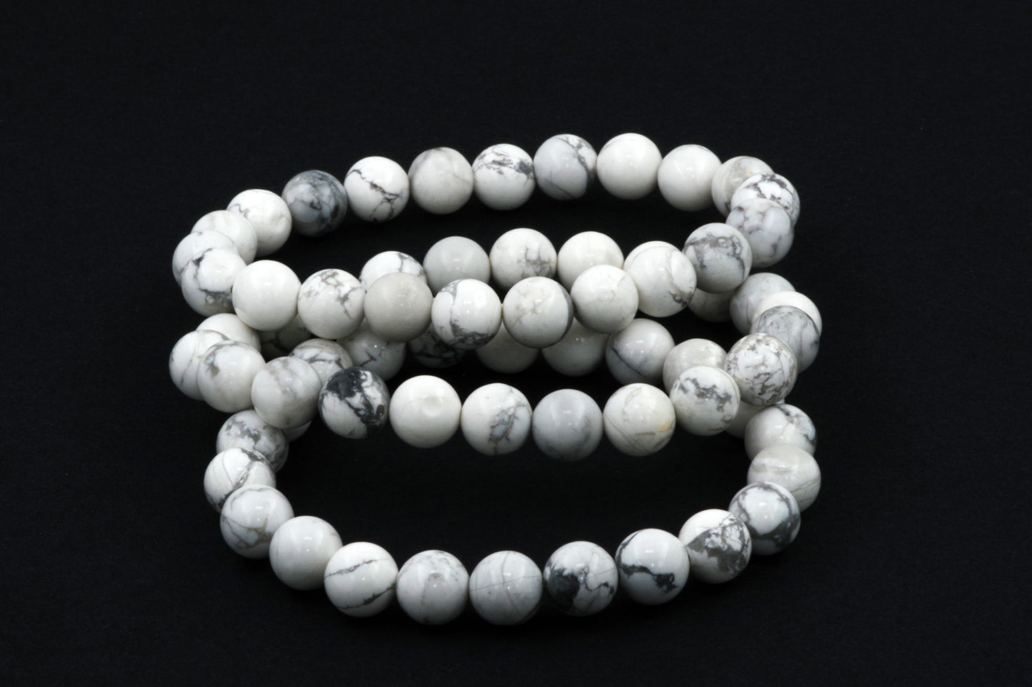 Feine Perlen: Jede 6 mm Houlit-Perle, die mit natürlicher Weißheit und geheimnisvollen grau-blauen oder schwarzen Mustern strahlt, offenbart die Geheimnisse der Natur und verleiht dem Armband ein einzigartiges, elegantes Aussehen.