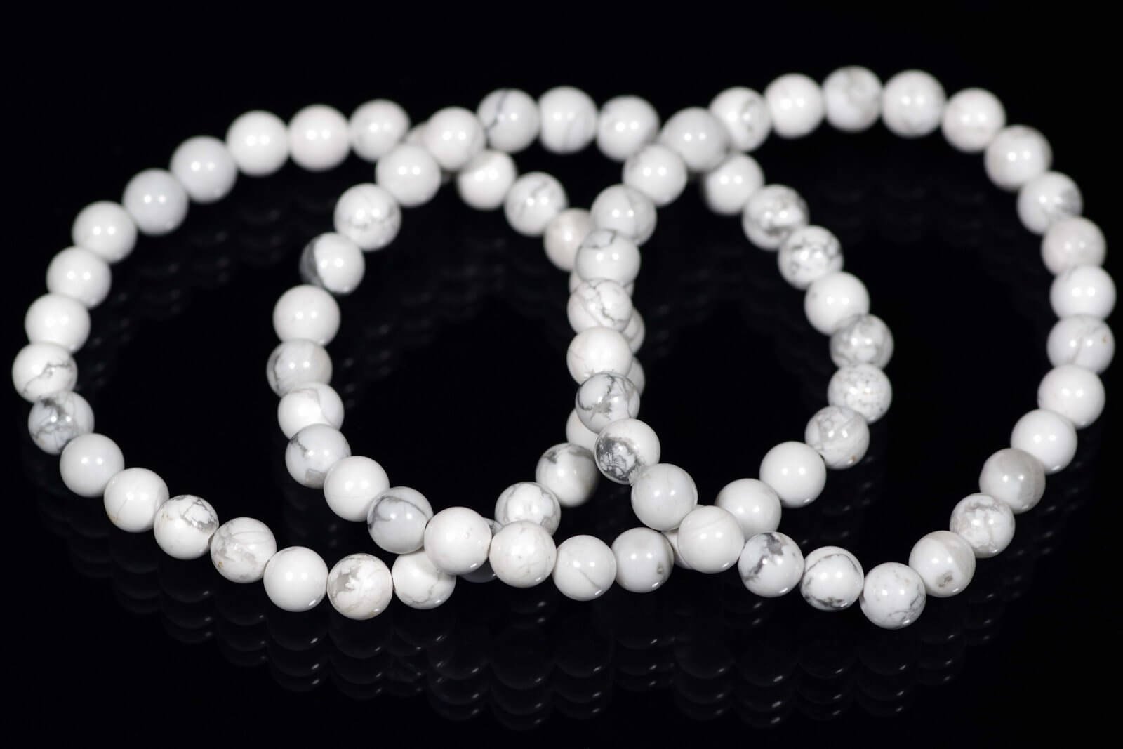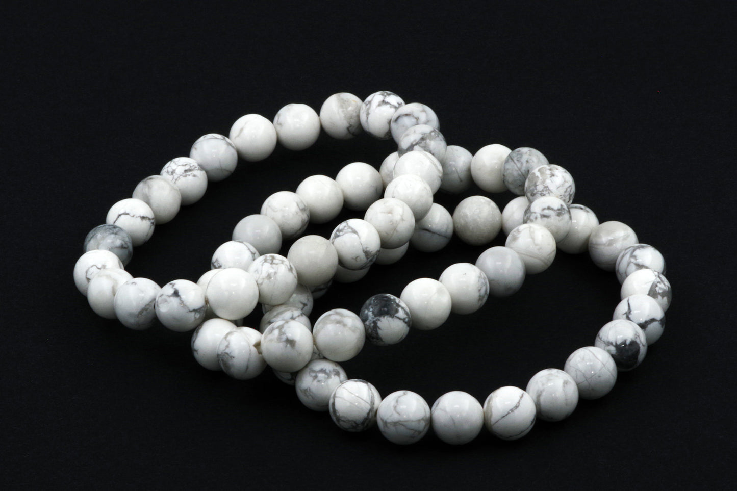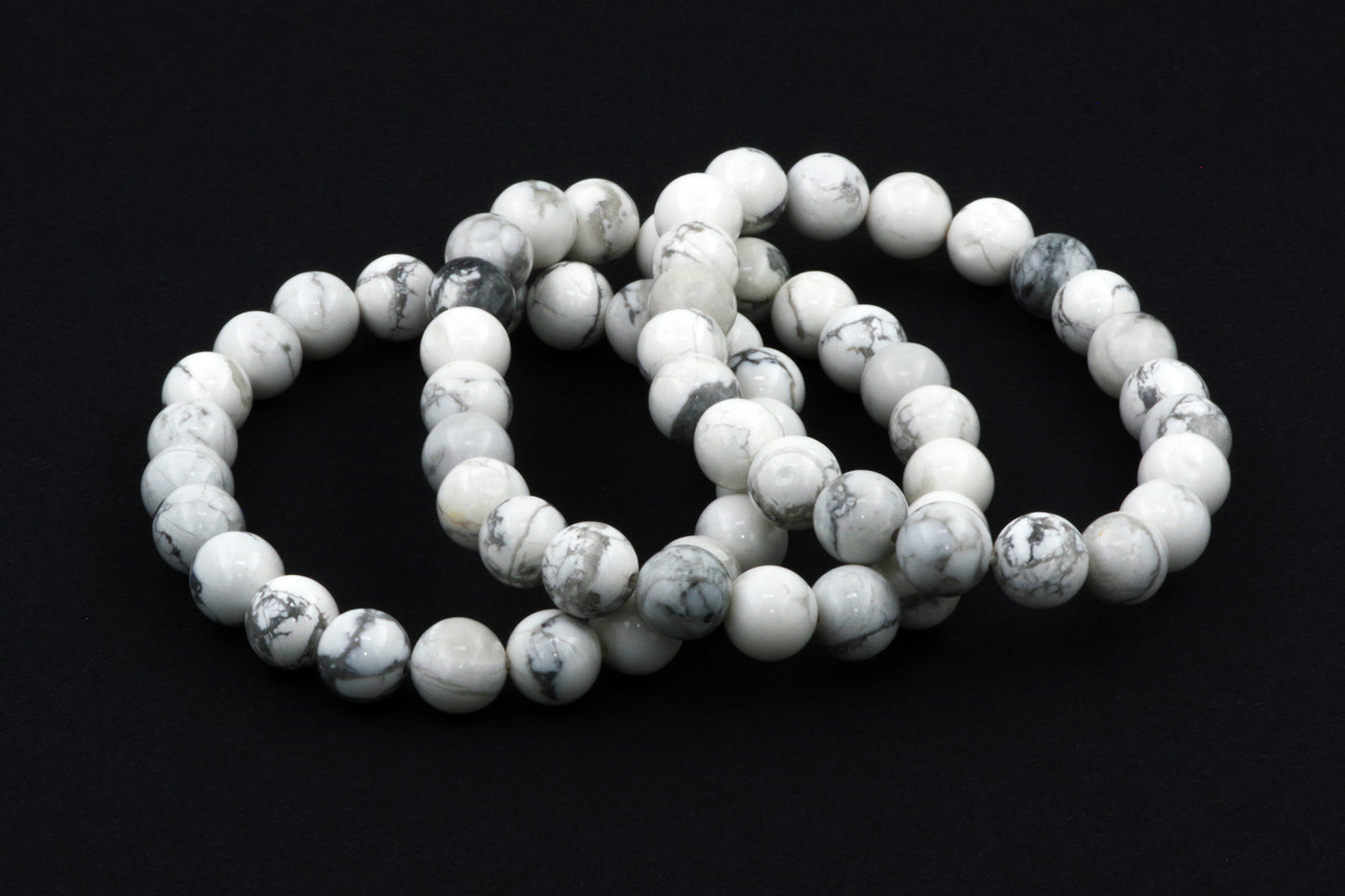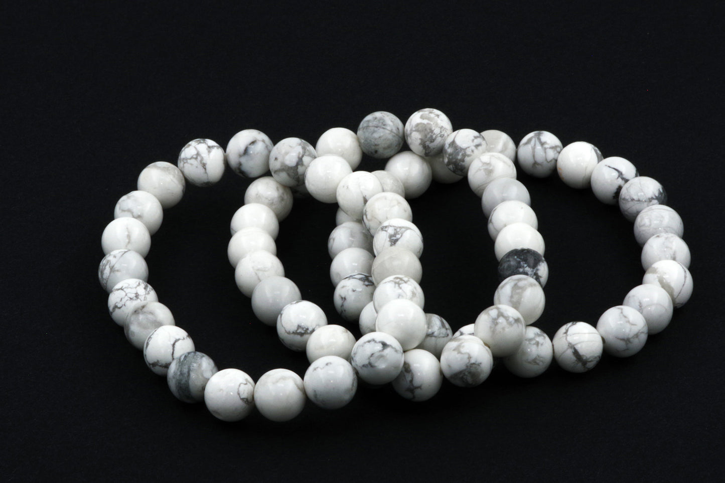 Feine Perlen: Jede 6 mm Houlit-Perle, die mit natürlicher Weißheit und geheimnisvollen grau-blauen oder schwarzen Mustern strahlt, offenbart die Geheimnisse der Natur und verleiht dem Armband ein einzigartiges, elegantes Aussehen.