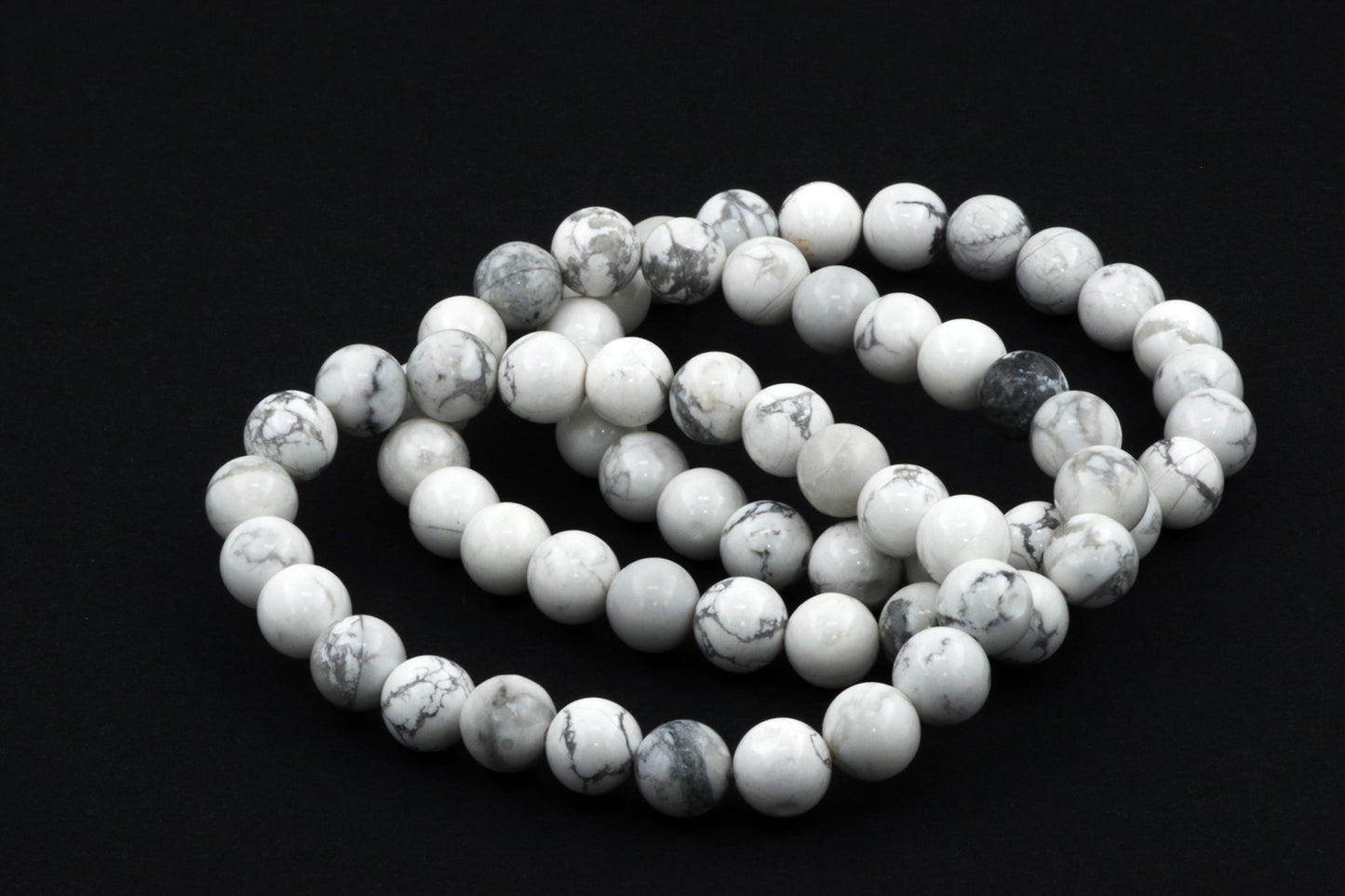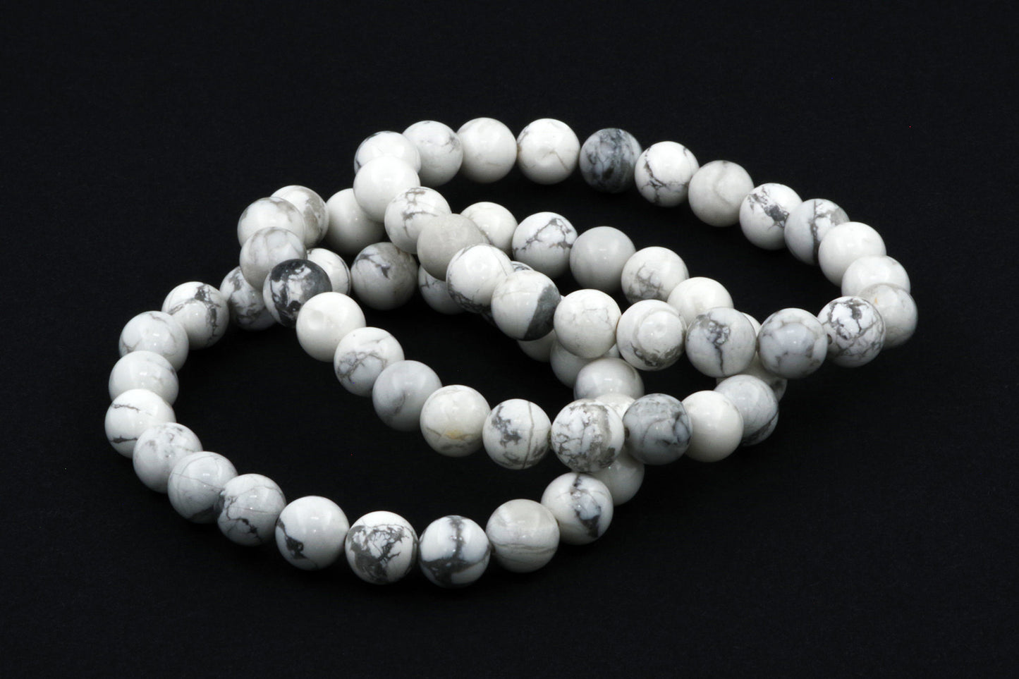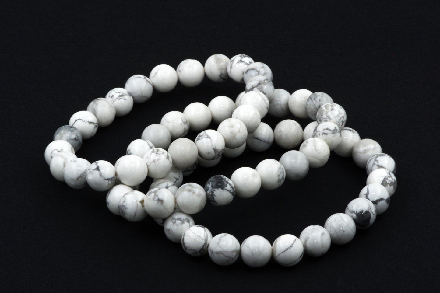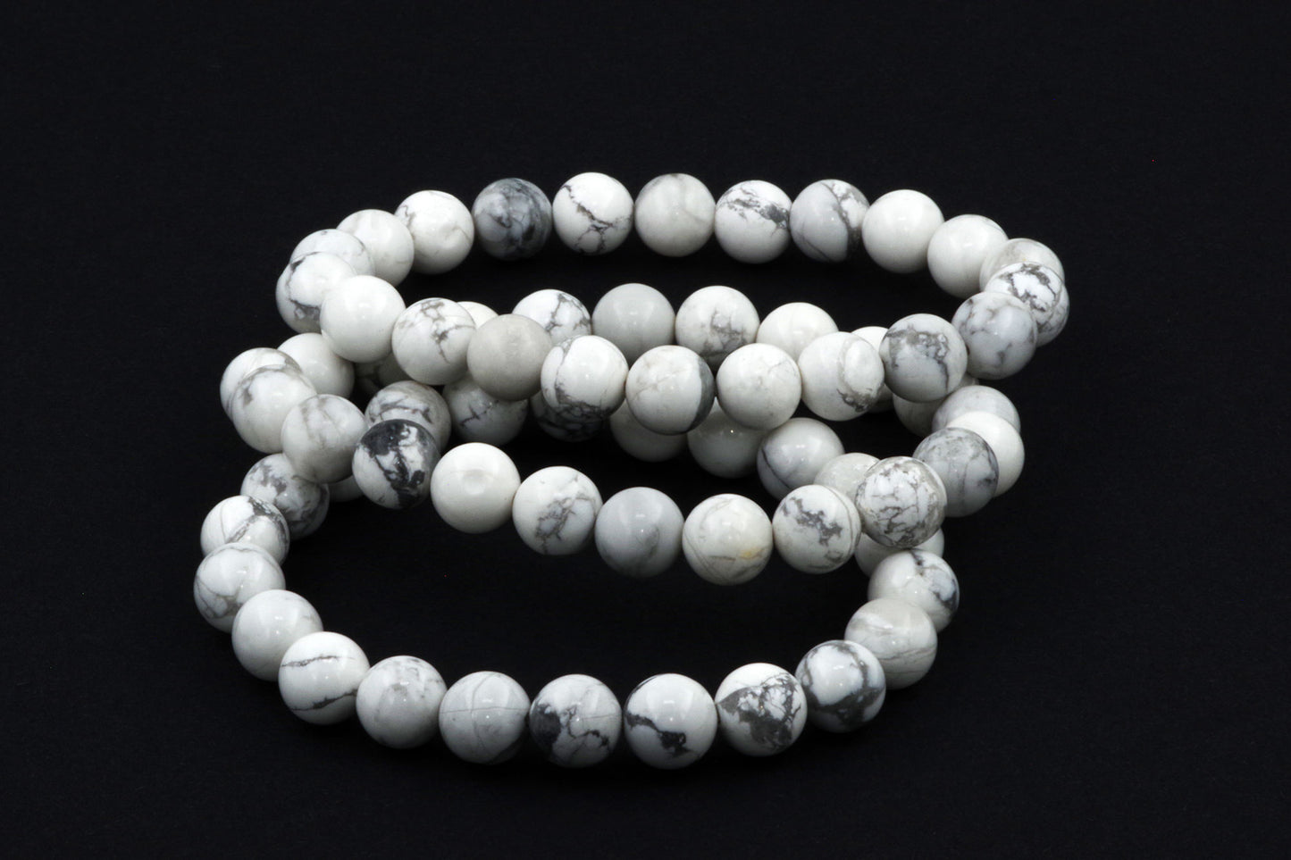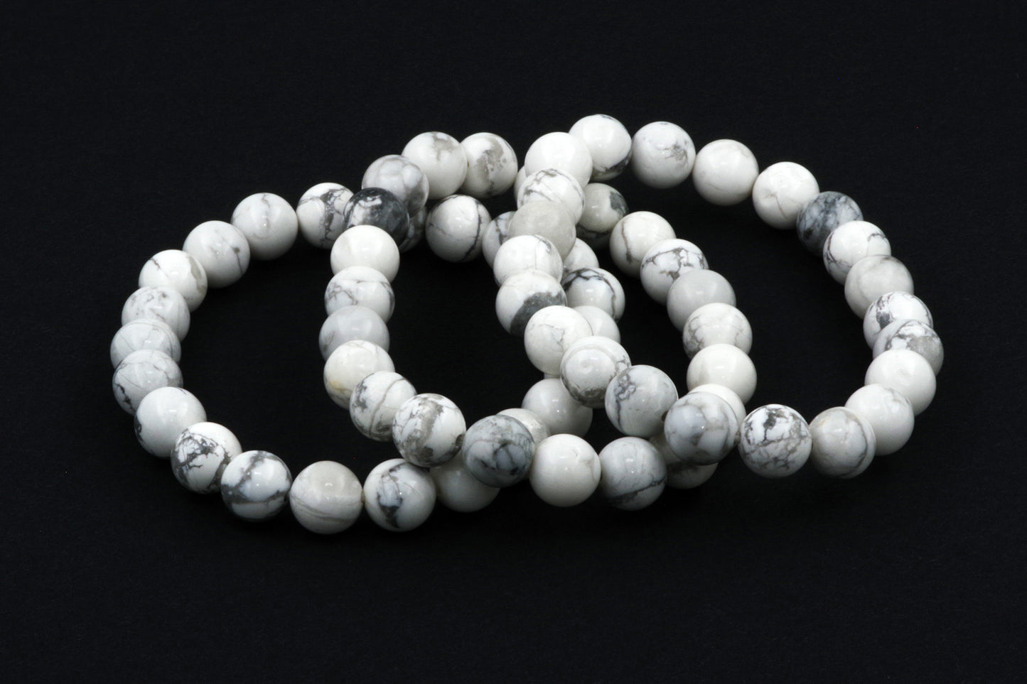 Feine Perlen: Jede 6 mm Houlit-Perle, die mit natürlicher Weißheit und geheimnisvollen grau-blauen oder schwarzen Mustern strahlt, offenbart die Geheimnisse der Natur und verleiht dem Armband ein einzigartiges, elegantes Aussehen.