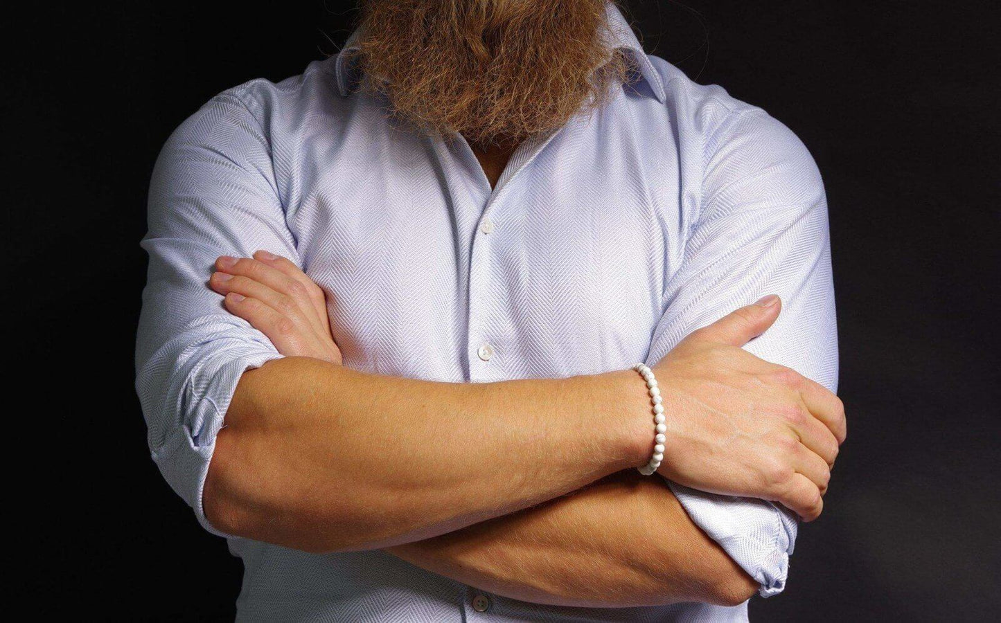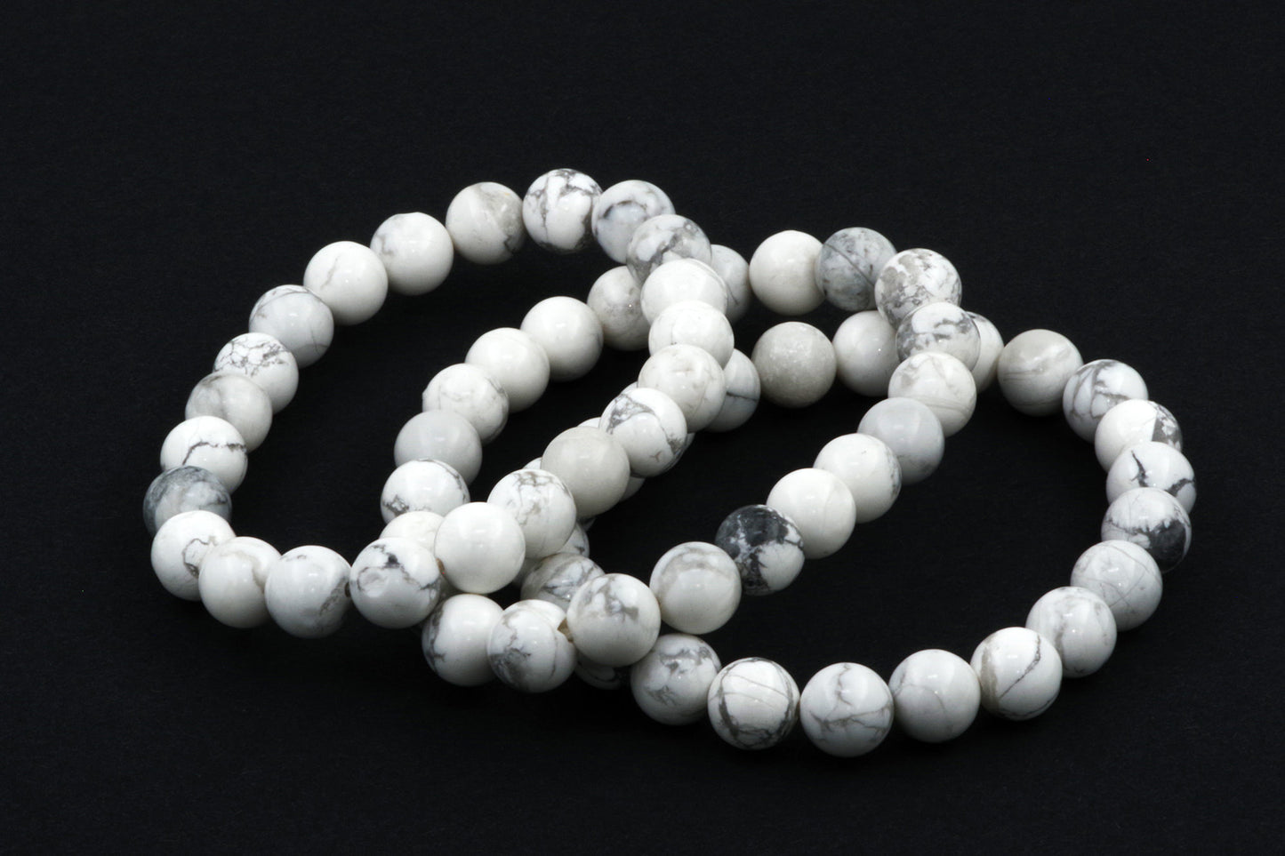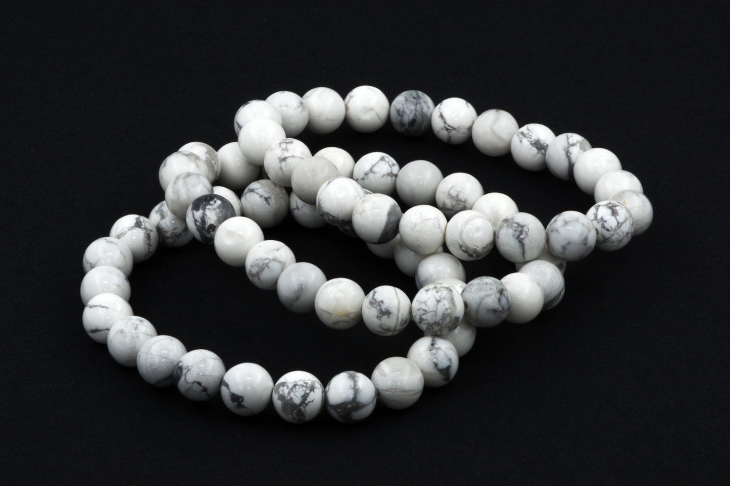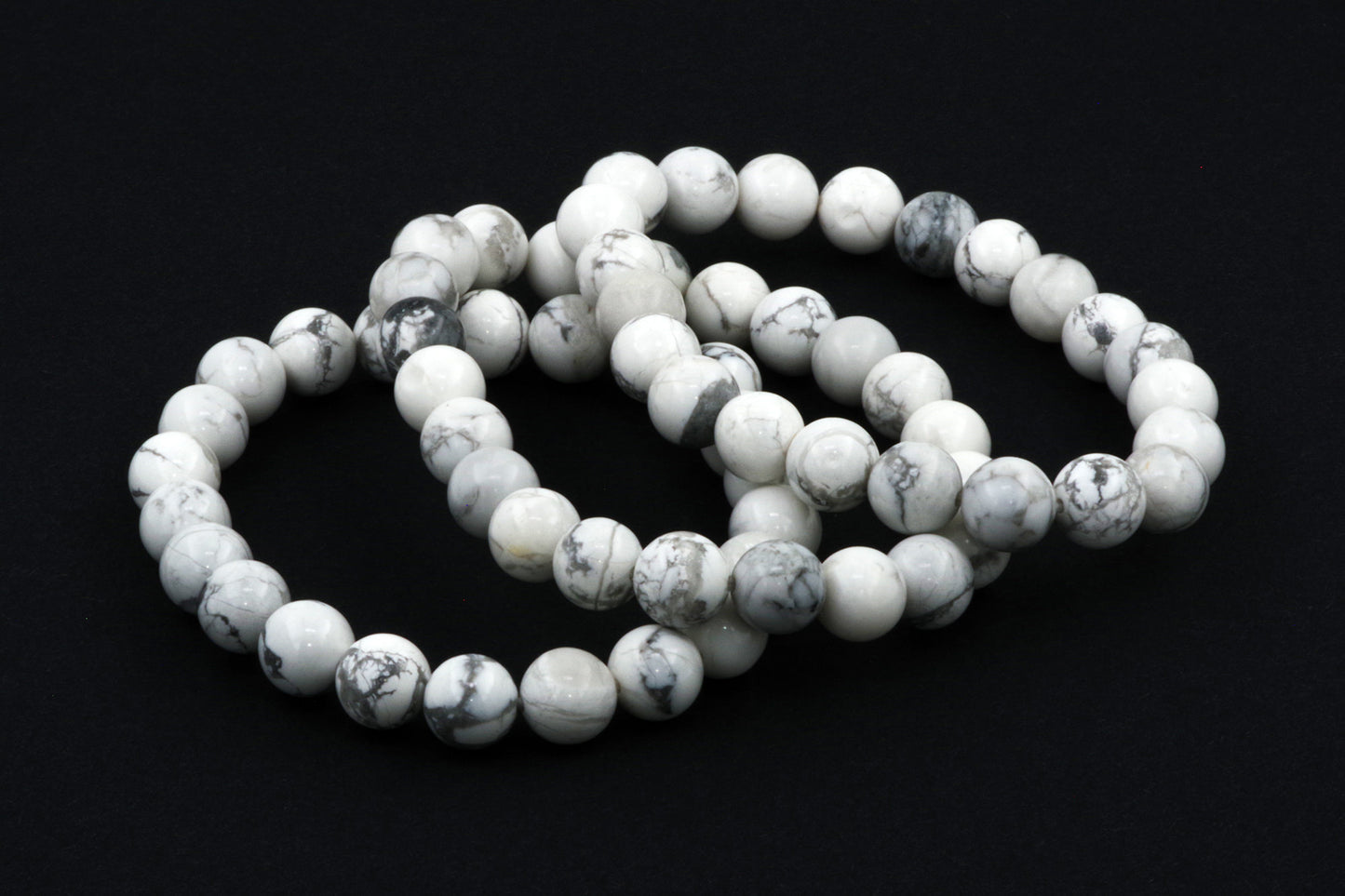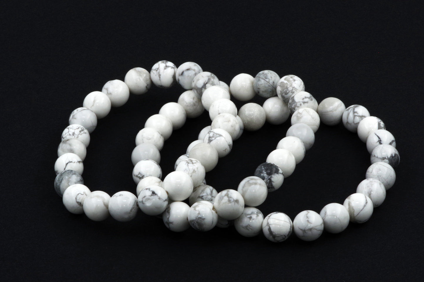 Feine Perlen: Jede 6 mm Houlit-Perle, die mit natürlicher Weißheit und geheimnisvollen grau-blauen oder schwarzen Mustern strahlt, offenbart die Geheimnisse der Natur und verleiht dem Armband ein einzigartiges, elegantes Aussehen.