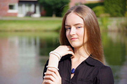 Glanz von vergoldetem Silber: Details aus 925er Silber verleihen dem Armband Luxus und Langlebigkeit und bringen ein feines, magisches Leuchten hervor, das die Individualität jeder Perle betont.