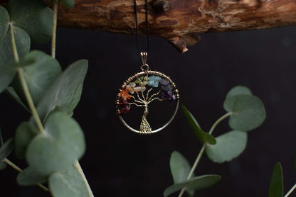 Ανακαλύψτε ένα ξεχωριστό κόσμημα που συνδυάζει τη συμβολική του Δέντρου της Ζωής με πέτρες από διάφορες τσάκρα: Κρύσταλλος Βουνού, Αμέθυστος, Ιολίτης, Περδίτης, Τοπάζι, Καρνεόλη και Γρανάτης. Κάθε πέτρα αντιστοιχεί σε μια συγκεκριμένη τσάκρα, αποκαλύπτοντας το εσωτερικό δυναμικό, την ισορροπία ενέργειας και την πνευματική ανάπτυξη.