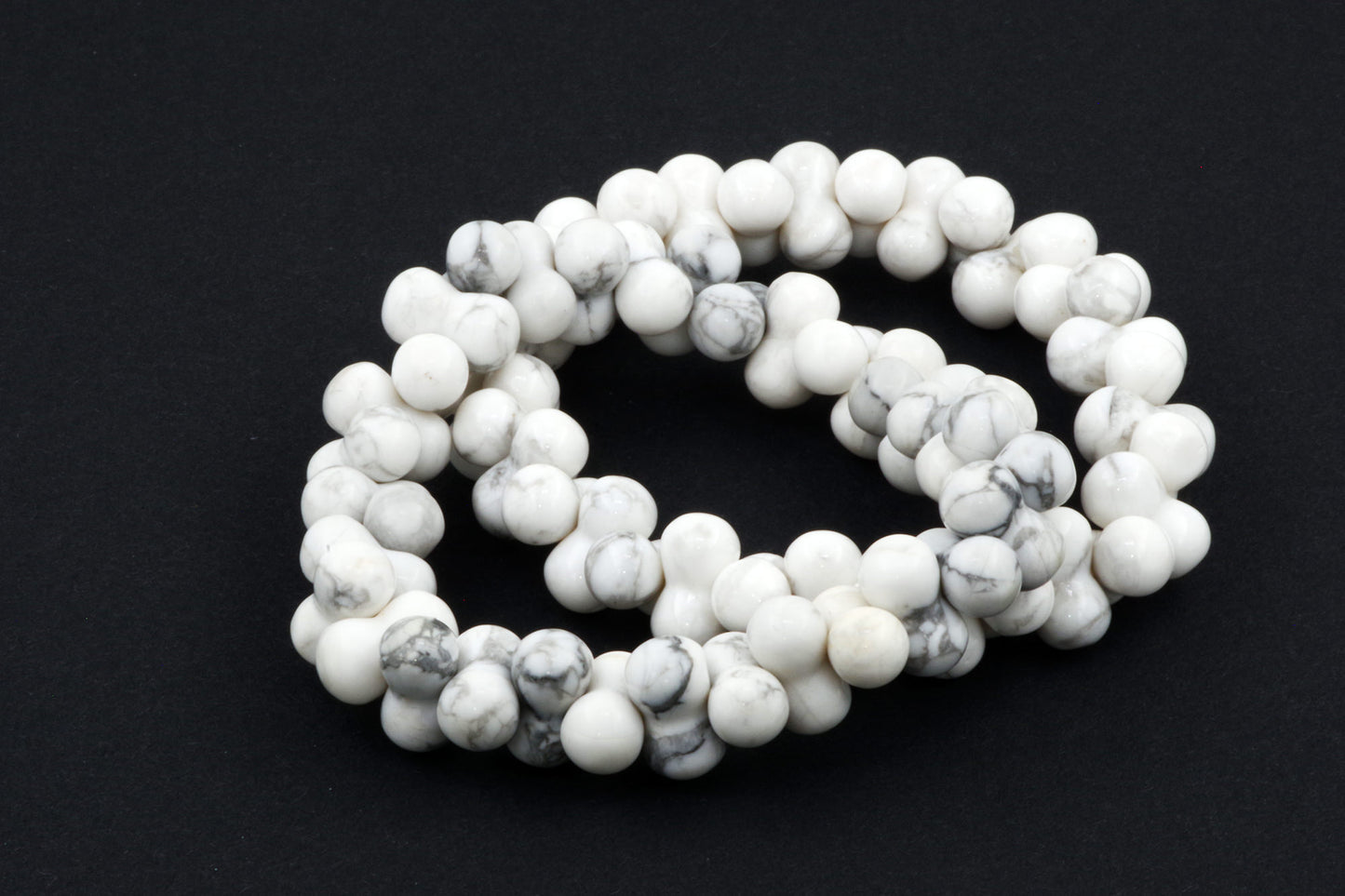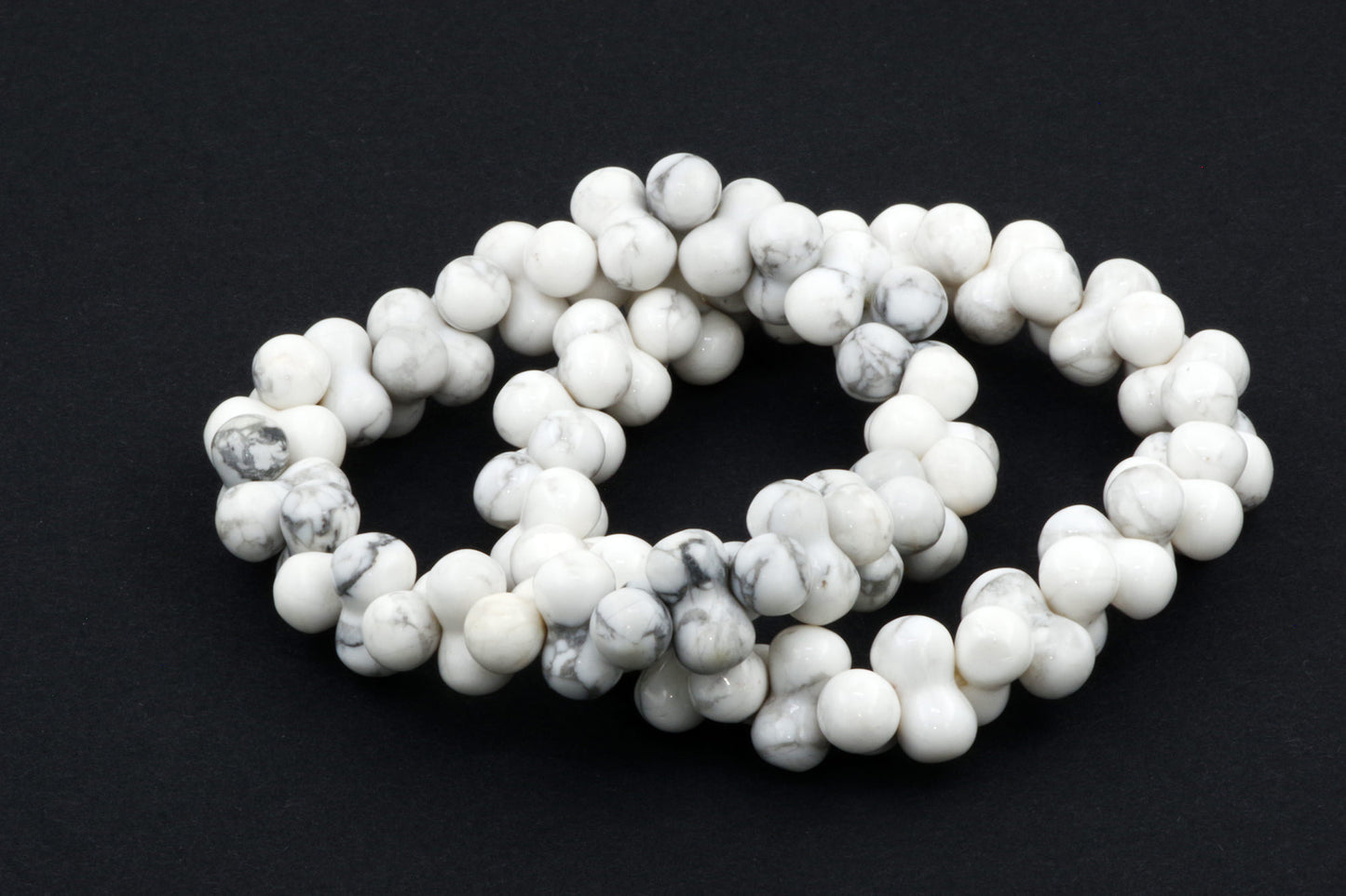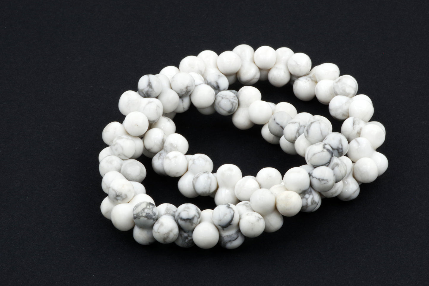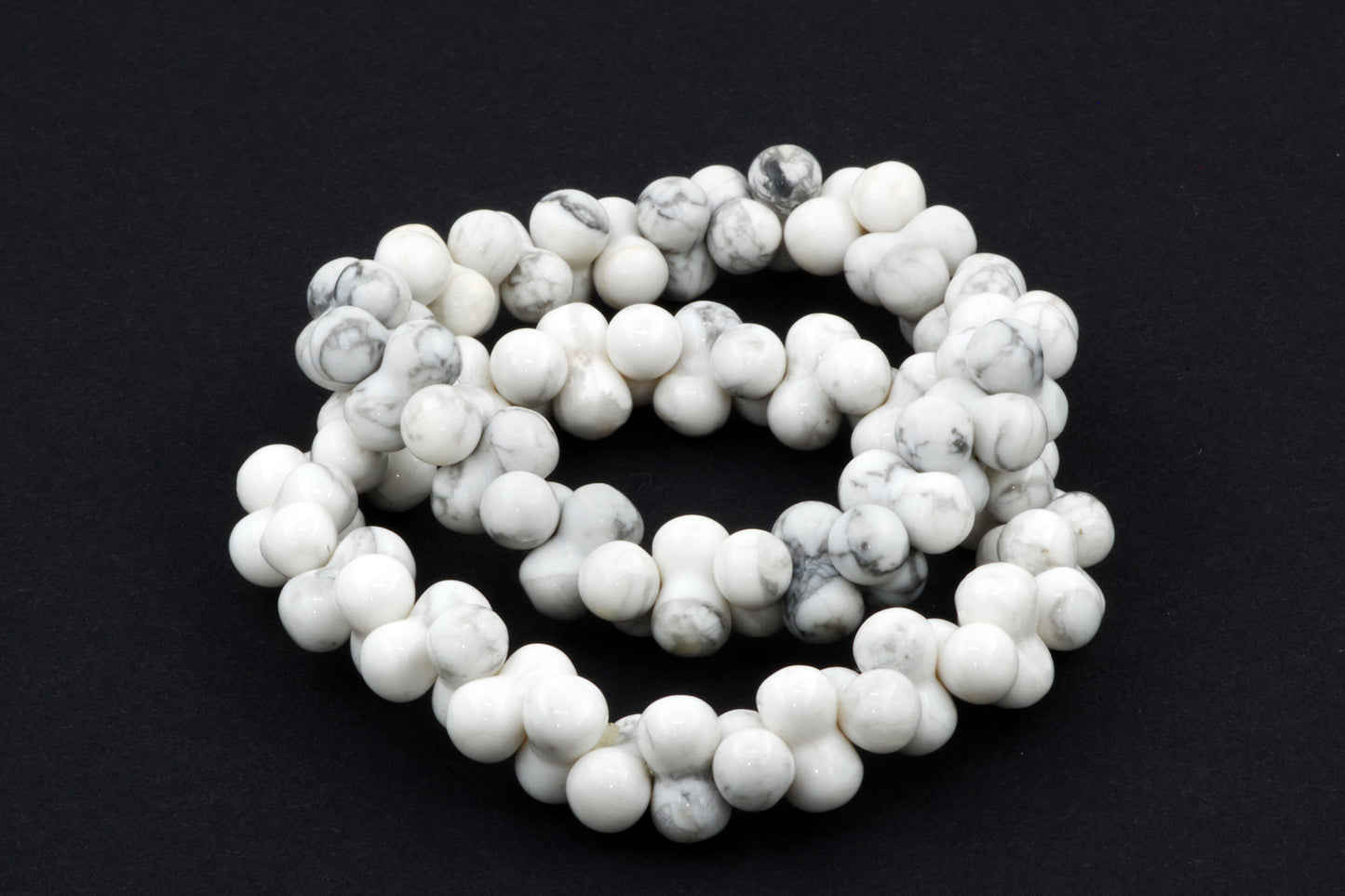 Natural Glow of Howlite: Natural howlite, with its gentle whiteness, marked by mysterious blue and gray patterns, shines like celestial beacons, bringing elegance and subtlety.