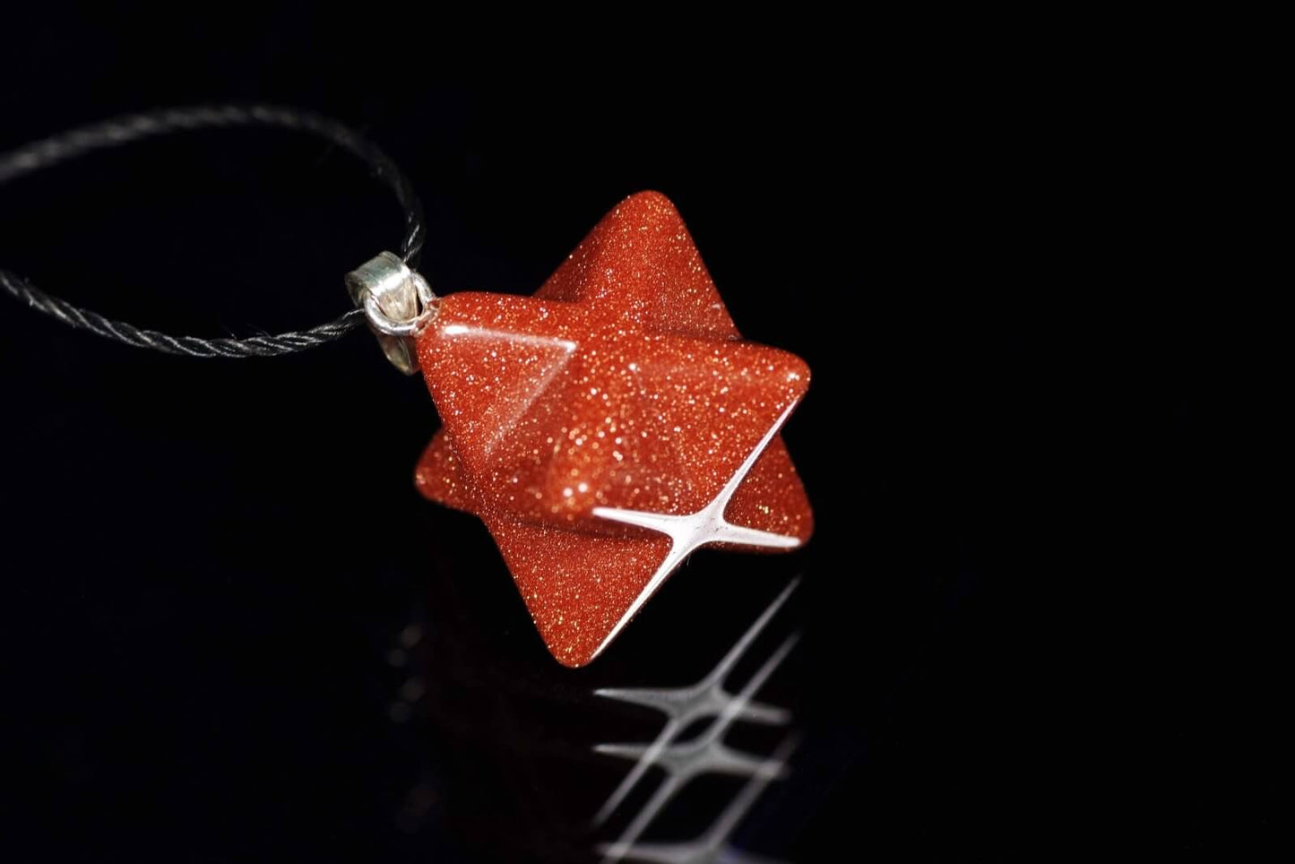 Descubre una joya especialmente simbólica y energéticamente poderosa que combina la belleza de la piedra dorada con brillo estrellado y la forma geométrica de la Merkaba. La Merkaba, conocida como vehículo espiritual, simboliza viajes a dimensiones superiores de conciencia y equilibrio espiritual, otorgando a este colgante un profundo significado simbólico.