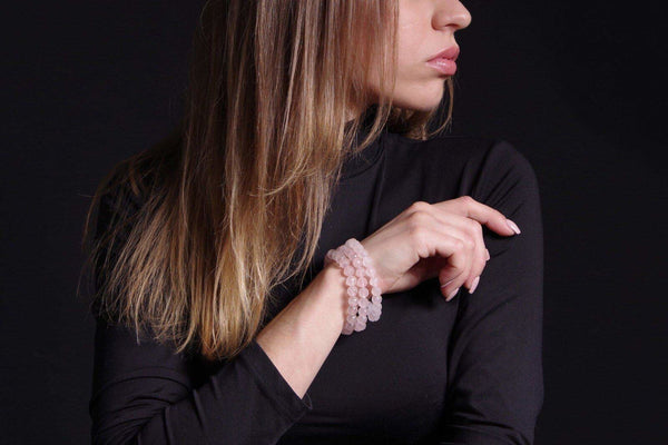 La pulsera de cuarzo rosa "Faceteada" es una joya lujosa y luminosa, creada con piedras facetadas de cuarzo rosa. Este accesorio destaca por su diseño elegante y su sutil brillo, que transmite la simbología del amor y el equilibrio emocional.