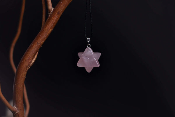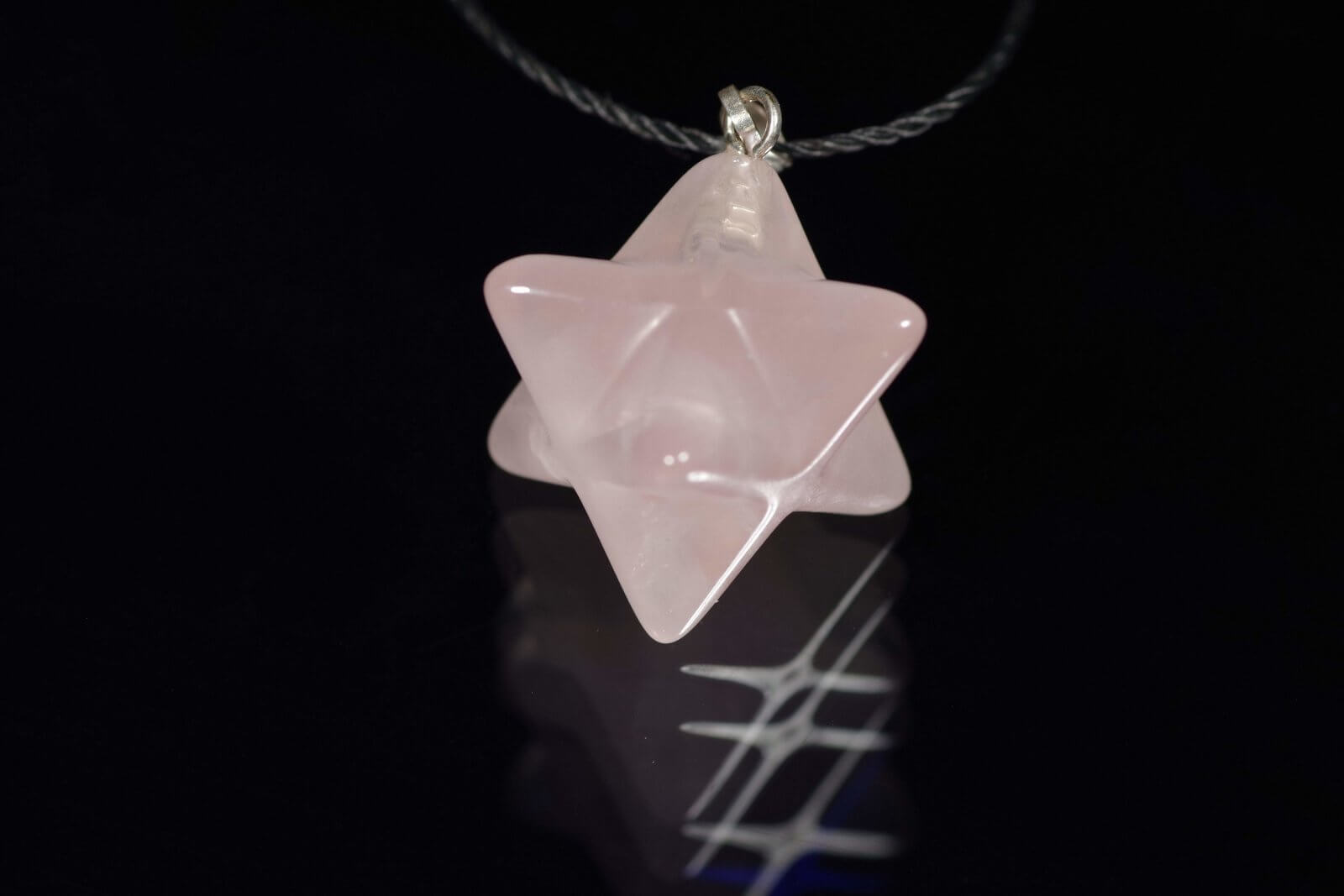 Descubra una joya única y espiritualmente significativa: el Colgante de Cuarzo Rosa "Merkabah". En este accesorio, el cuarzo rosa natural, conocido por su suave color rosa y energía de amor, está formado en la forma de Merkabah (estrella hexagonal), simbolizando una percepción espiritual superior, equilibrio y energía amorosa.