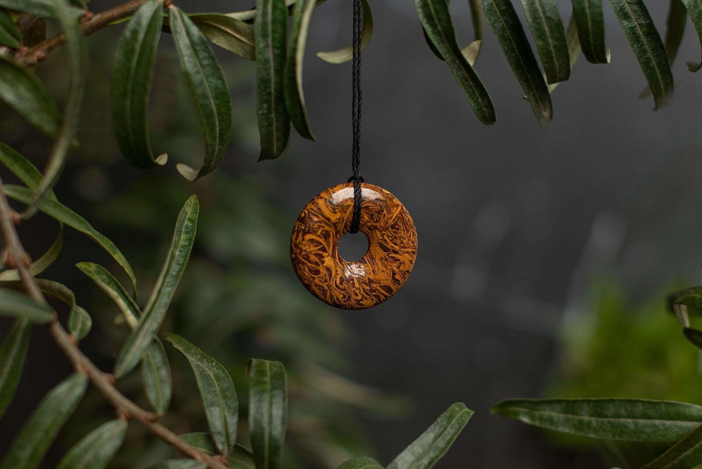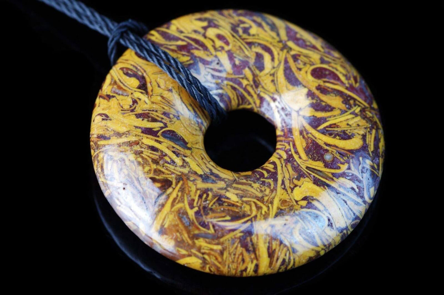 - Jaspe peau de serpent : Le caractère unique de cette pierre est orné de motifs multicolores rappelant la peau de serpent, ce qui confère au pendentif un aspect mystique et naturel.