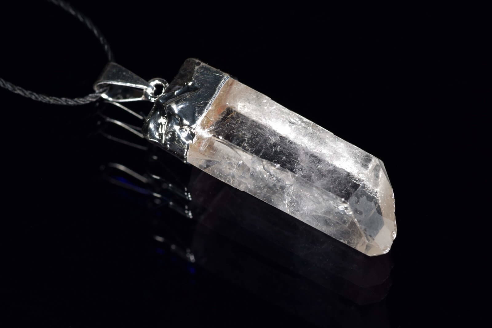 Cristal de roche : Ce minéral de quartz transparent est connu pour ses propriétés d'amplification et de purification de l'énergie, conférant au pendentif une sensation de luminosité exceptionnelle.