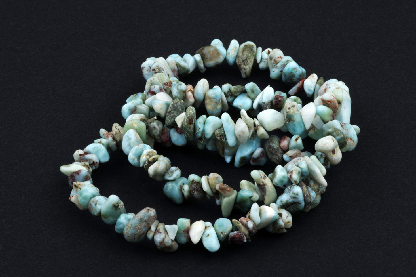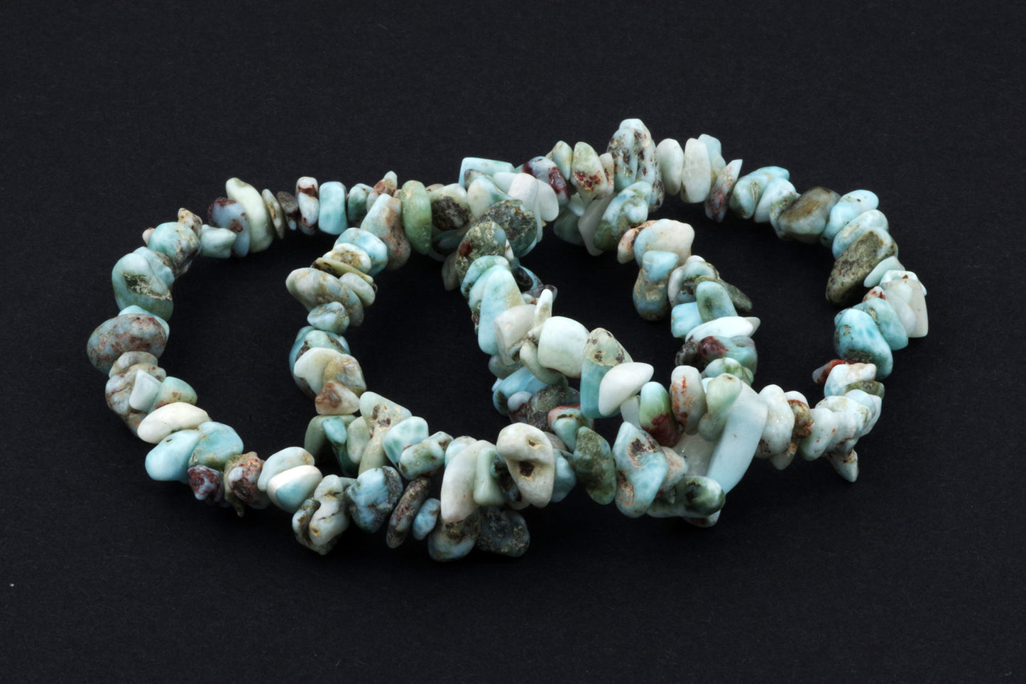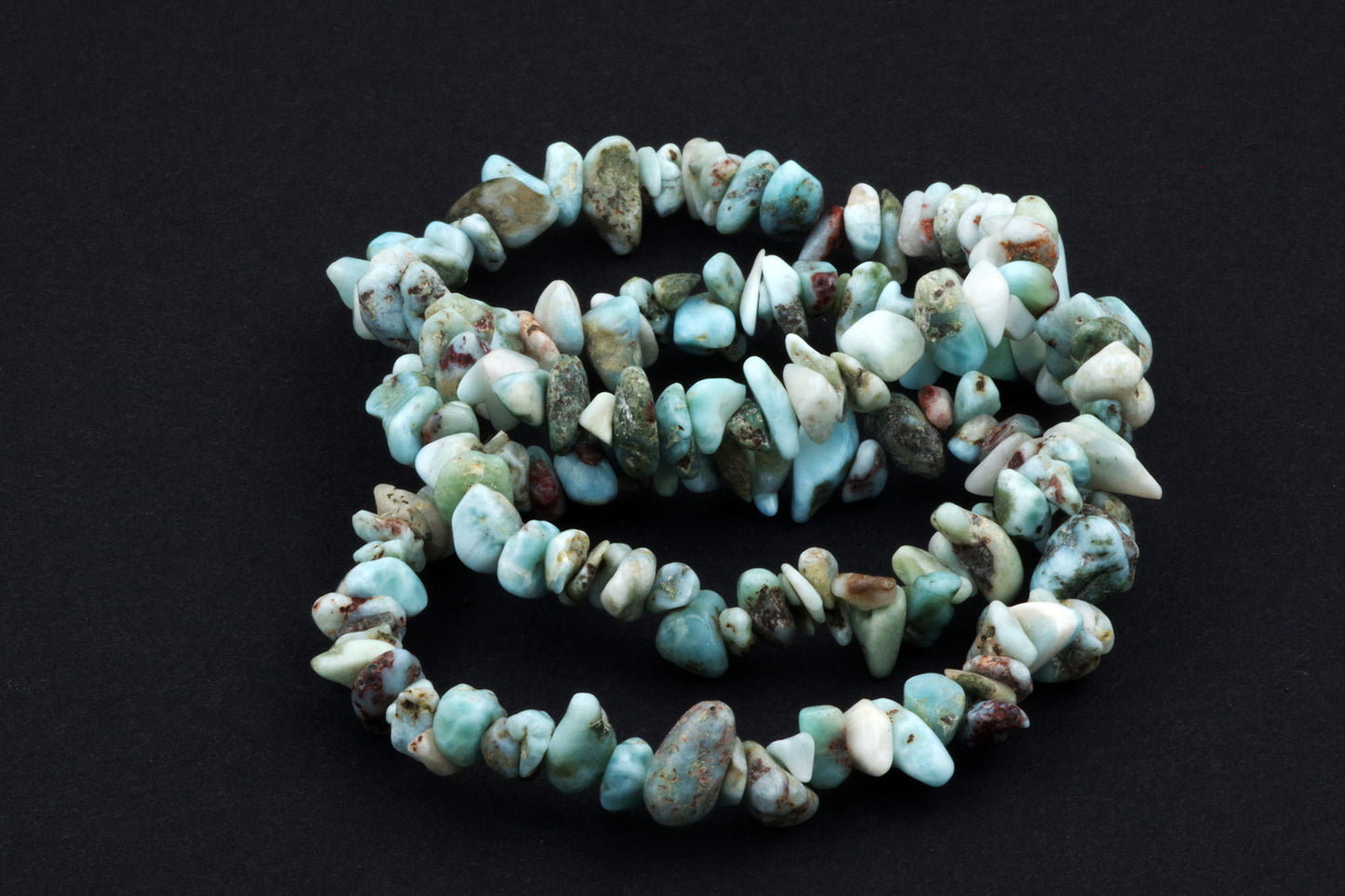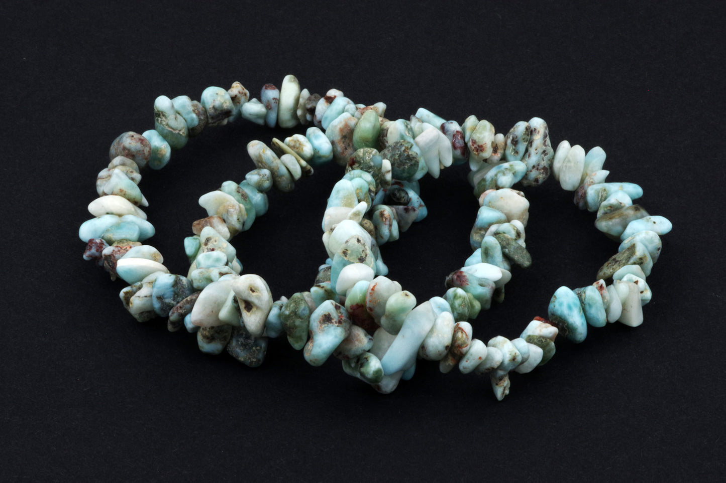 Style ludique "Chips" : Le bracelet est composé de petits chips de pierres de larimar, qui créent ensemble un effet visuel énergique et vivant.