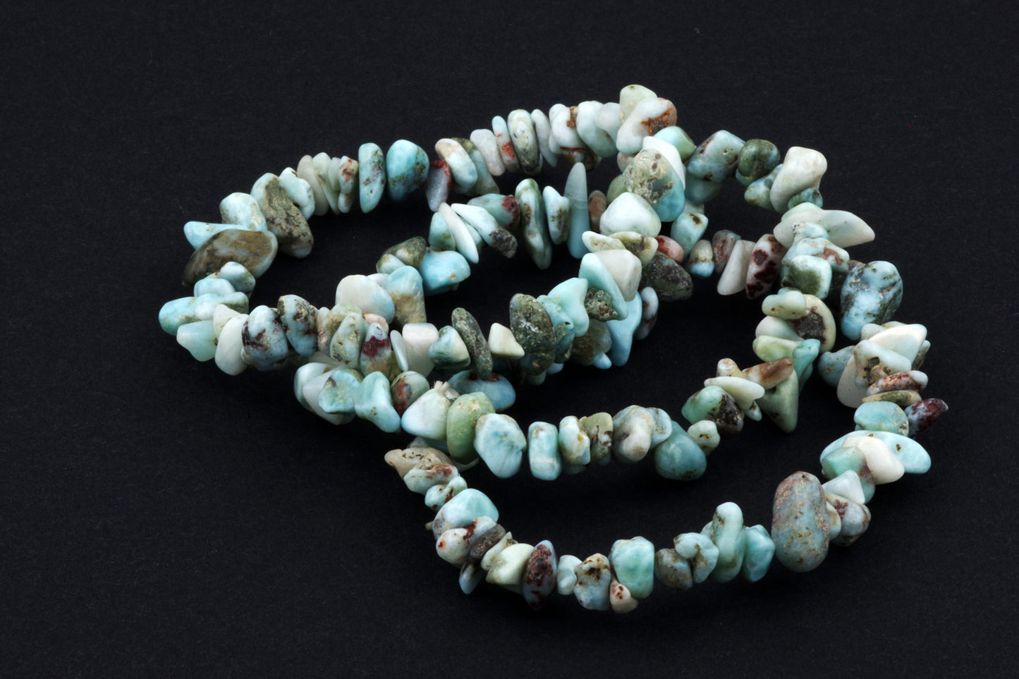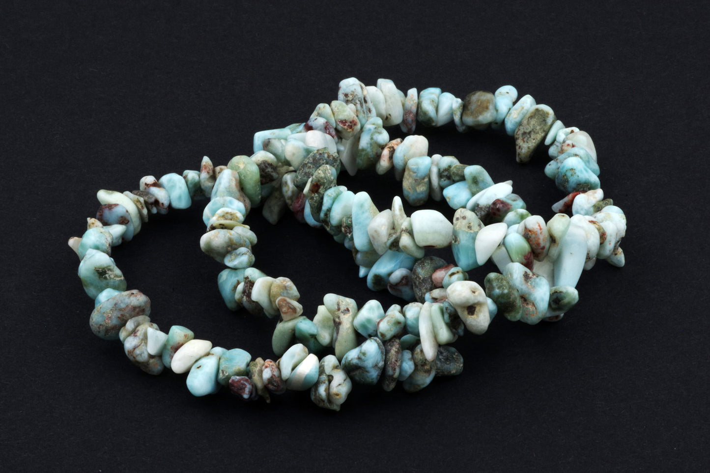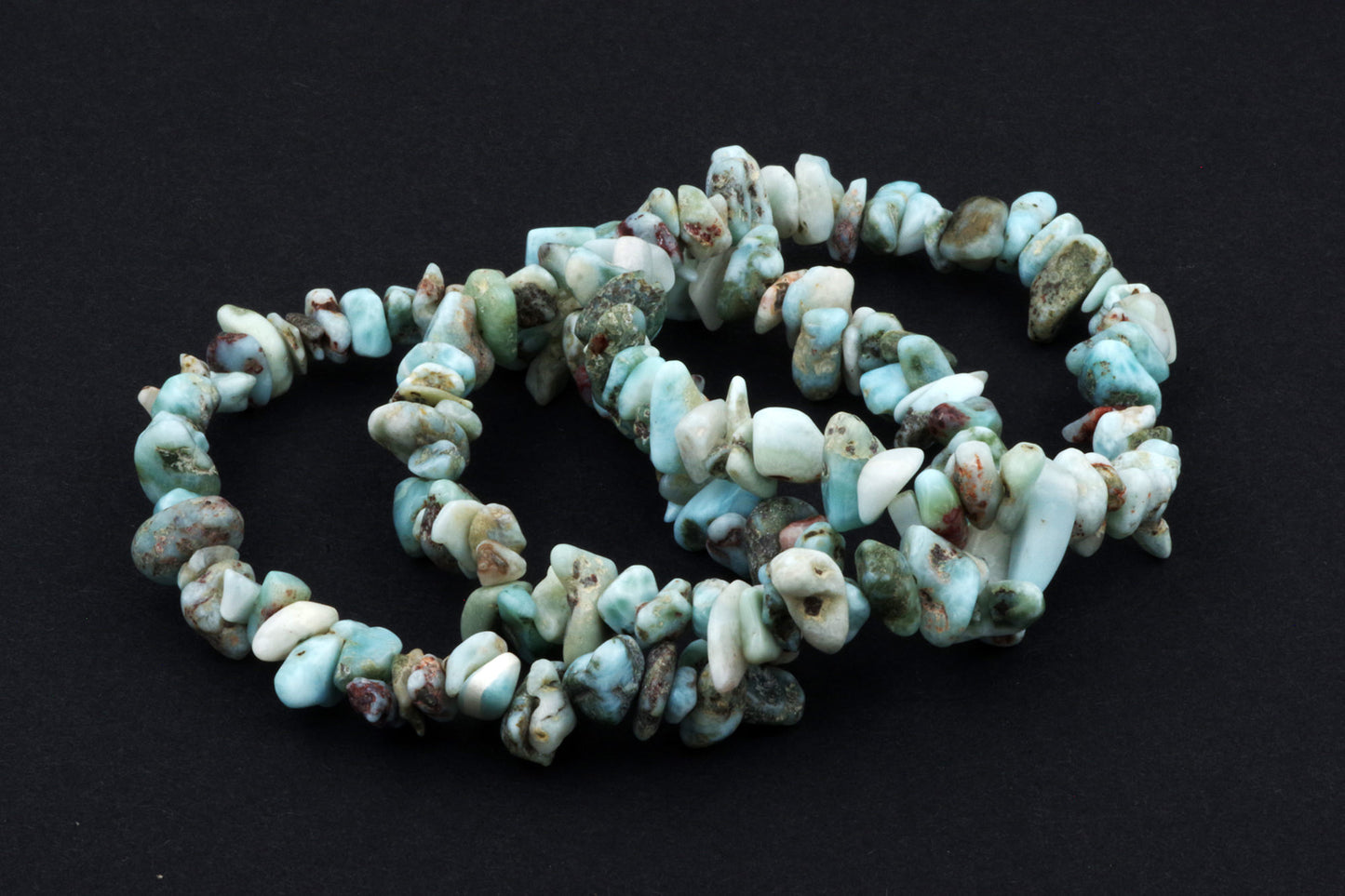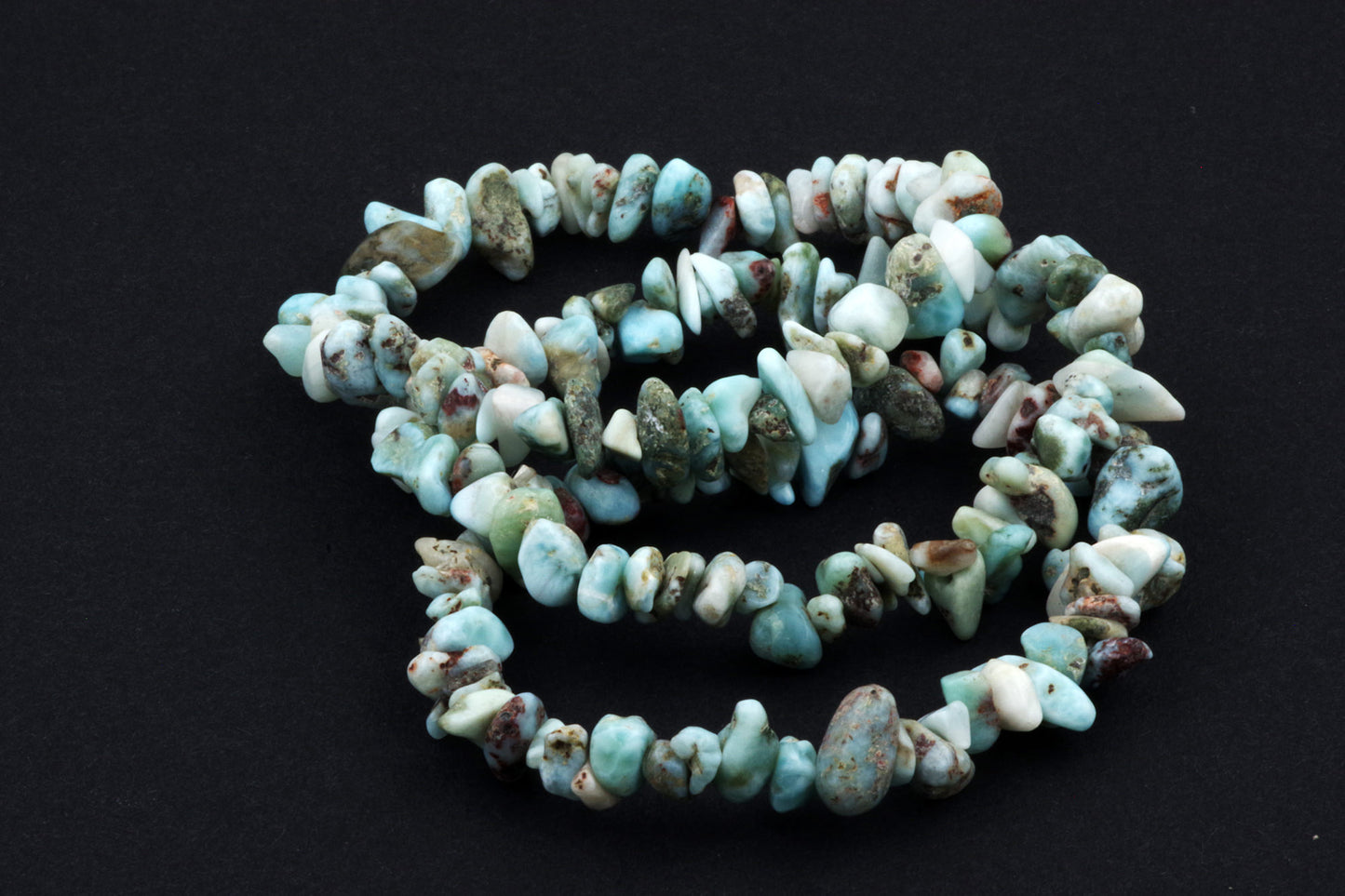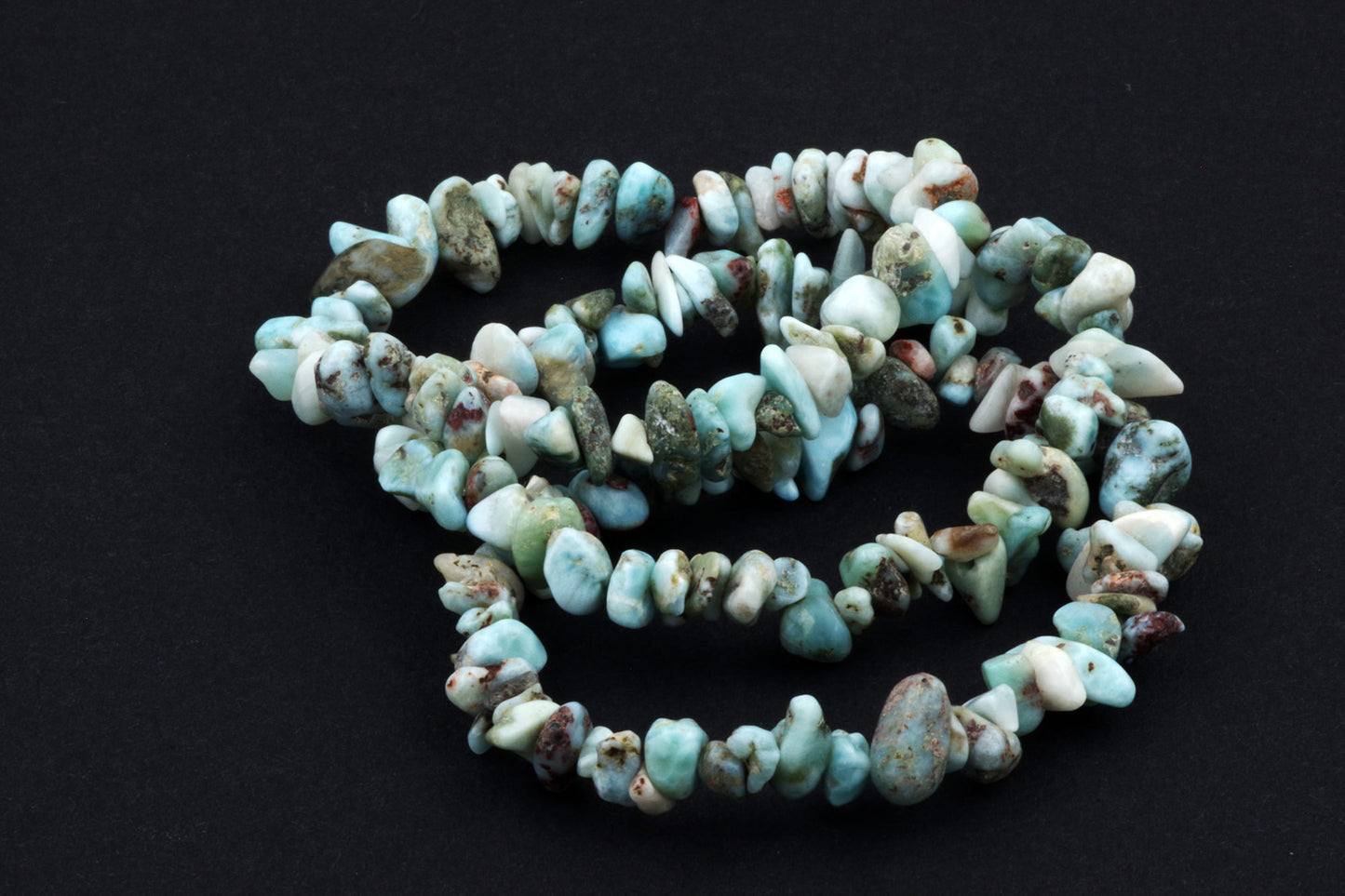Style ludique "Chips" : Le bracelet est composé de petits chips de pierres de larimar, qui créent ensemble un effet visuel énergique et vivant.