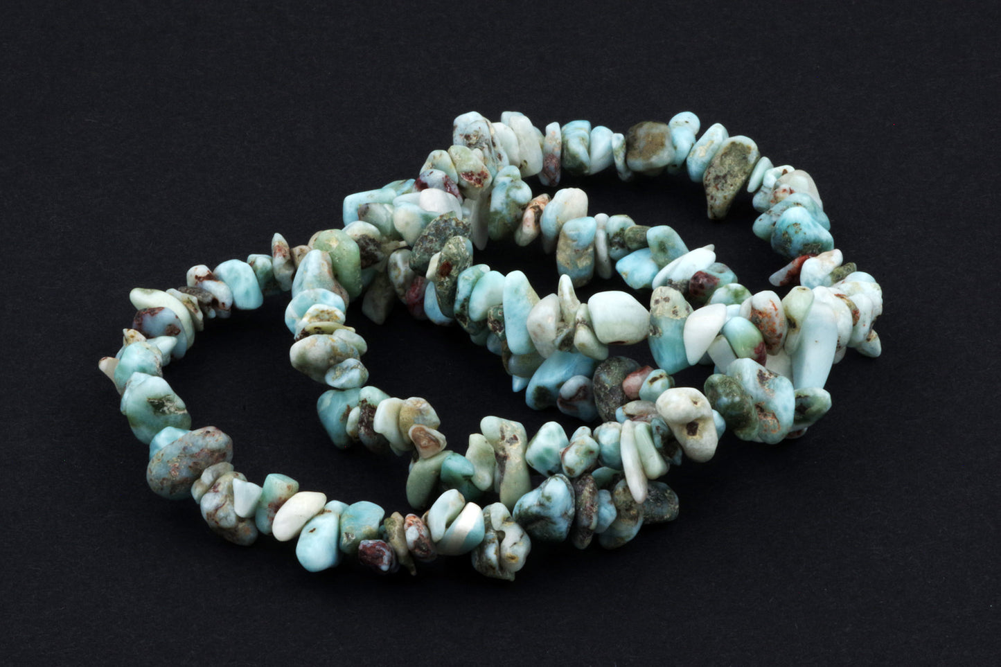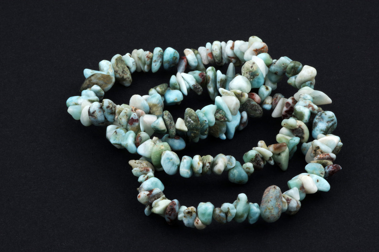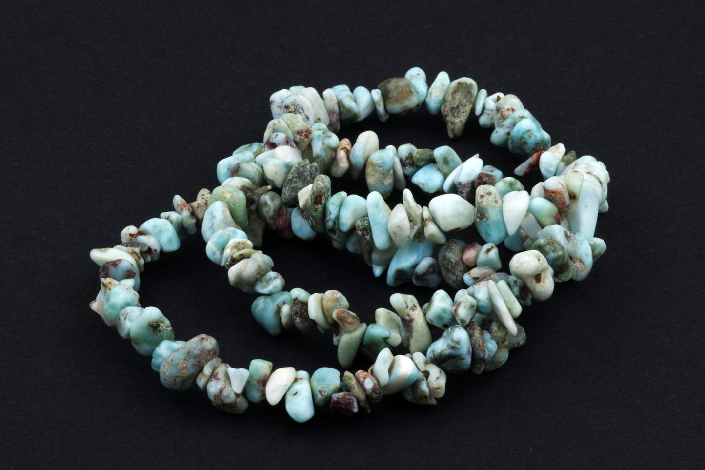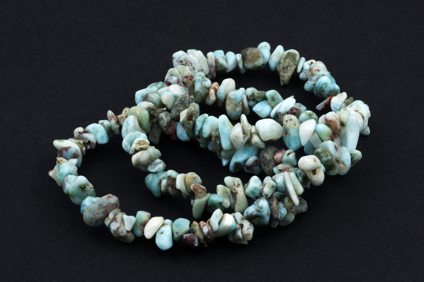 Style ludique "Chips" : Le bracelet est composé de petits chips de pierres de larimar, qui créent ensemble un effet visuel énergique et vivant.