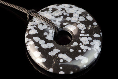 Pierre : L'obsidienne neigeuse, connue pour sa couleur sombre avec des inclusions blanches, donne au pendentif un charme mystique et une profondeur.