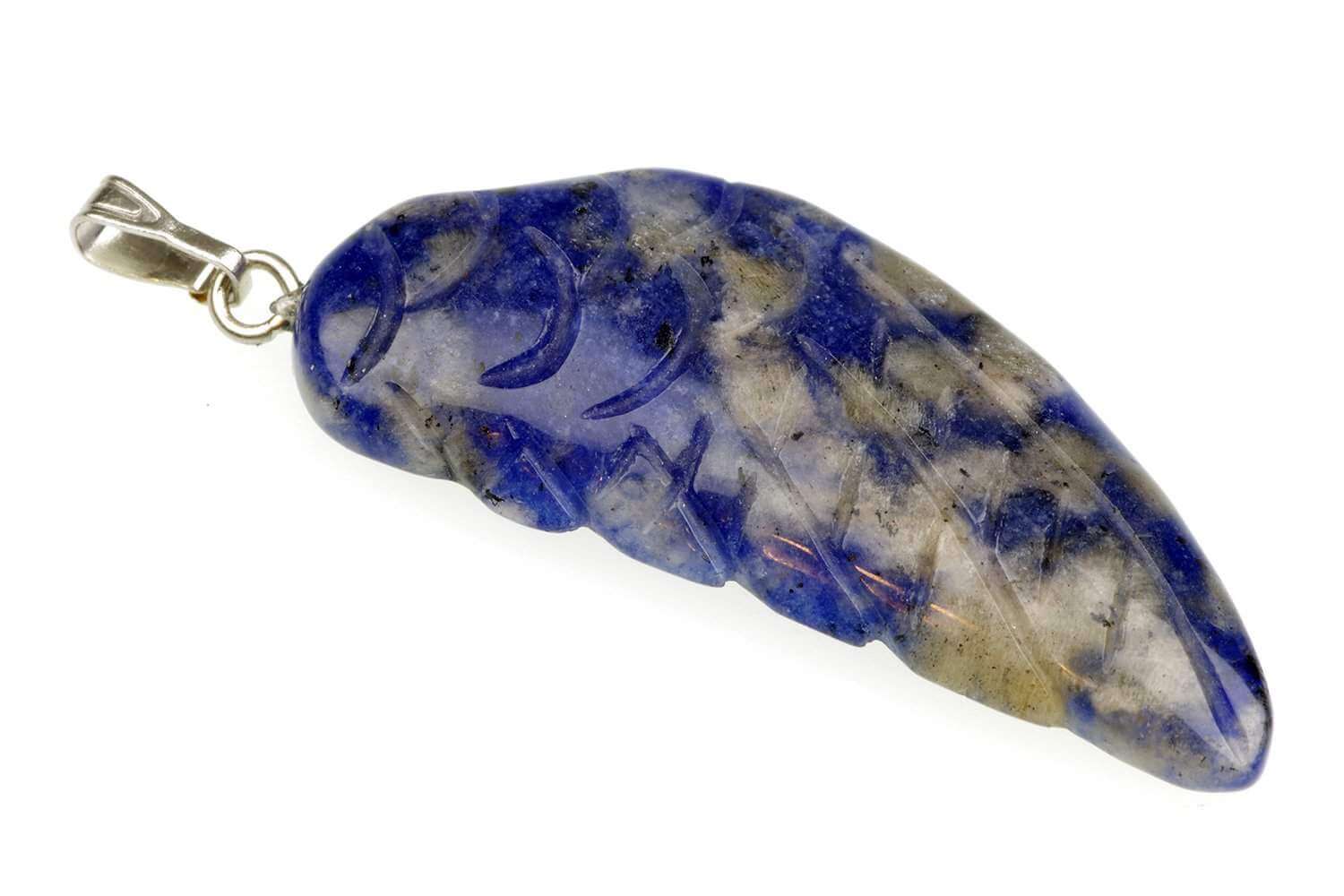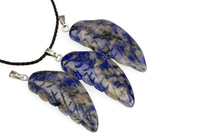 Découvrez un vol spirituel avec notre pendentif en sodalite "Aile". Ce bijou élégant et moderne, fabriqué en sodalite naturelle – un cristal bleu-indigo avec de subtiles inclusions blanches ou grises, se distingue par son symbole unique de liberté et d'intuition.