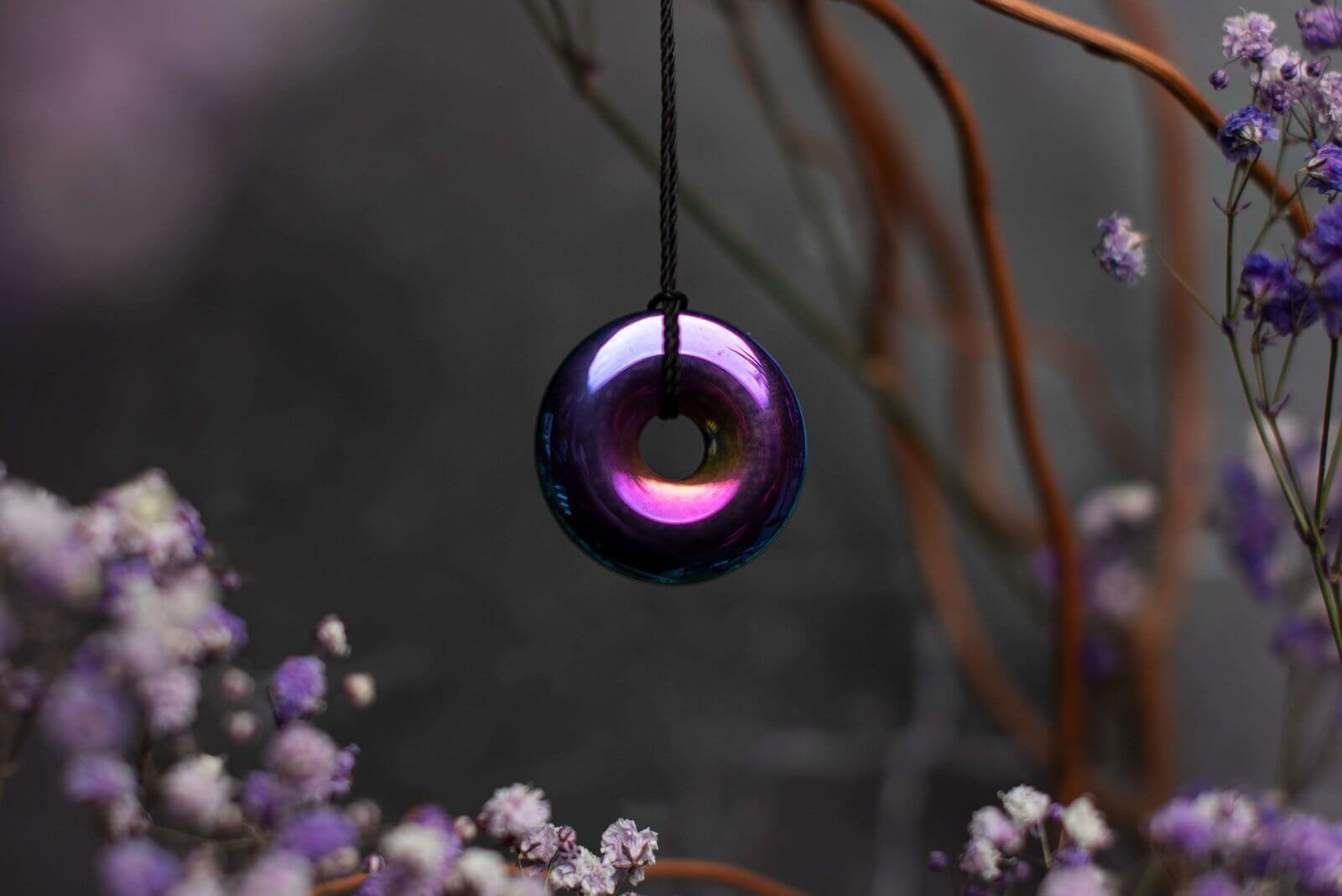 Découvrez un bijou moderne et coloré dont l'élément principal est un disque d'hématite arc-en-ciel de 30 mm de diamètre. Cette pierre, réputée pour son éclat métallique brillant et son impressionnant jeu de couleurs, confère au pendentif non seulement un attrait esthétique remarquable, mais symbolise aussi la protection, la force et l'énergie de la terre.