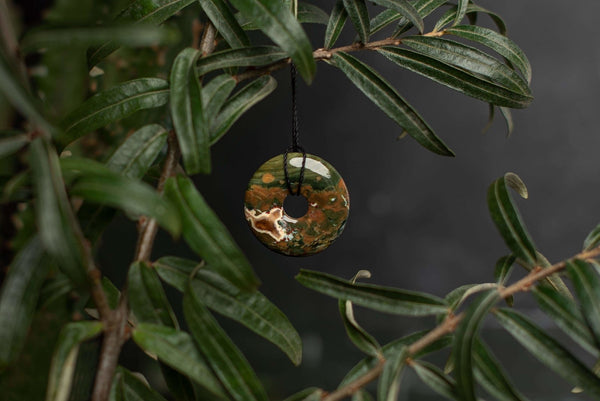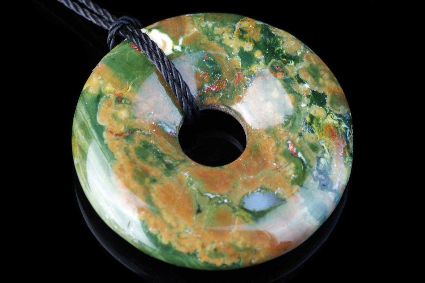 Caractère unique de la pierre : Le rhyolite vert se distingue par une combinaison unique de couleurs et des motifs naturels, conférant au pendentif vitalité et individualité.