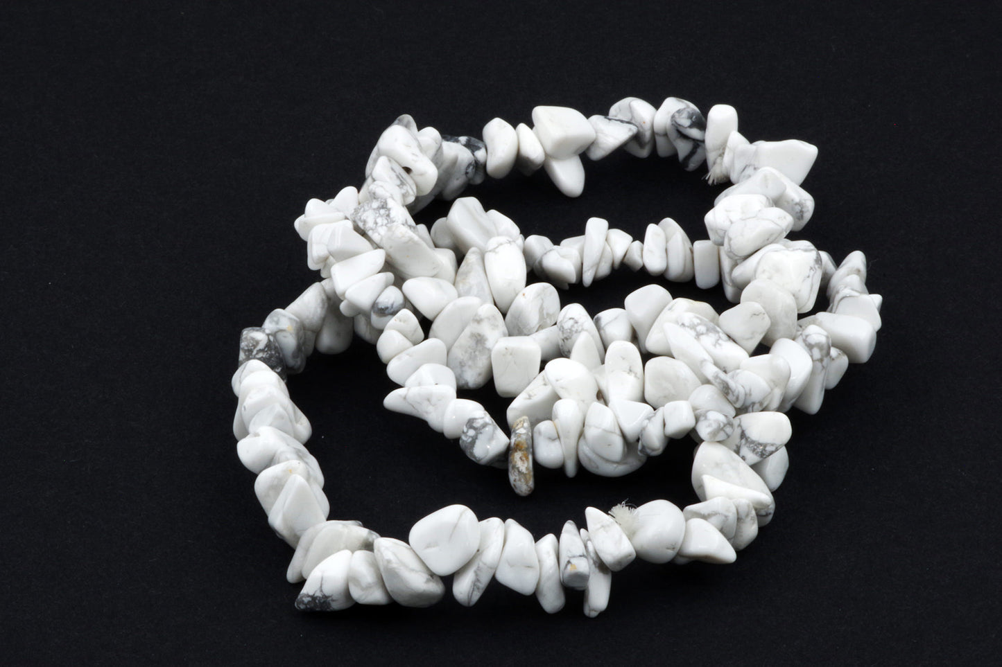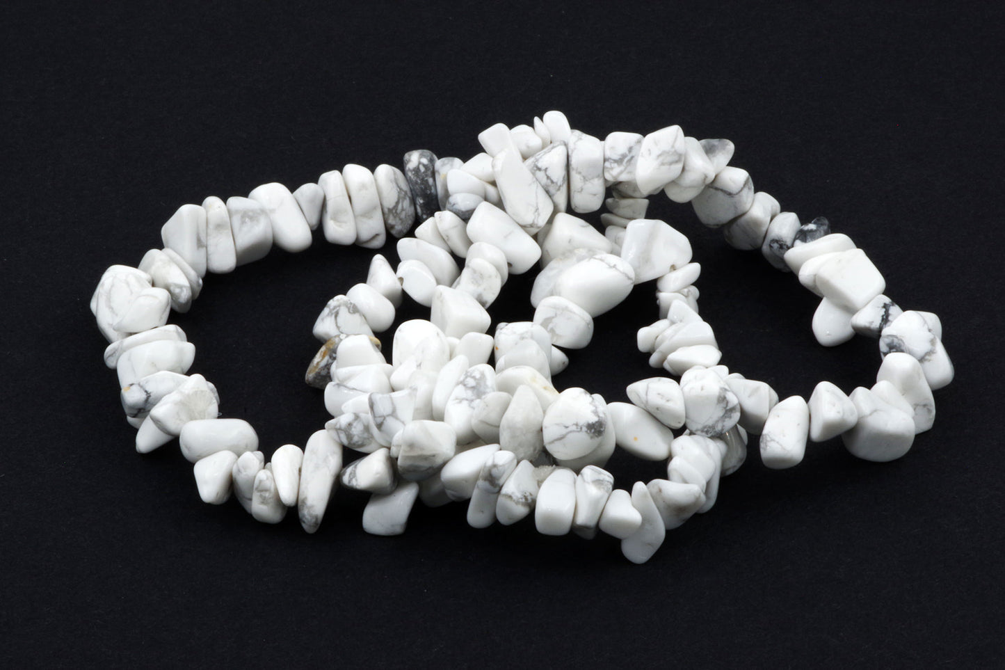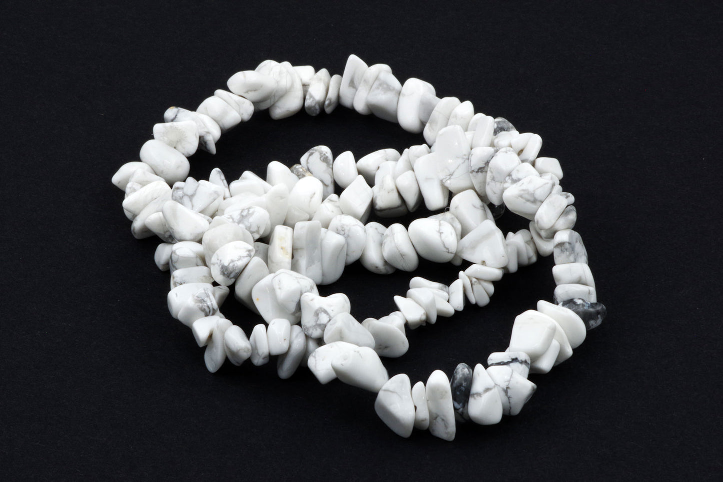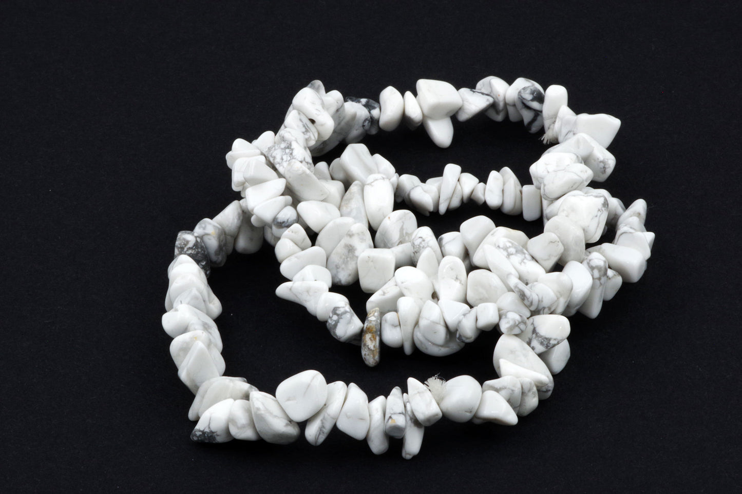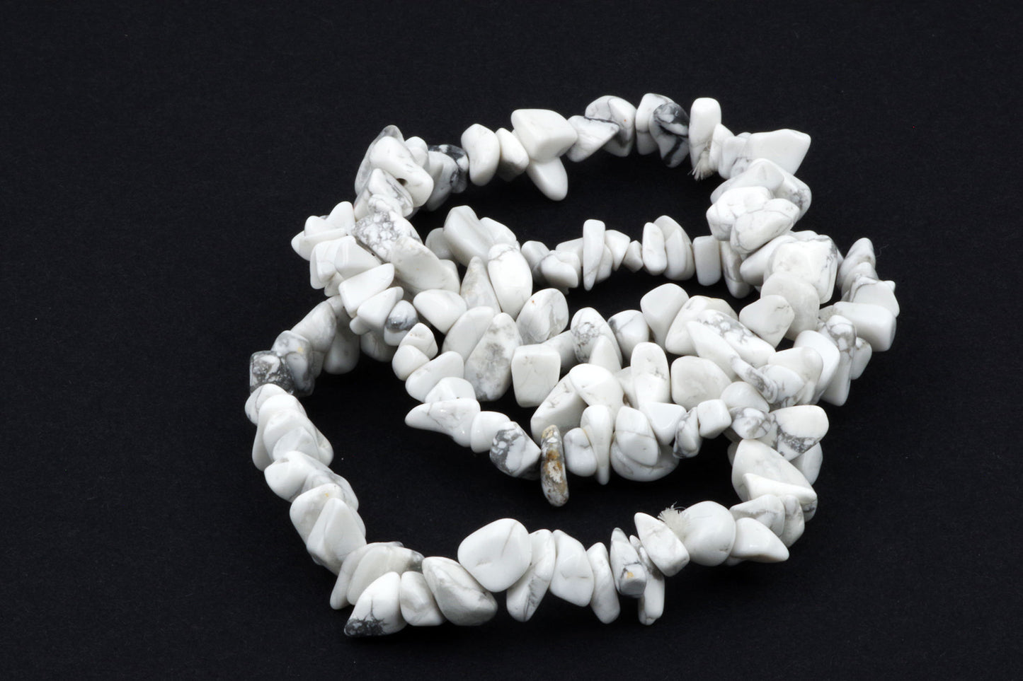 Ciottoli Irregolari: Ogni ciottolo di howlita a forma di chip – come un piccolo frammento misterioso – ha una sua texture e motivo unici, che insieme creano una sinfonia di bellezza casuale.