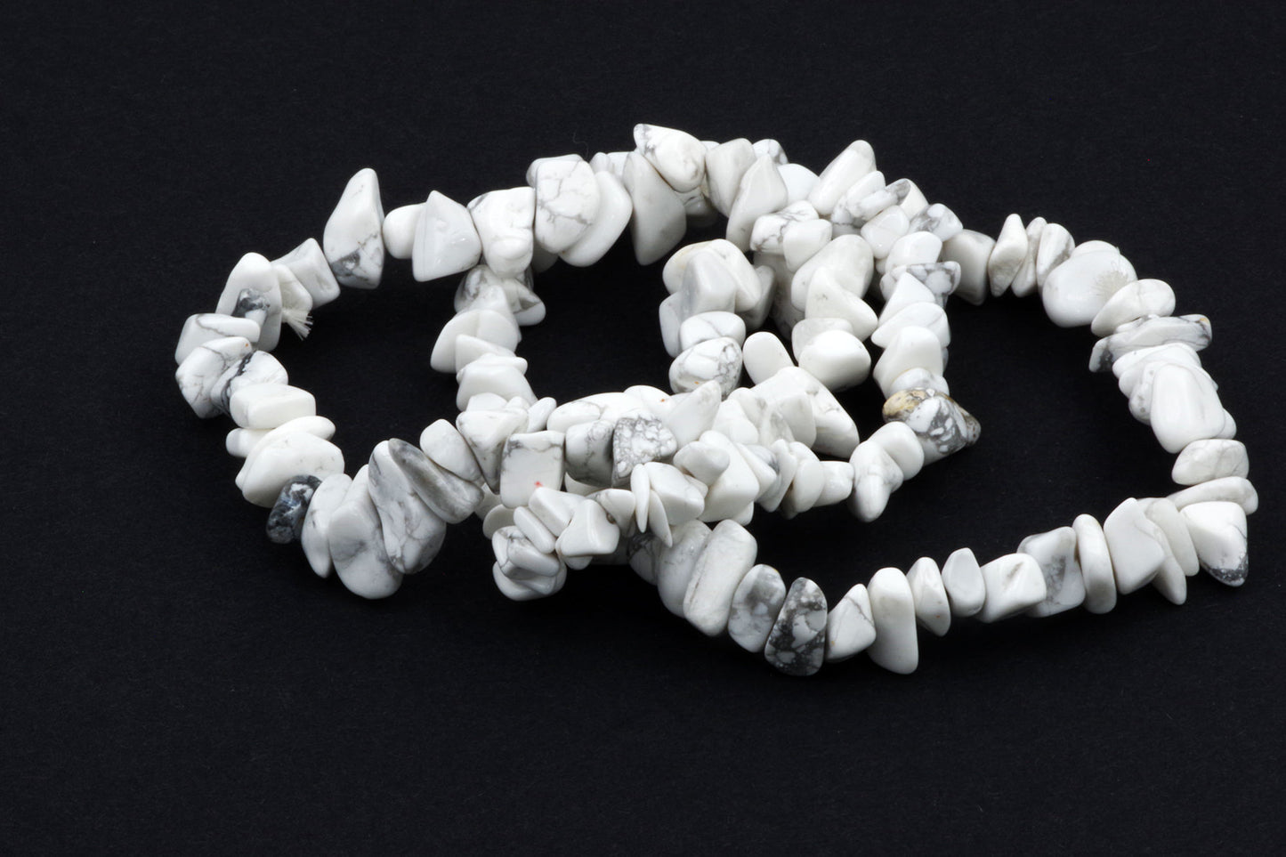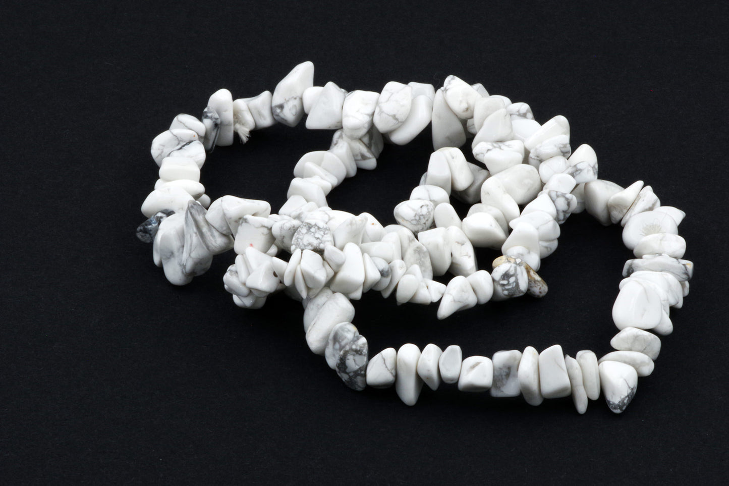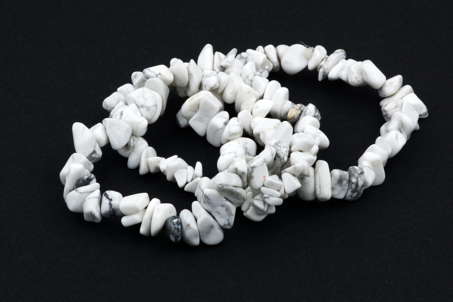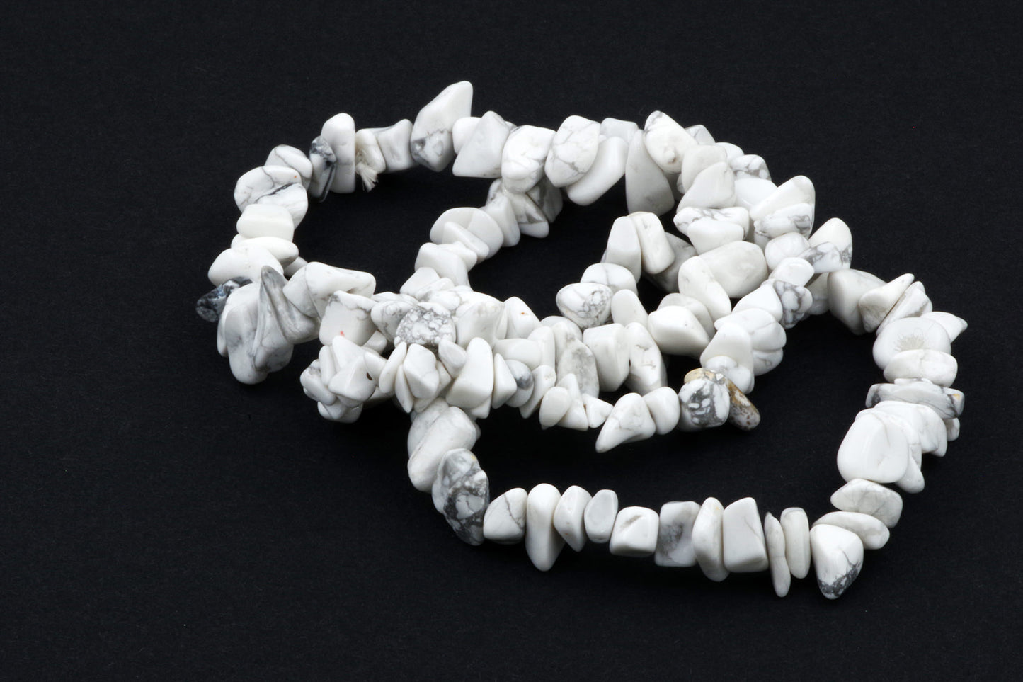 Ciottoli Irregolari: Ogni ciottolo di howlita a forma di chip – come un piccolo frammento misterioso – ha una sua texture e motivo unici, che insieme creano una sinfonia di bellezza casuale.