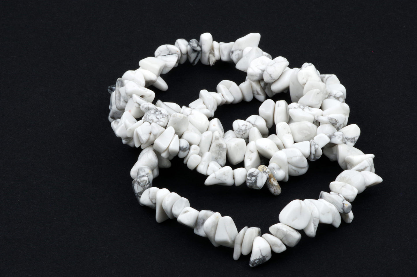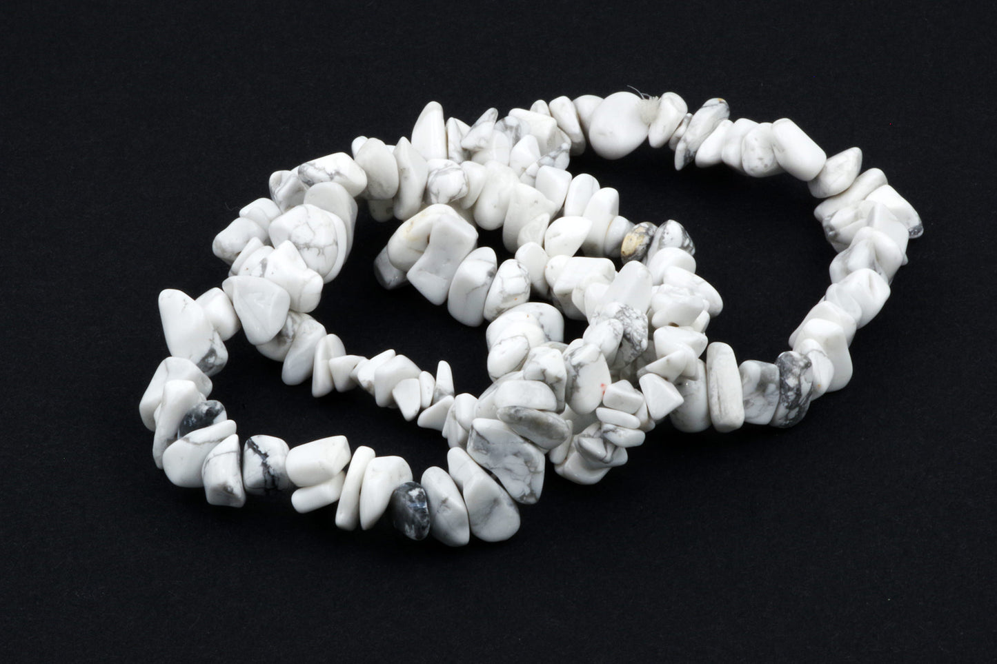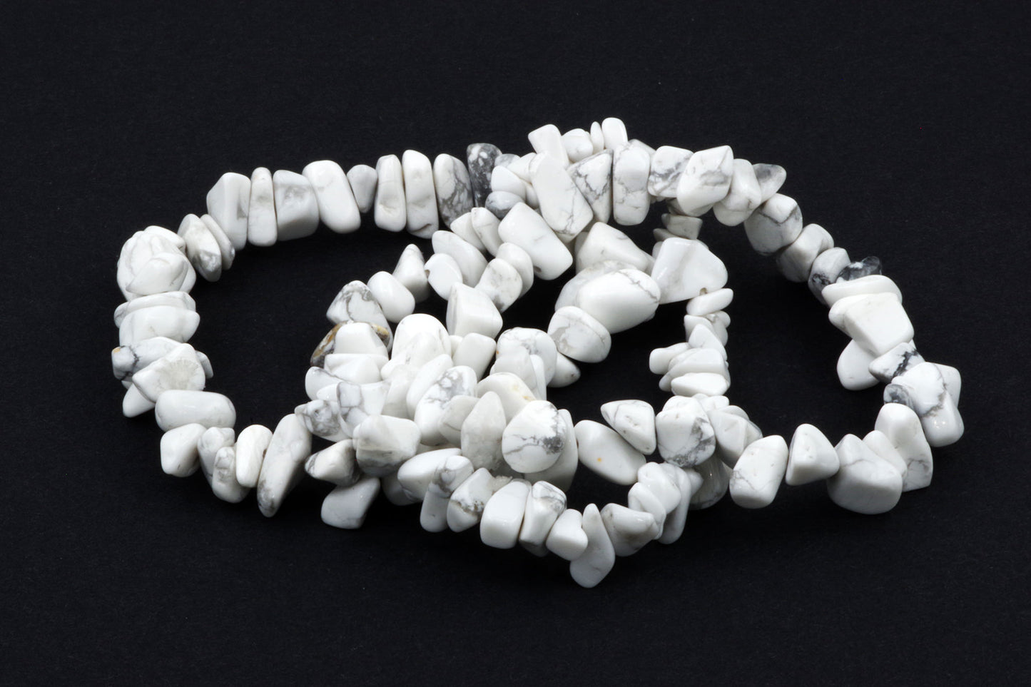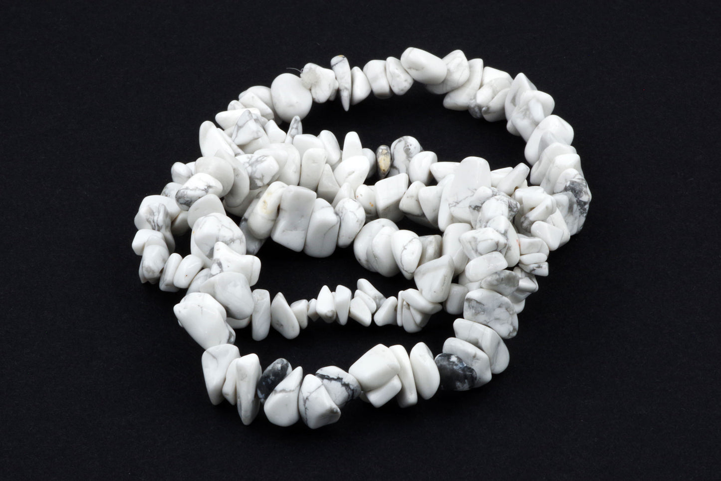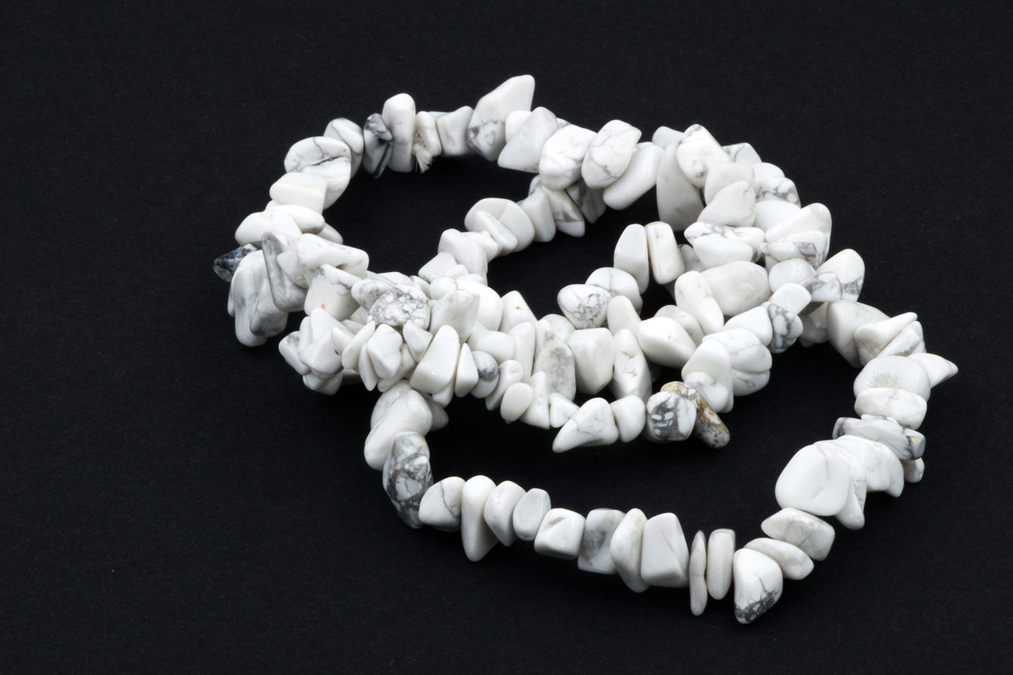 Ciottoli Irregolari: Ogni ciottolo di howlita a forma di chip – come un piccolo frammento misterioso – ha una sua texture e motivo unici, che insieme creano una sinfonia di bellezza casuale.