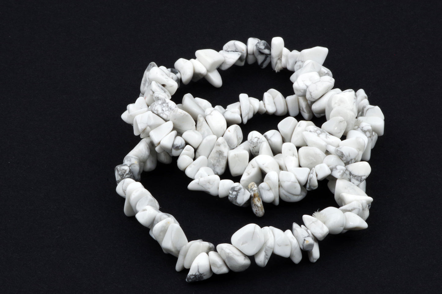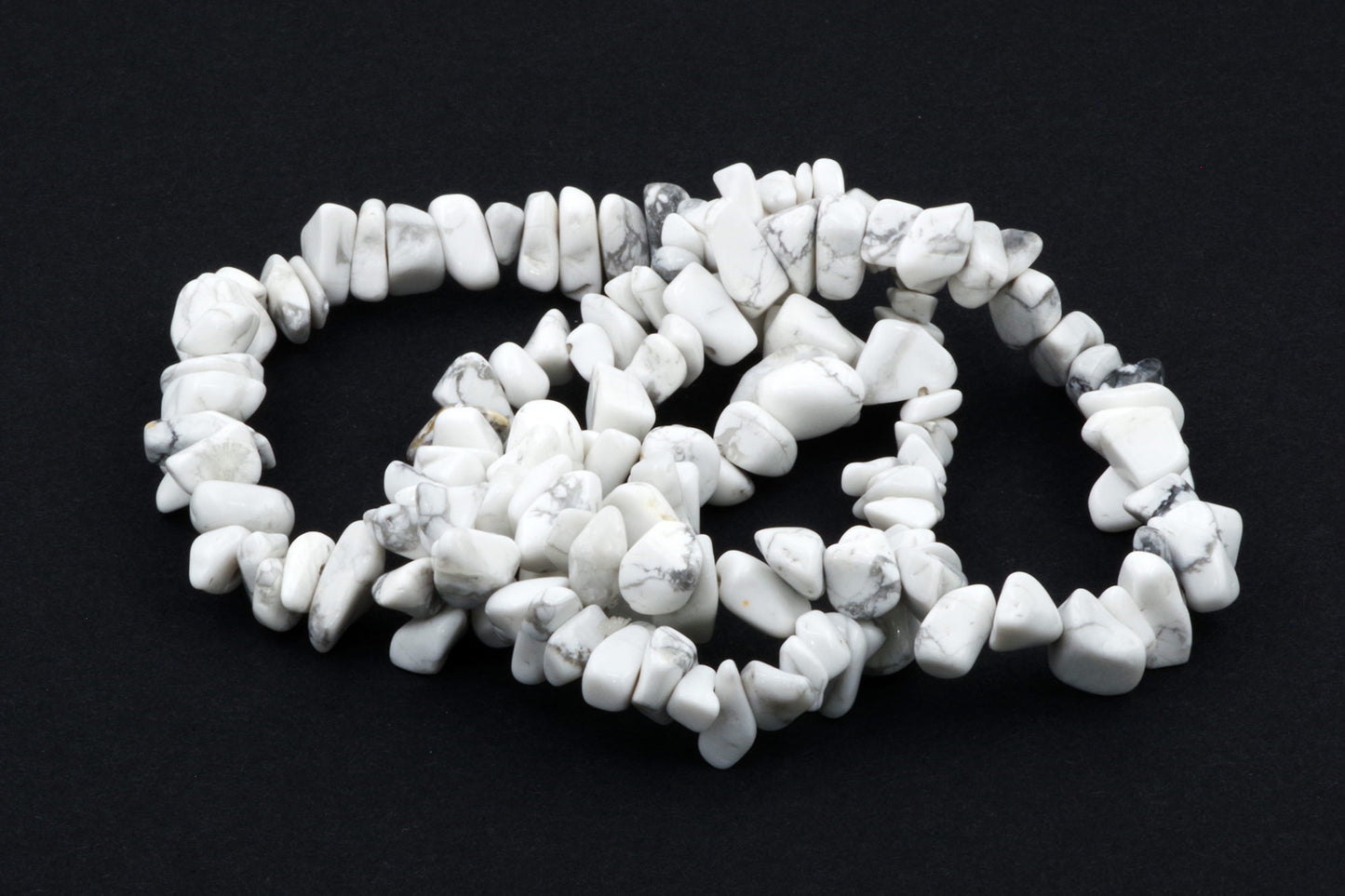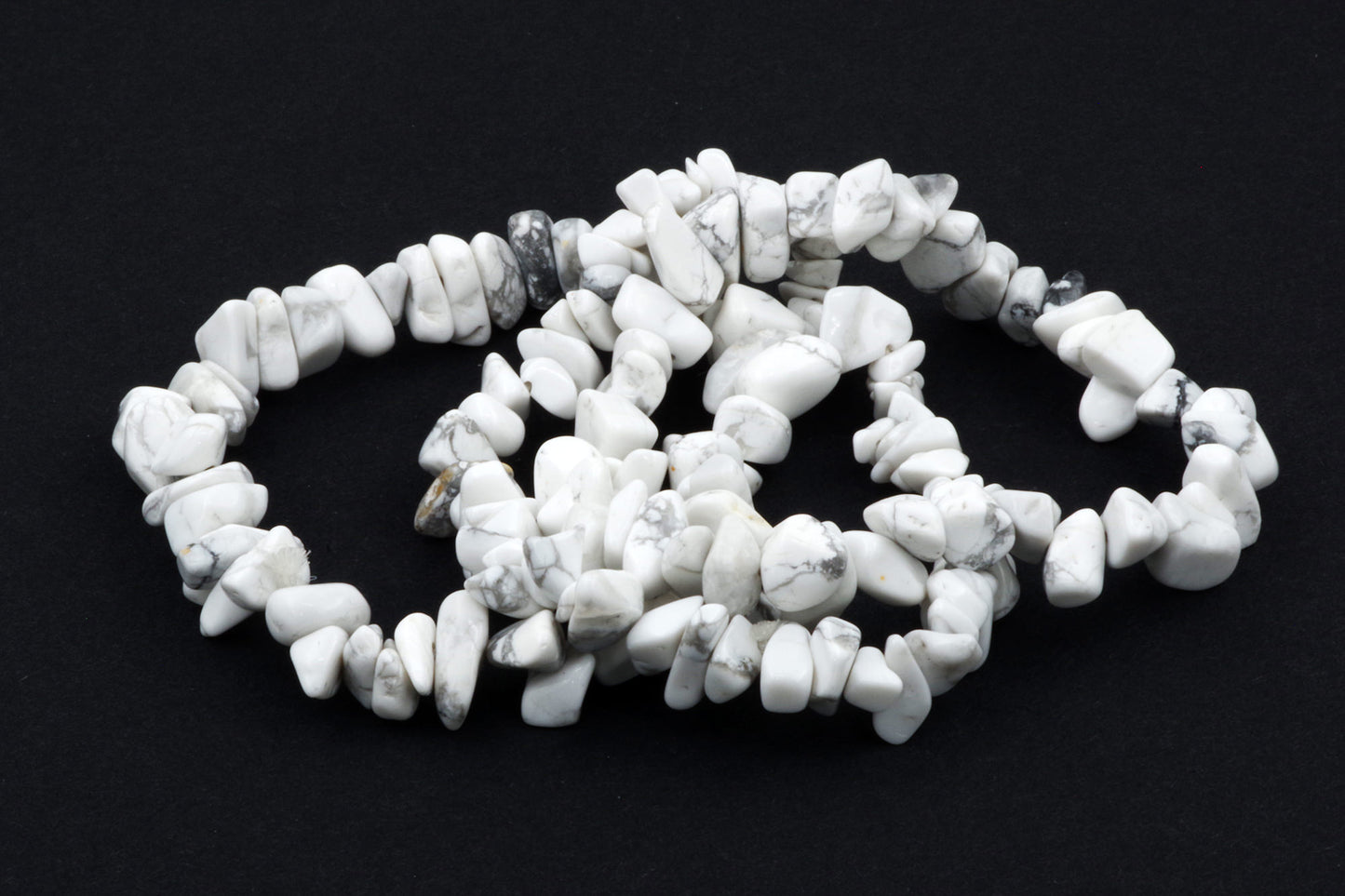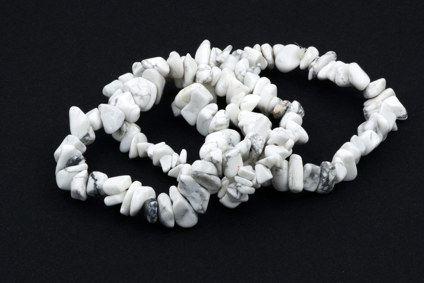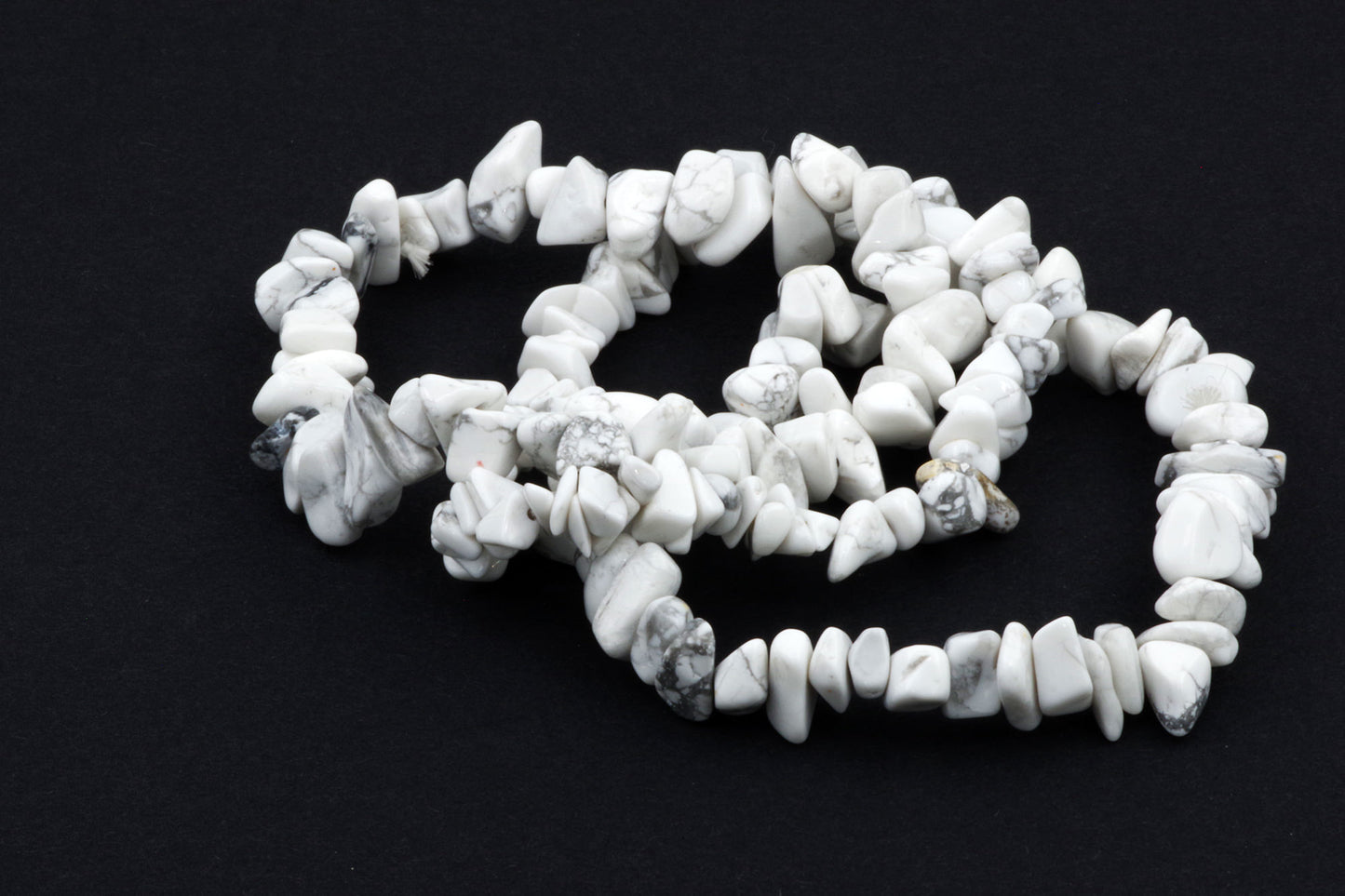 Ciottoli Irregolari: Ogni ciottolo di howlita a forma di chip – come un piccolo frammento misterioso – ha una sua texture e motivo unici, che insieme creano una sinfonia di bellezza casuale.