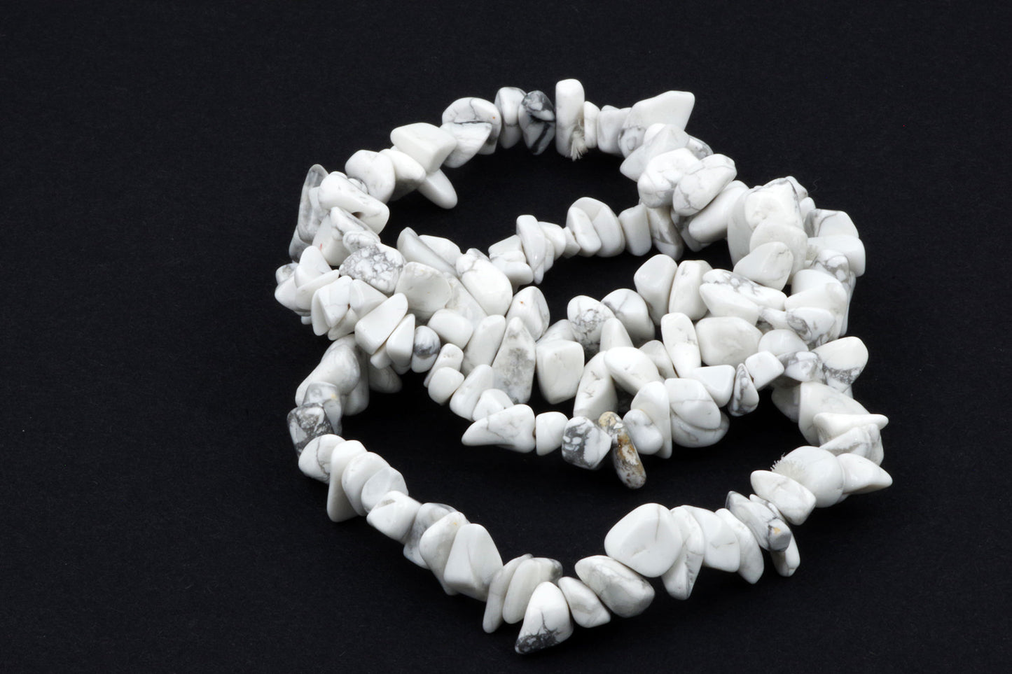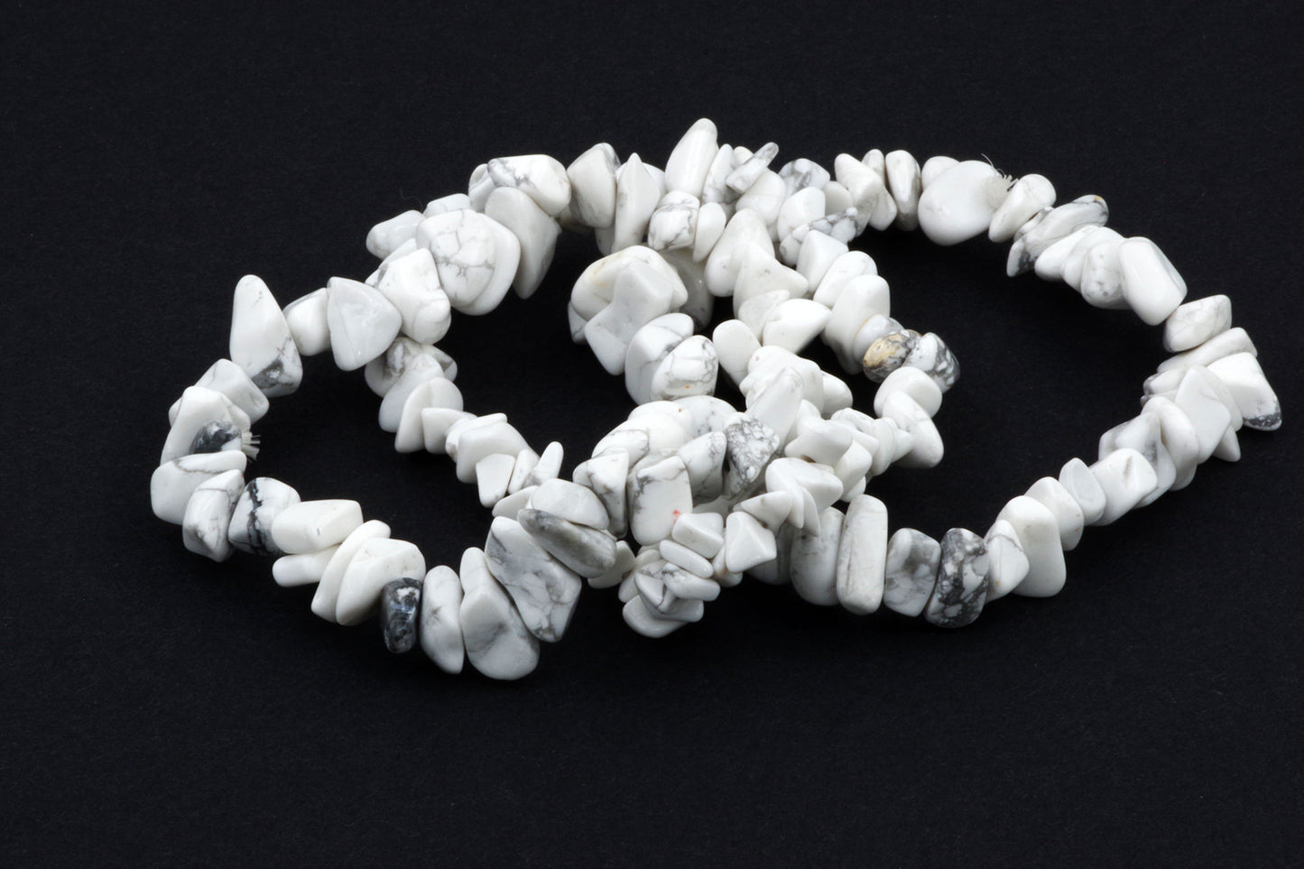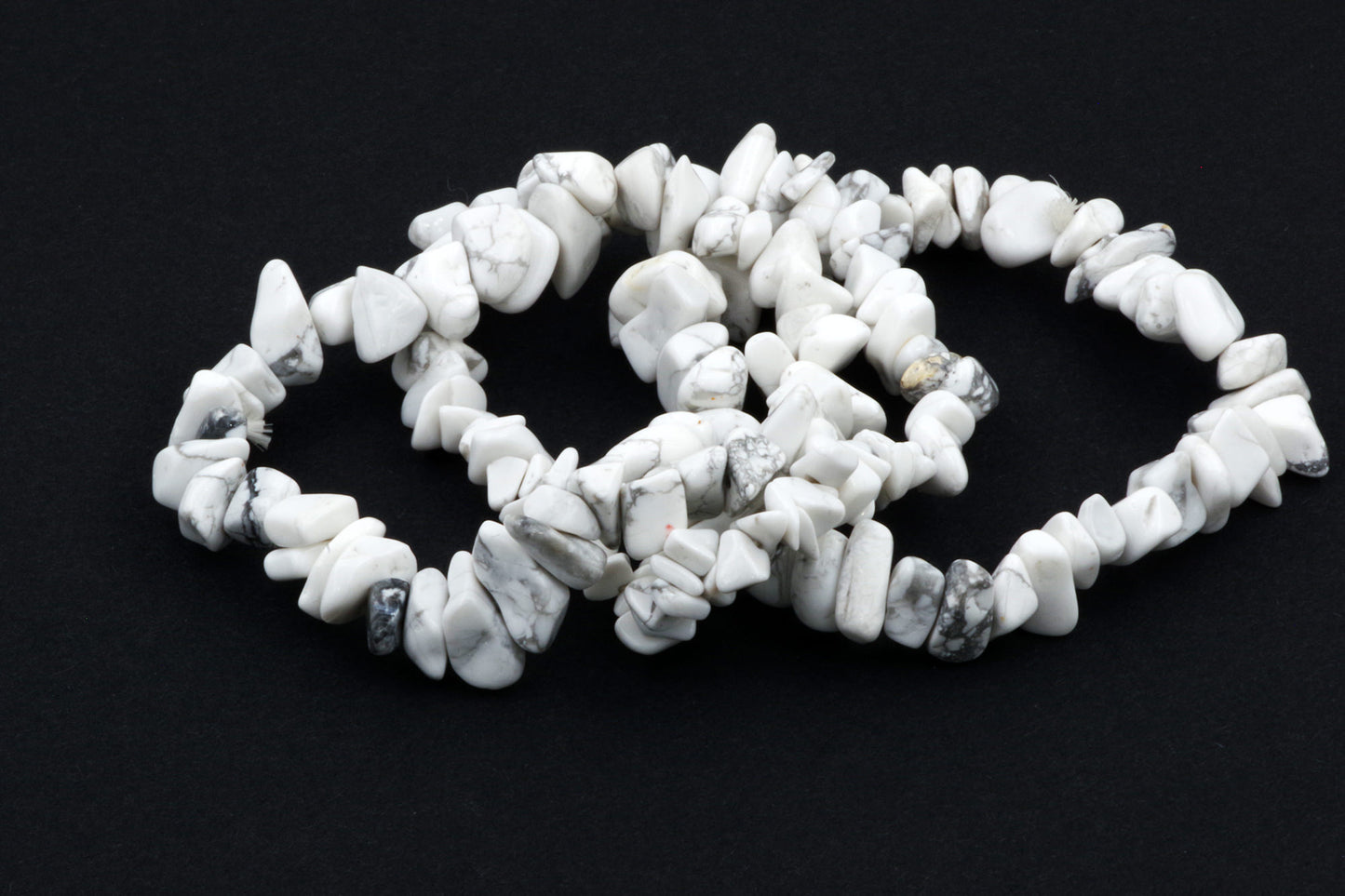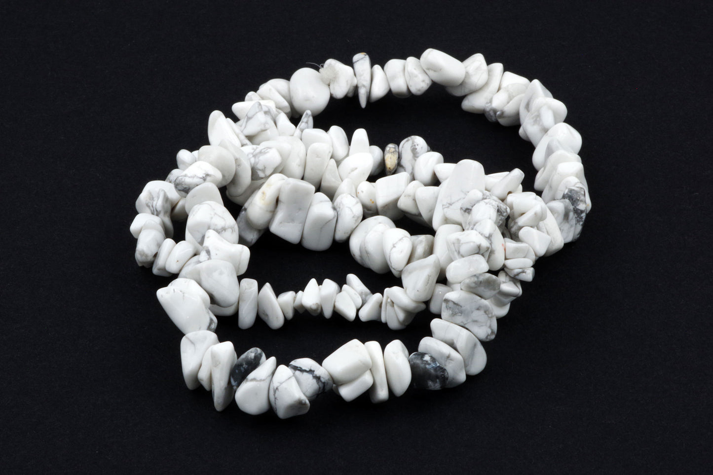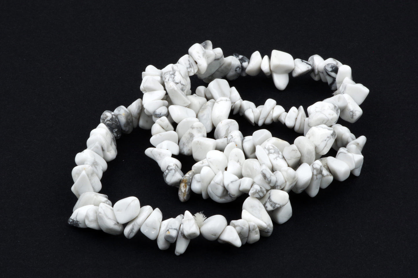 Ciottoli Irregolari: Ogni ciottolo di howlita a forma di chip – come un piccolo frammento misterioso – ha una sua texture e motivo unici, che insieme creano una sinfonia di bellezza casuale.