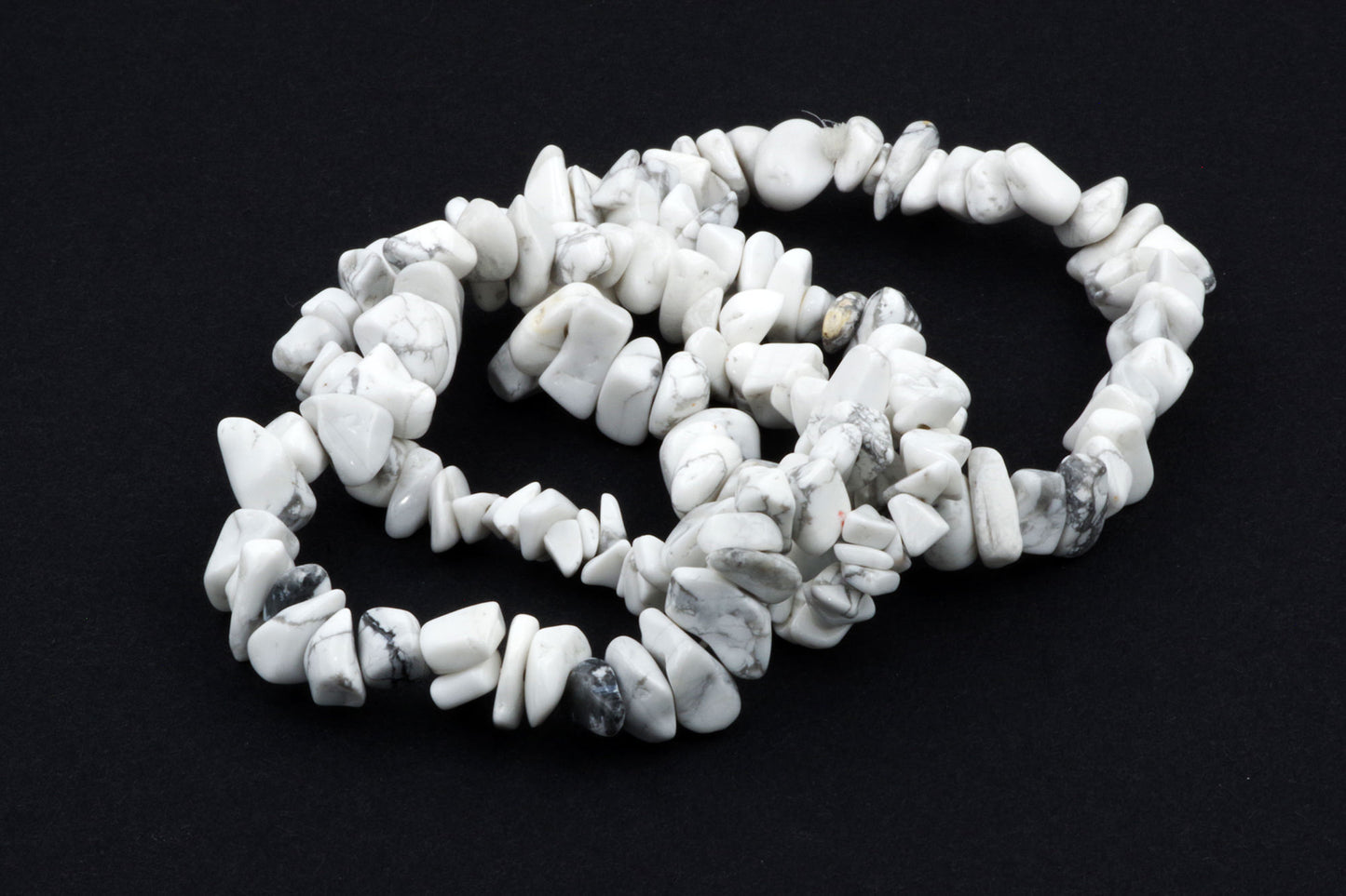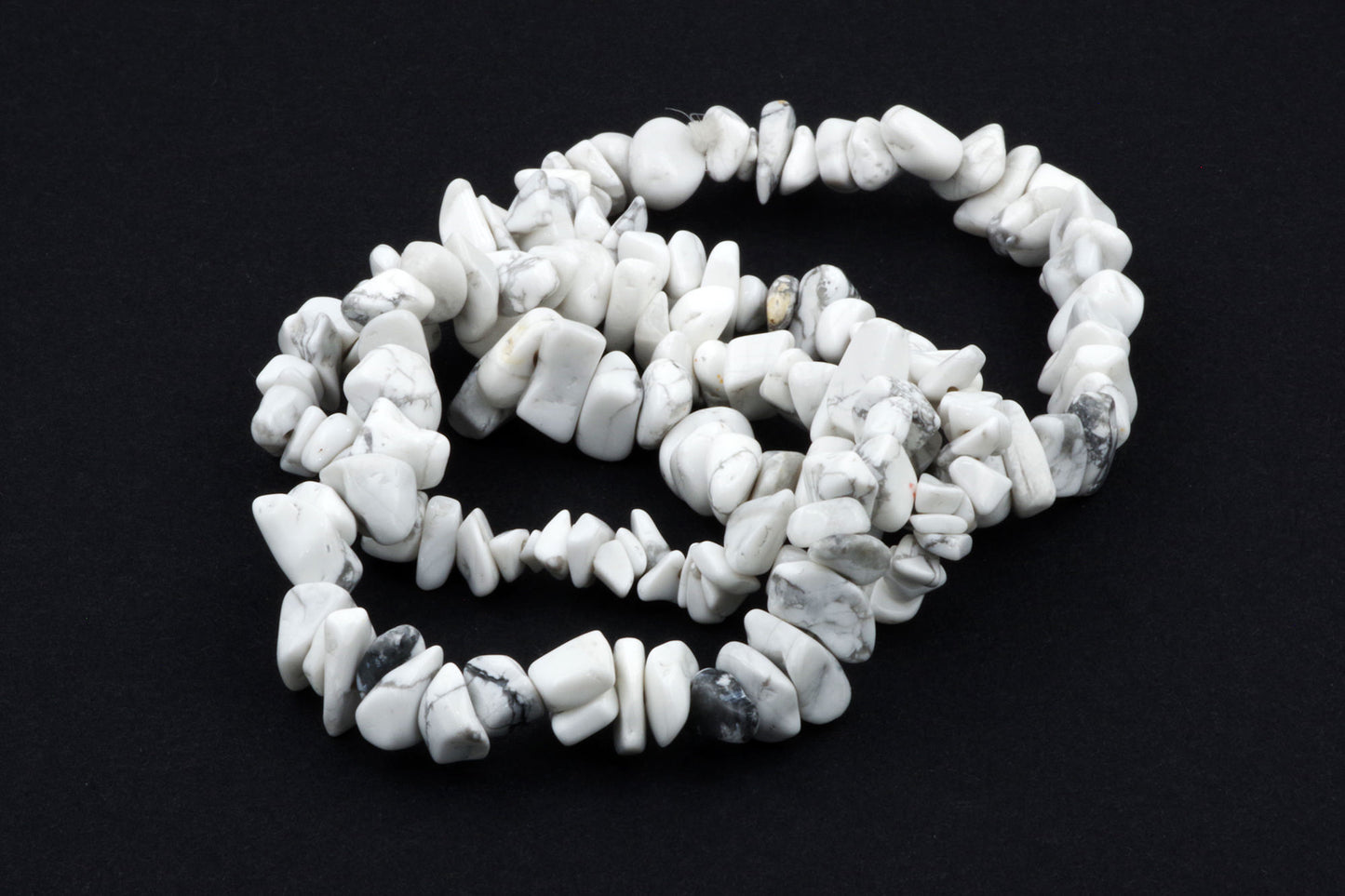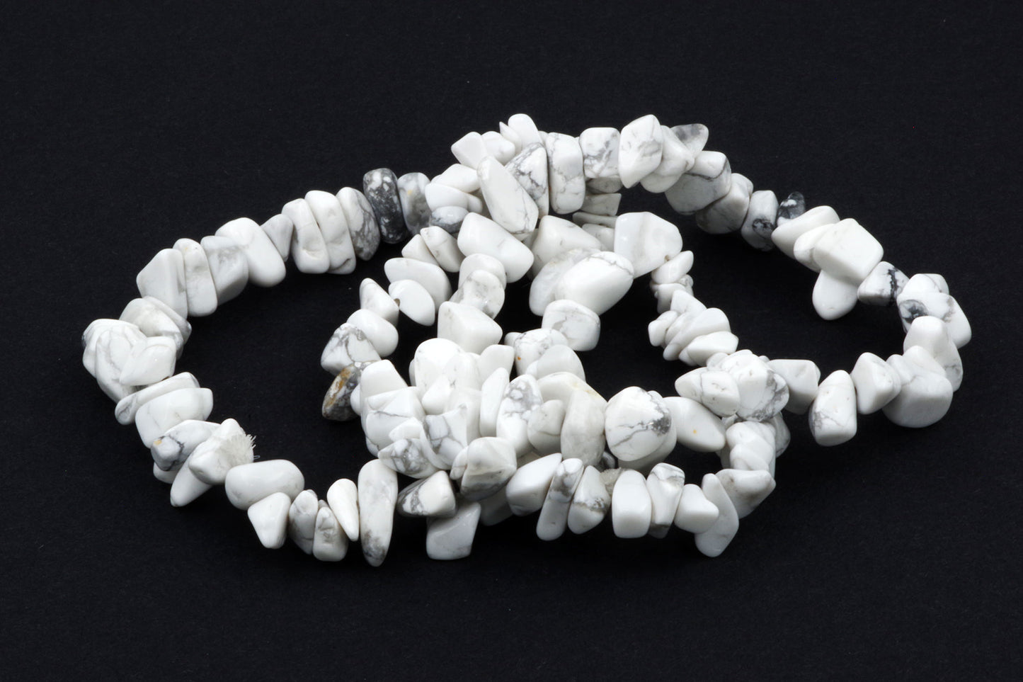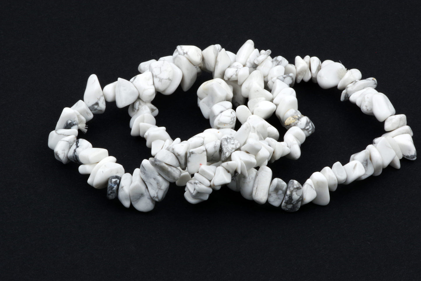 Ciottoli Irregolari: Ogni ciottolo di howlita a forma di chip – come un piccolo frammento misterioso – ha una sua texture e motivo unici, che insieme creano una sinfonia di bellezza casuale.