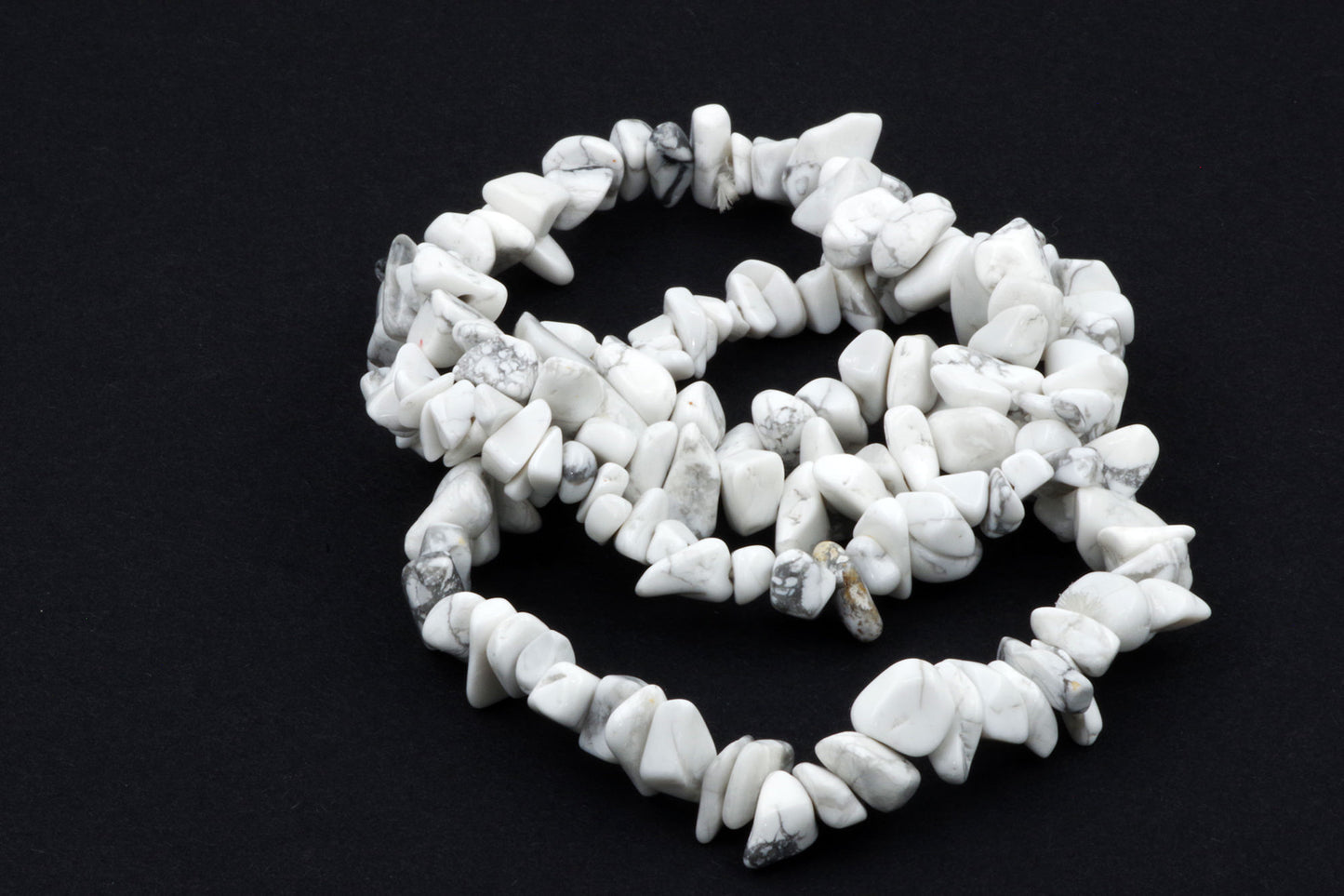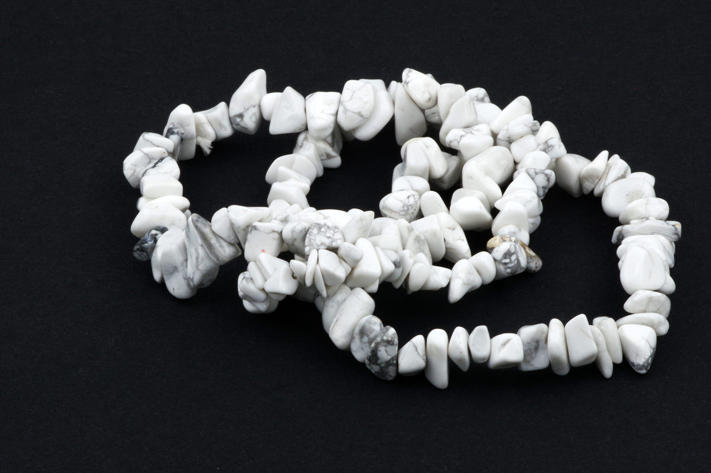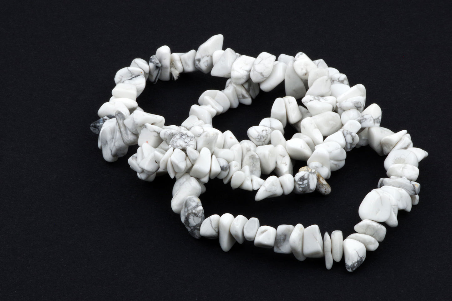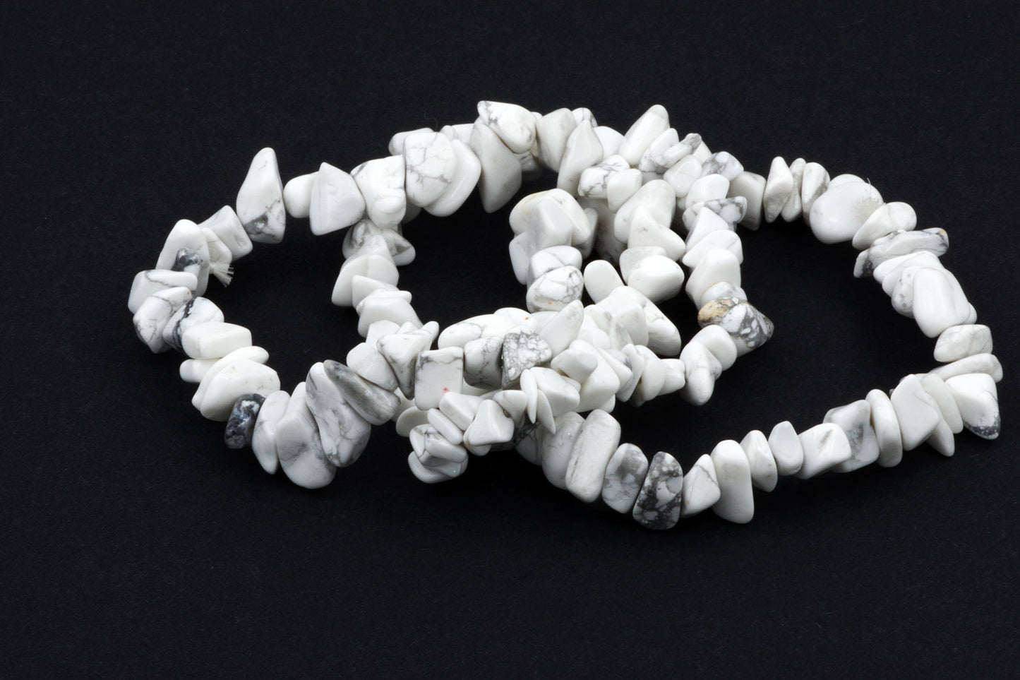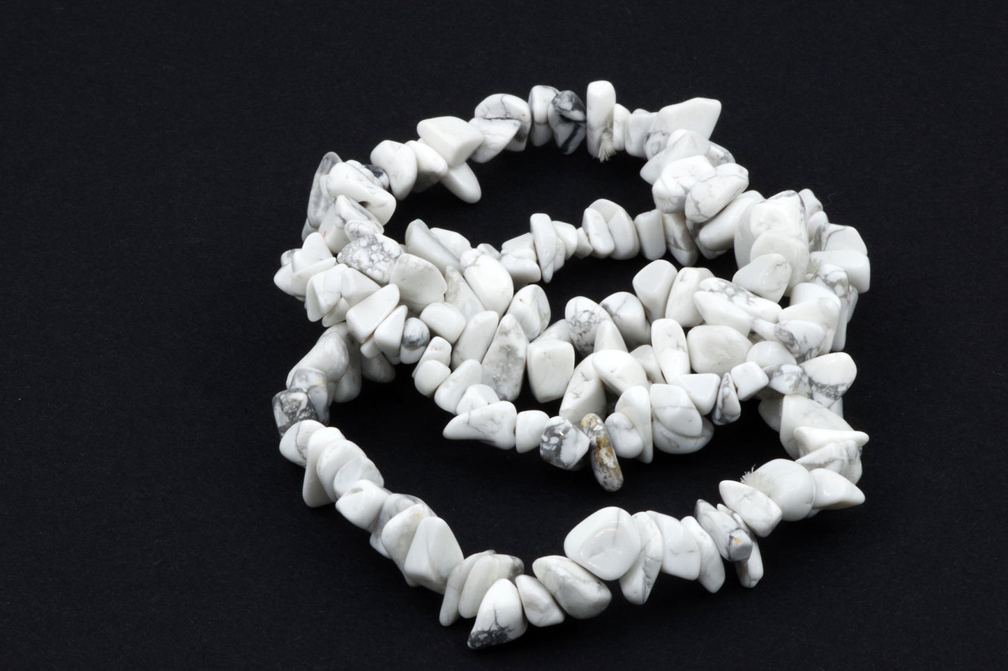Ciottoli Irregolari: Ogni ciottolo di howlita a forma di chip – come un piccolo frammento misterioso – ha una sua texture e motivo unici, che insieme creano una sinfonia di bellezza casuale.