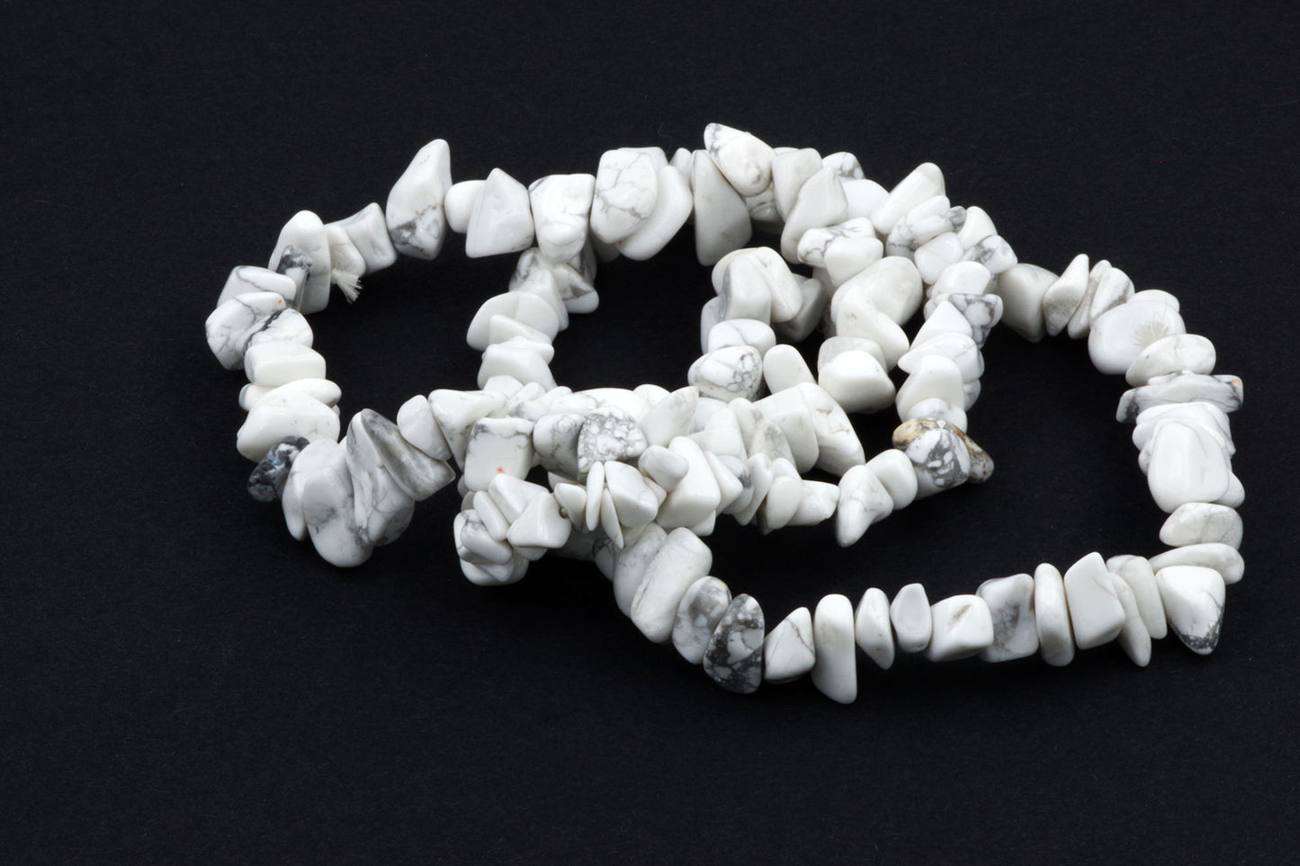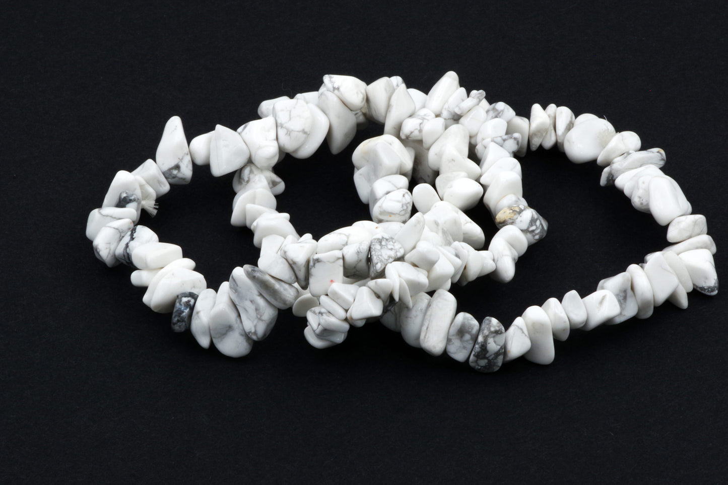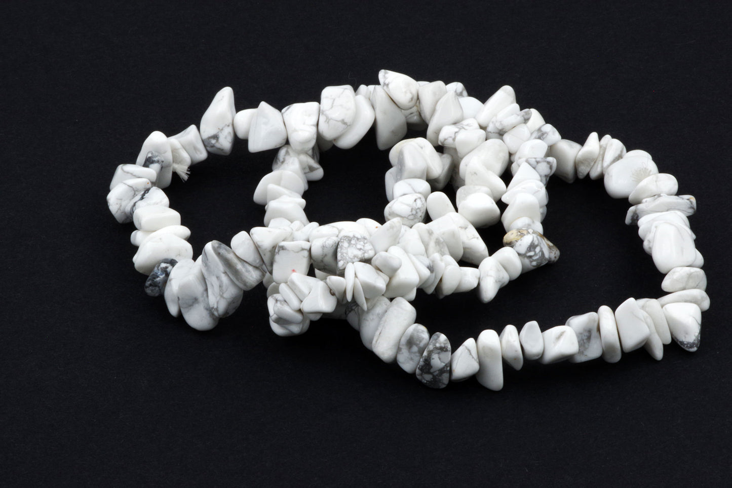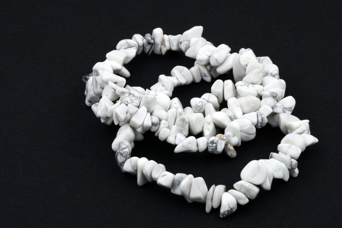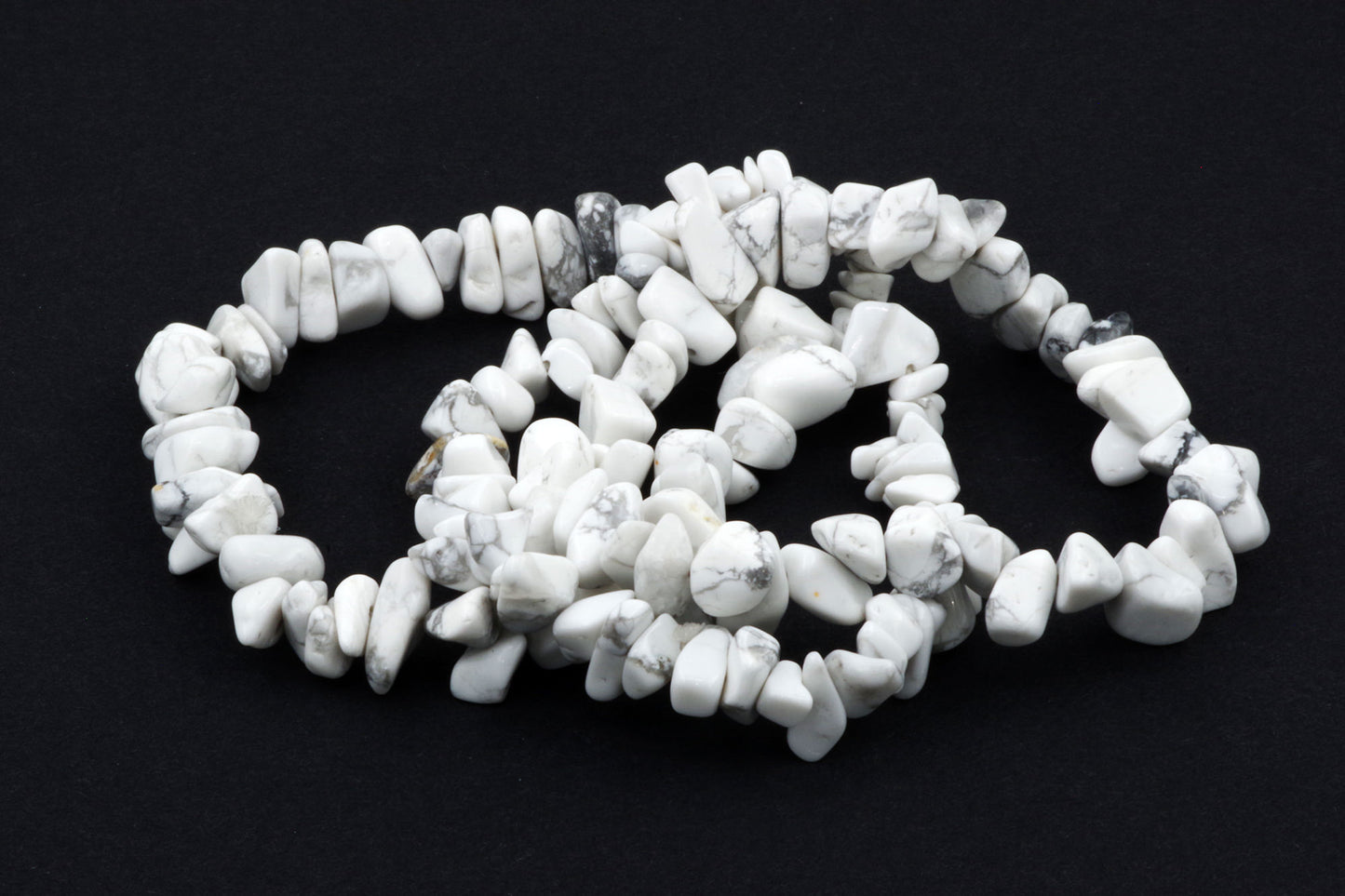 Ciottoli Irregolari: Ogni ciottolo di howlita a forma di chip – come un piccolo frammento misterioso – ha una sua texture e motivo unici, che insieme creano una sinfonia di bellezza casuale.