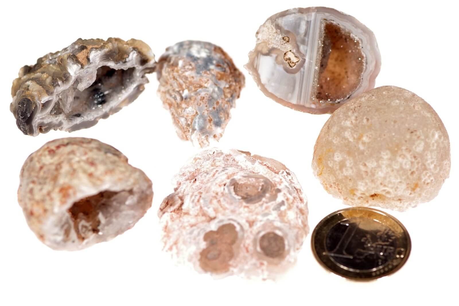 Mazie, bet intriģējošie ahāta ģeodi S izmēra kategorijā ir īsts dabas radījumu dārgums, lieliski piemēroti tiem, kas meklē smalku, bet īpašu akcentu savā vidē. Neskatoties uz savu nelielo izmēru, katrs ģeods ir unikāls ar saviem dabiskajiem rakstiem un krāsu daudzveidību, kas tam piešķir īpašu estētisko vērtību.