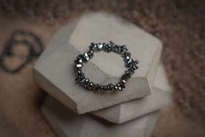 Det magiske hematittarmbåndet "Chips" er ikke bare et unikt smykke, men også en kraftfull åndelig talisman som minner deg om din personlige reise og unike rytme. La dette magiske tilbehøret gi dagen din et spesielt lys, balanse og kreativ energi.