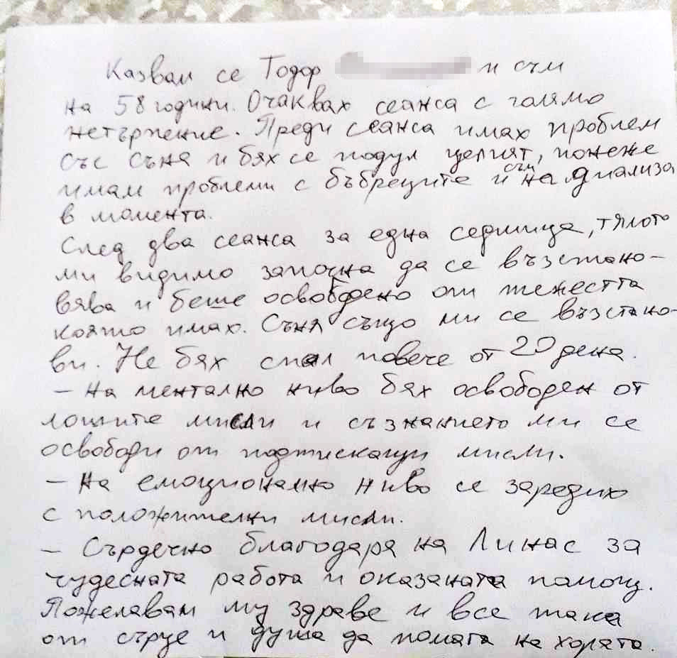 Mano vardas Todor ******, man 58 metai. Su nekantrumu laukiau sesijos. Prieš sesiją turėjau sunkumų miegoti ir buvau baisiai patinęs, nes turiu inkstų problemų ir šiuo metu esu su antsvoriu.
