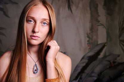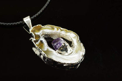 Atraskite ekstravagantišką ir unikalų papuošalą, kuris sujungia agato žemės tonus su ametisto giliai violetinėmis spalvomis. Šis pakabukas – tikras natūralių kristalų sinergijos šedevras – išsiskiria savo unikaliu dizainu, puikiai tinkantis tiek kasdieniam nešiojimui, tiek kaip išskirtinis akcentas ypatingomis progomis.